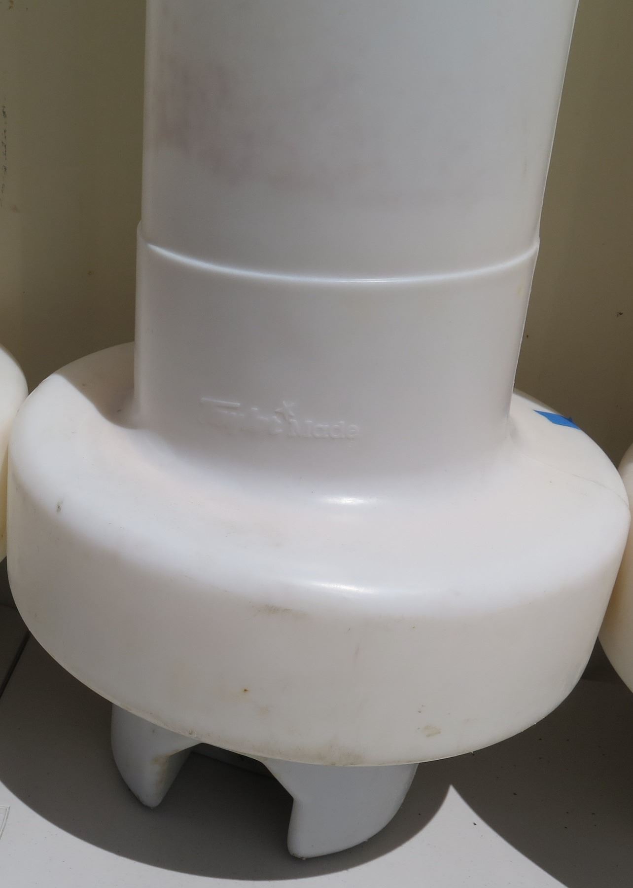 Qty 1 White Taylor Made Sur-Mark Can Buoys 16" Dia, 48"H (this is for one buoy only). The last photo gives some context on how large this is.