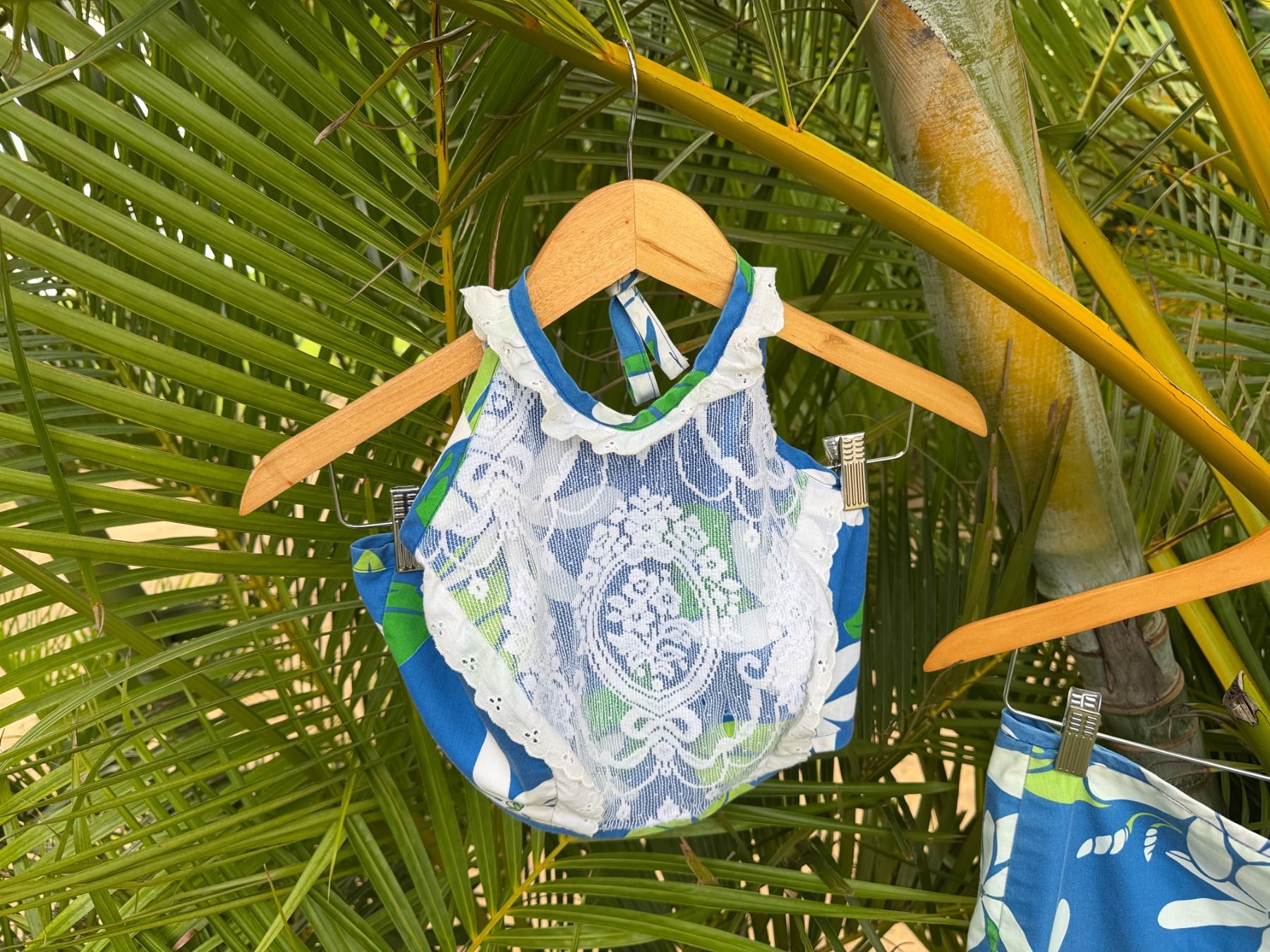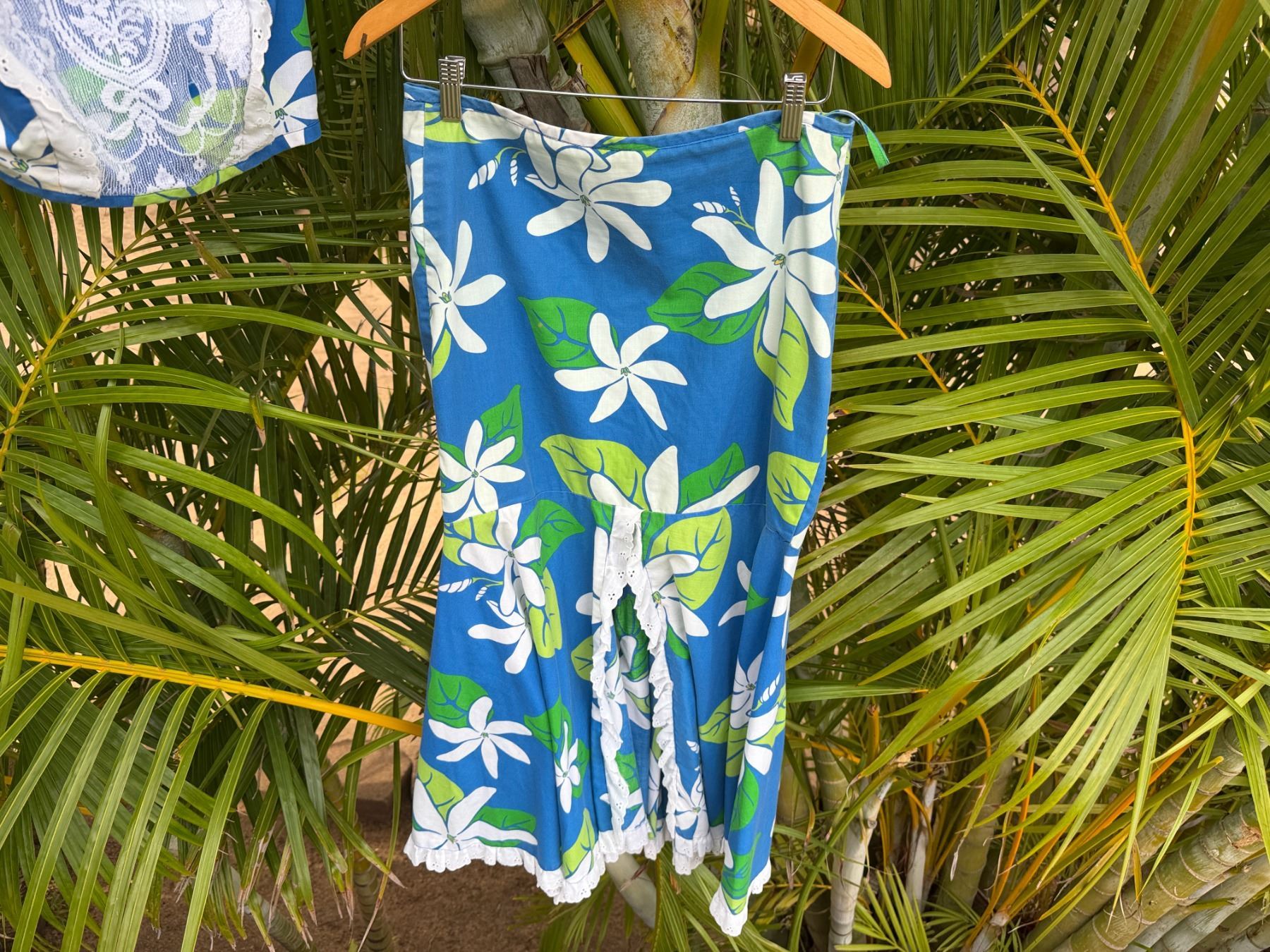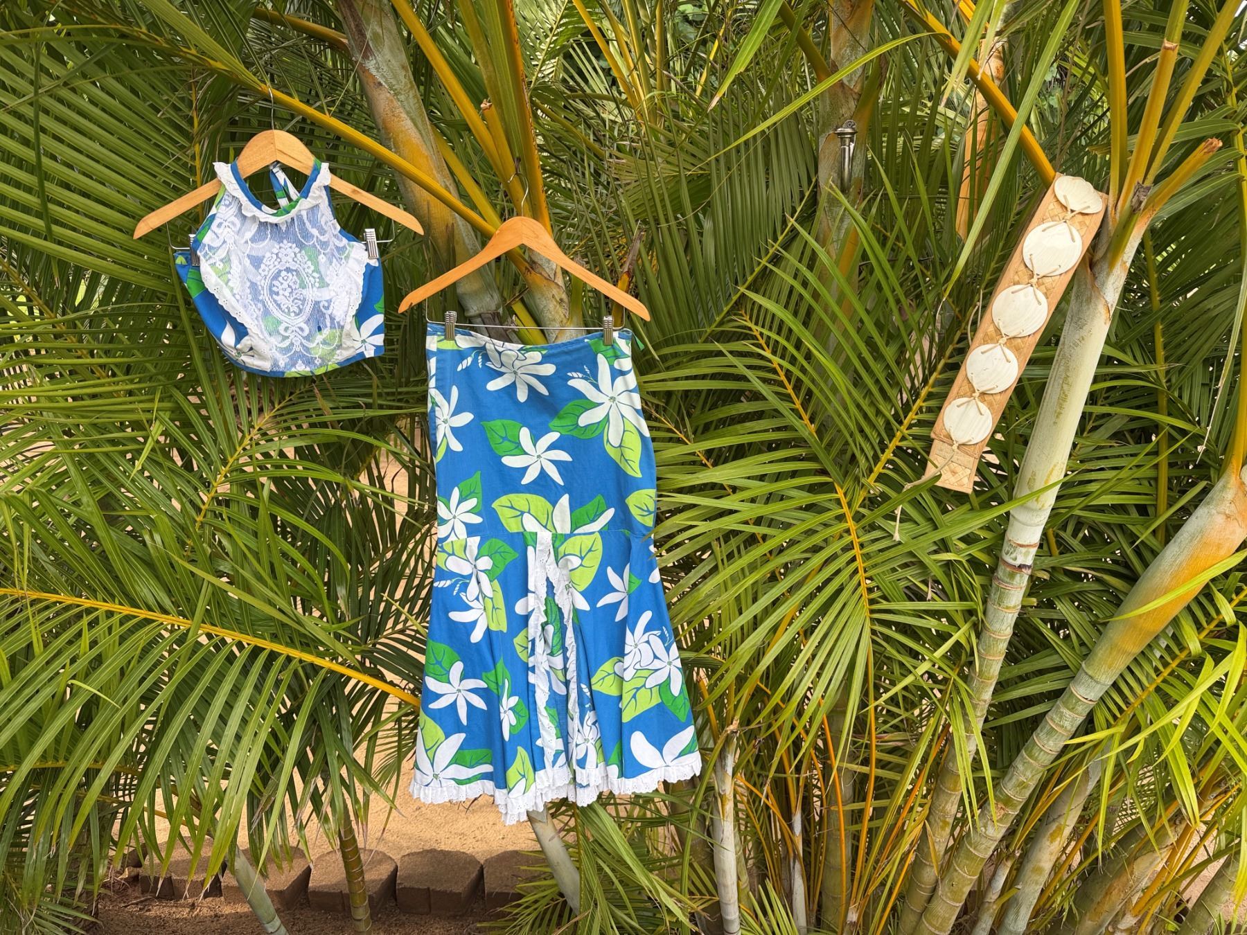 Qty 10 Blue & White Floral Costume Pieces: Skirts, Tops & Belts