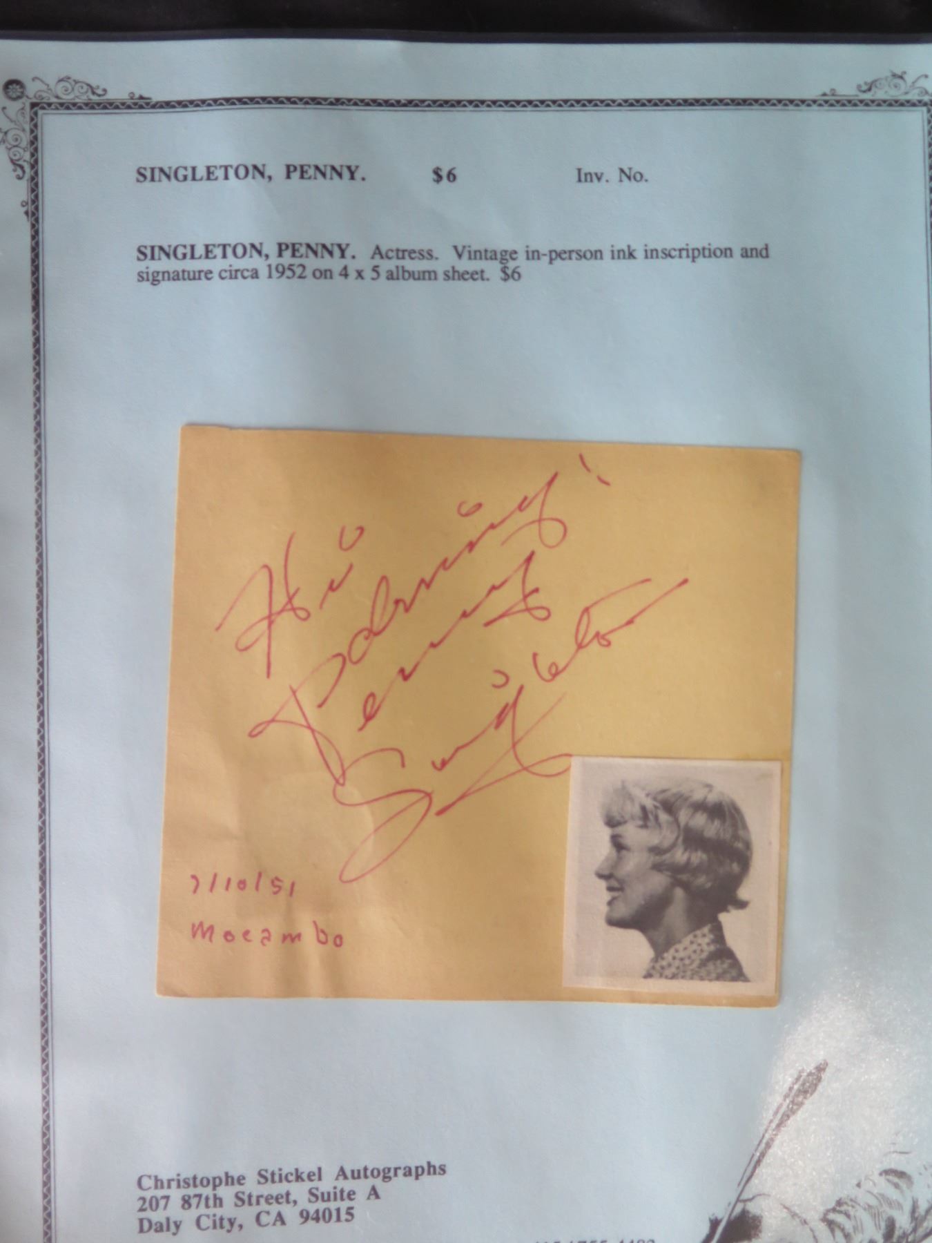 Qty 10 Celebrity Autographs: Penny Singleton, Herb Shriner, Victoria Shaw & Others