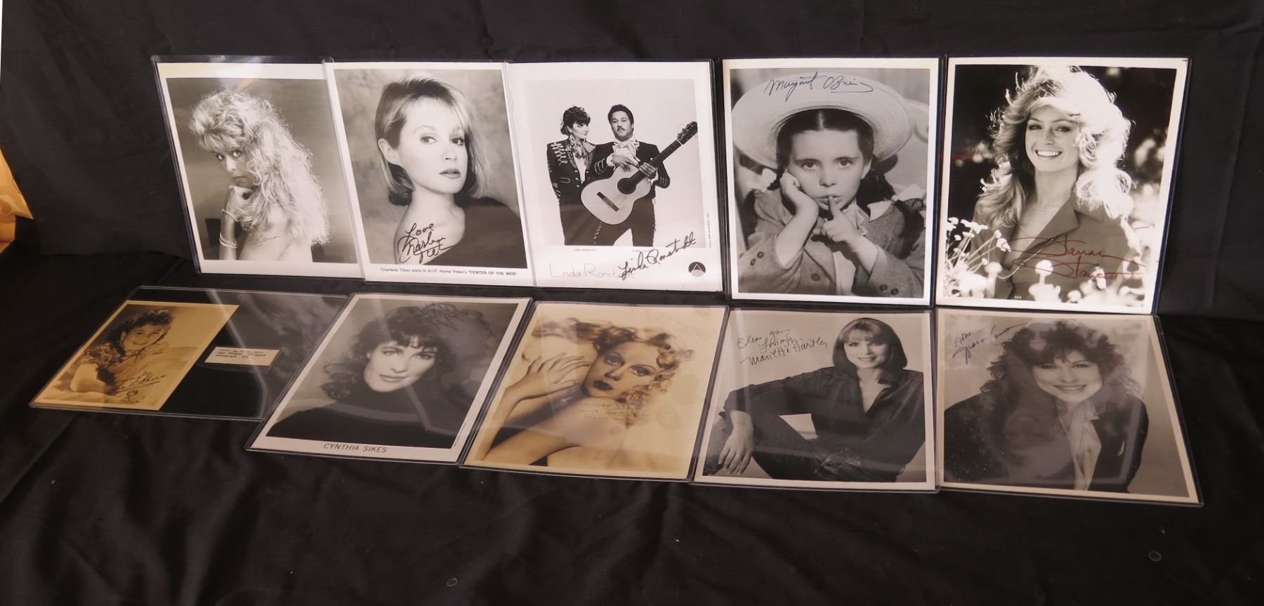 Qty 10 Celebrity Photos: Farrah Fawcett, Linda Ronstadt & Others, Some Signed
