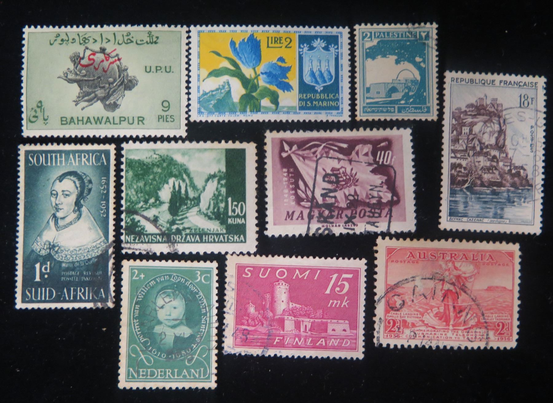 Qty 10 Collectible Stamps: Bahawalpur, Palestine, South Africa, Nederland, Finland, etc