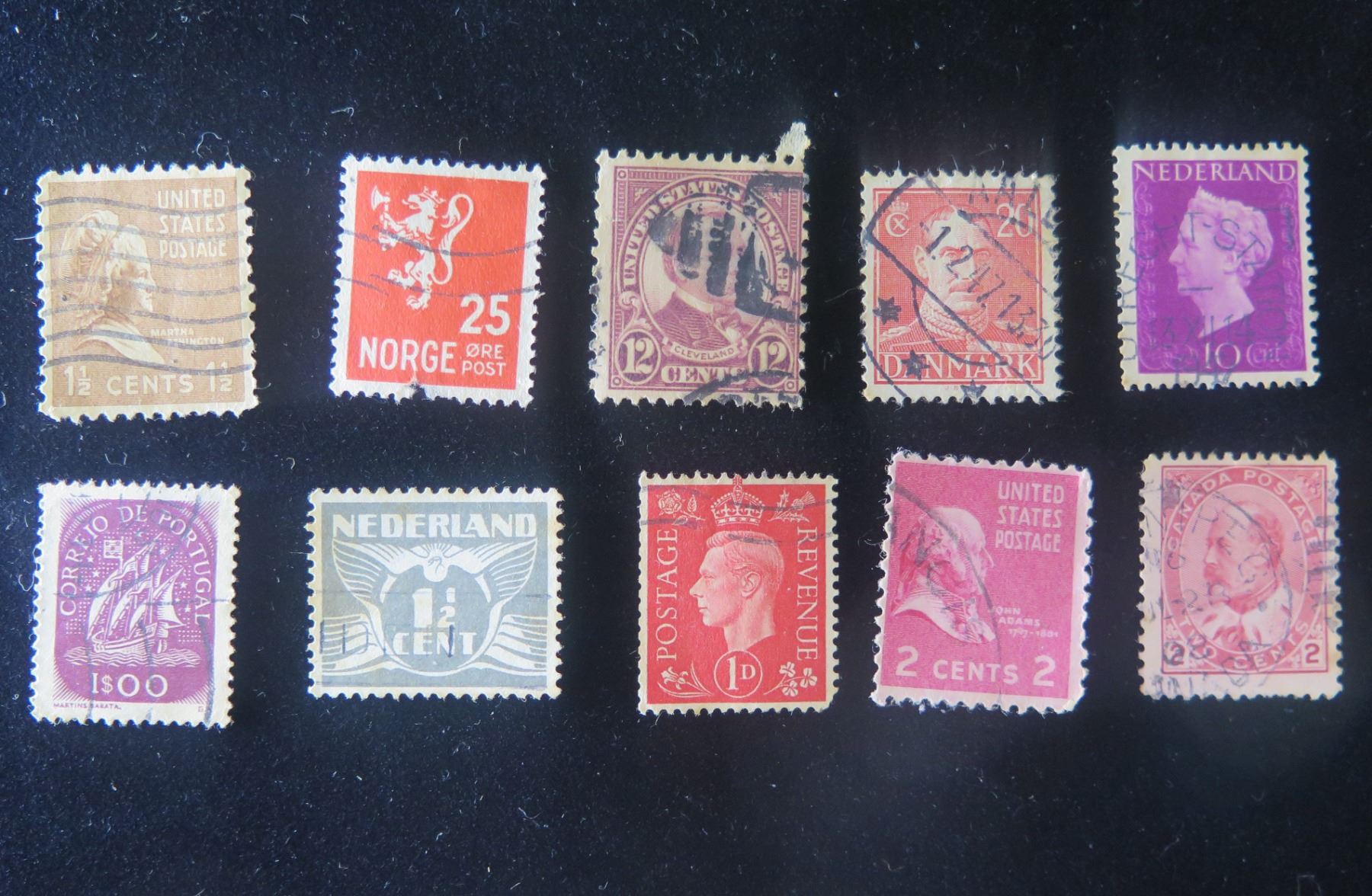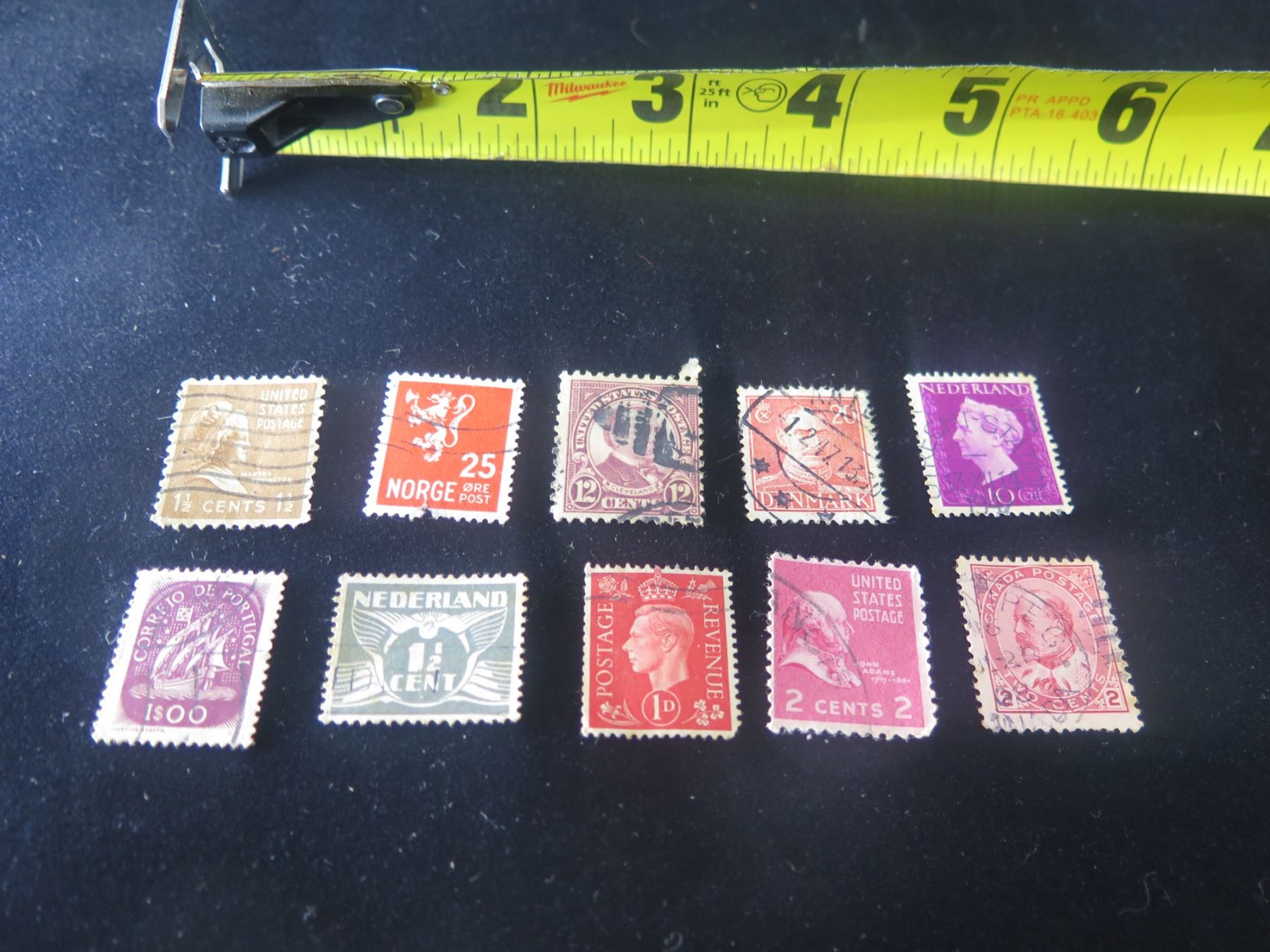 Qty 10 Collectible Stamps: Norge, Danmark, Nederland, Canada Portugal , US Postage Misc Value, etc
