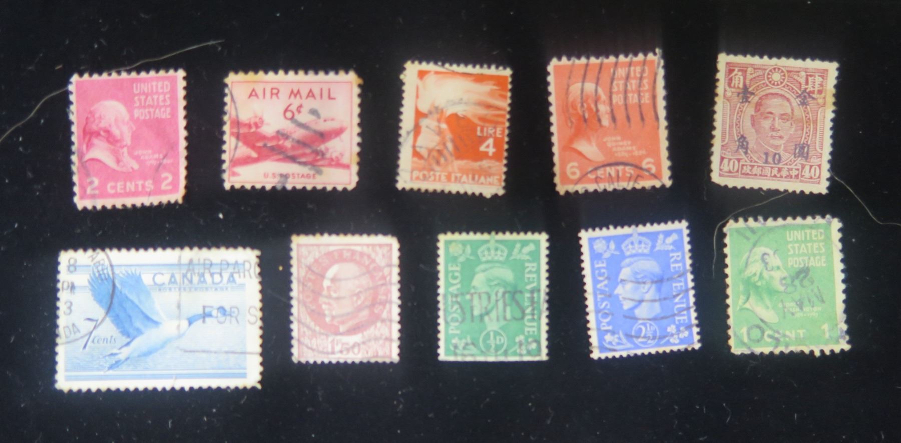 Qty 10 Collectible Stamps: Poste Italiane, Francaise, Canada, US Postage Misc Value, etc