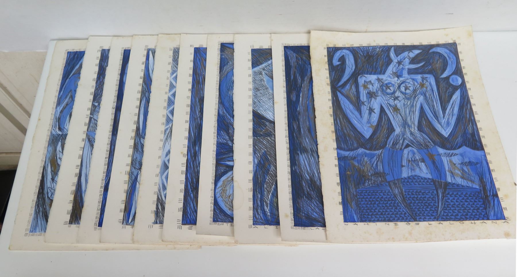 Qty 10 Hawaiian Art, Painted/Pencil 11.5" x 15.5"