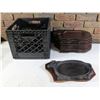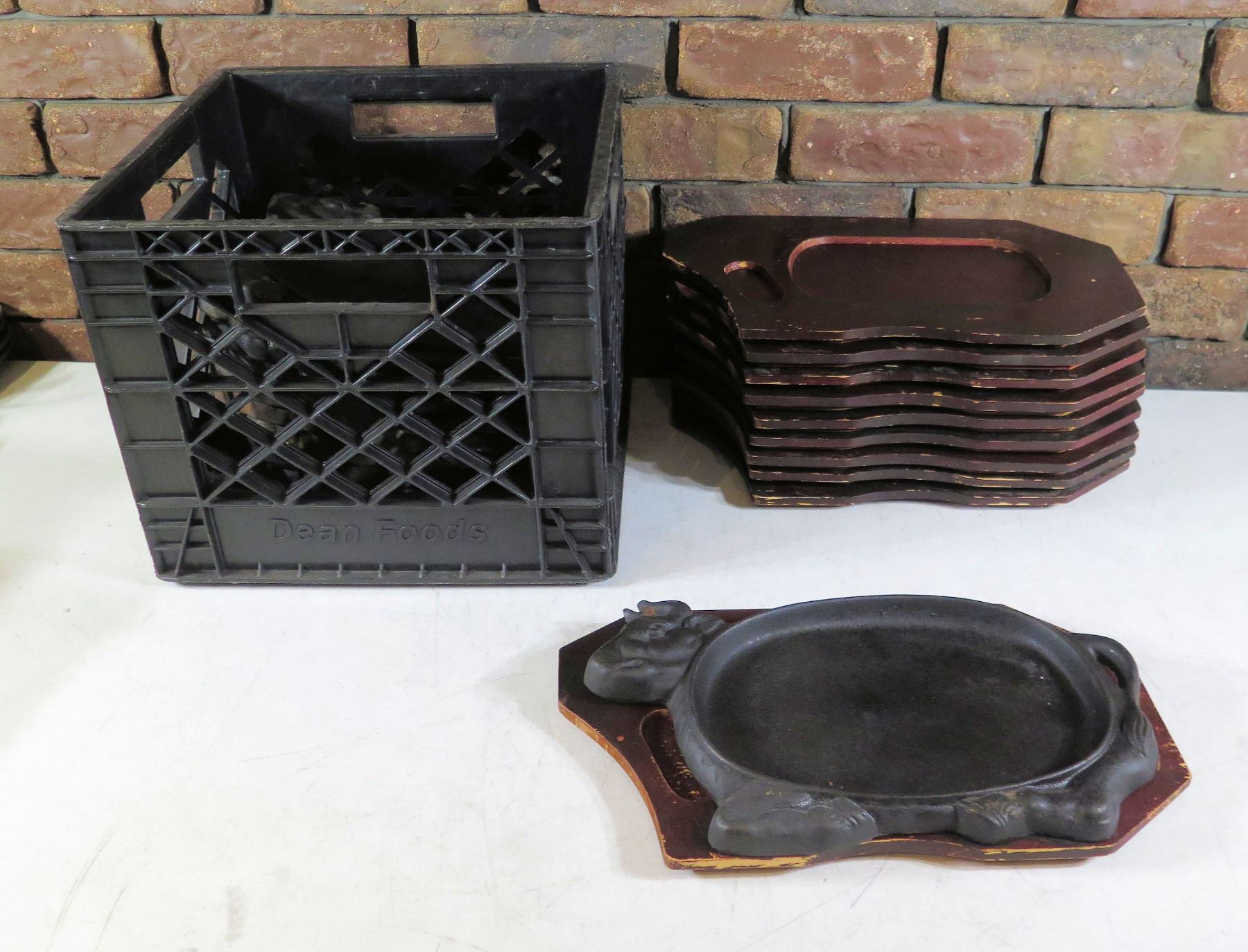Qty 10 Metal Steak Plates w/ Wooden Bases & Maker's Marks