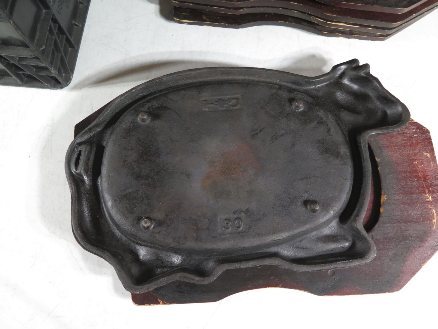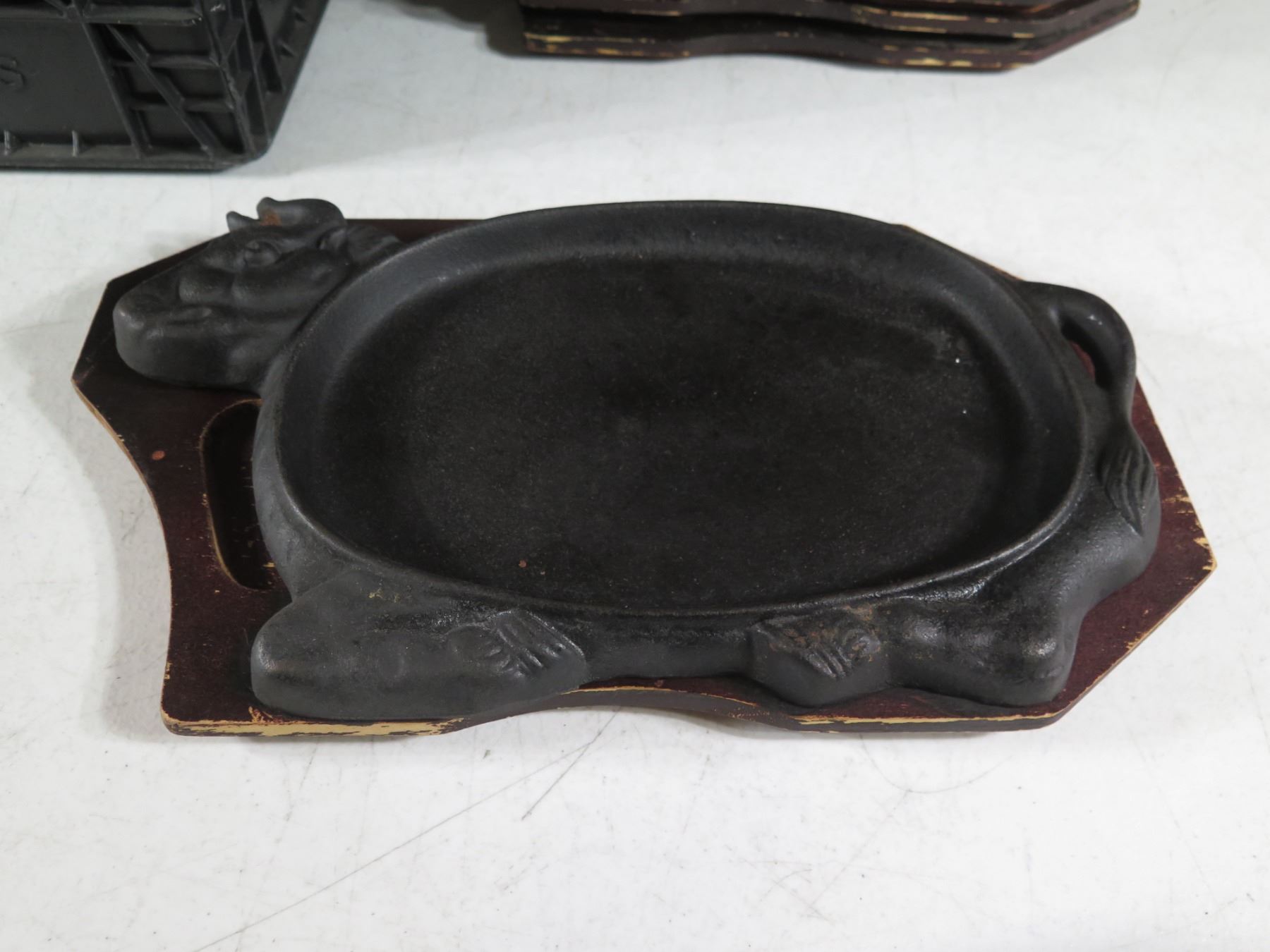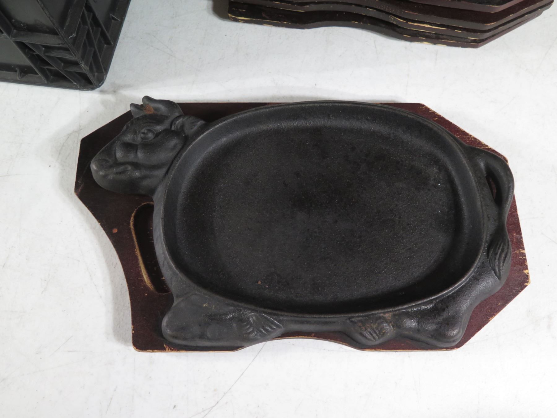 Qty 10 Metal Steak Plates w/ Wooden Bases & Maker's Marks