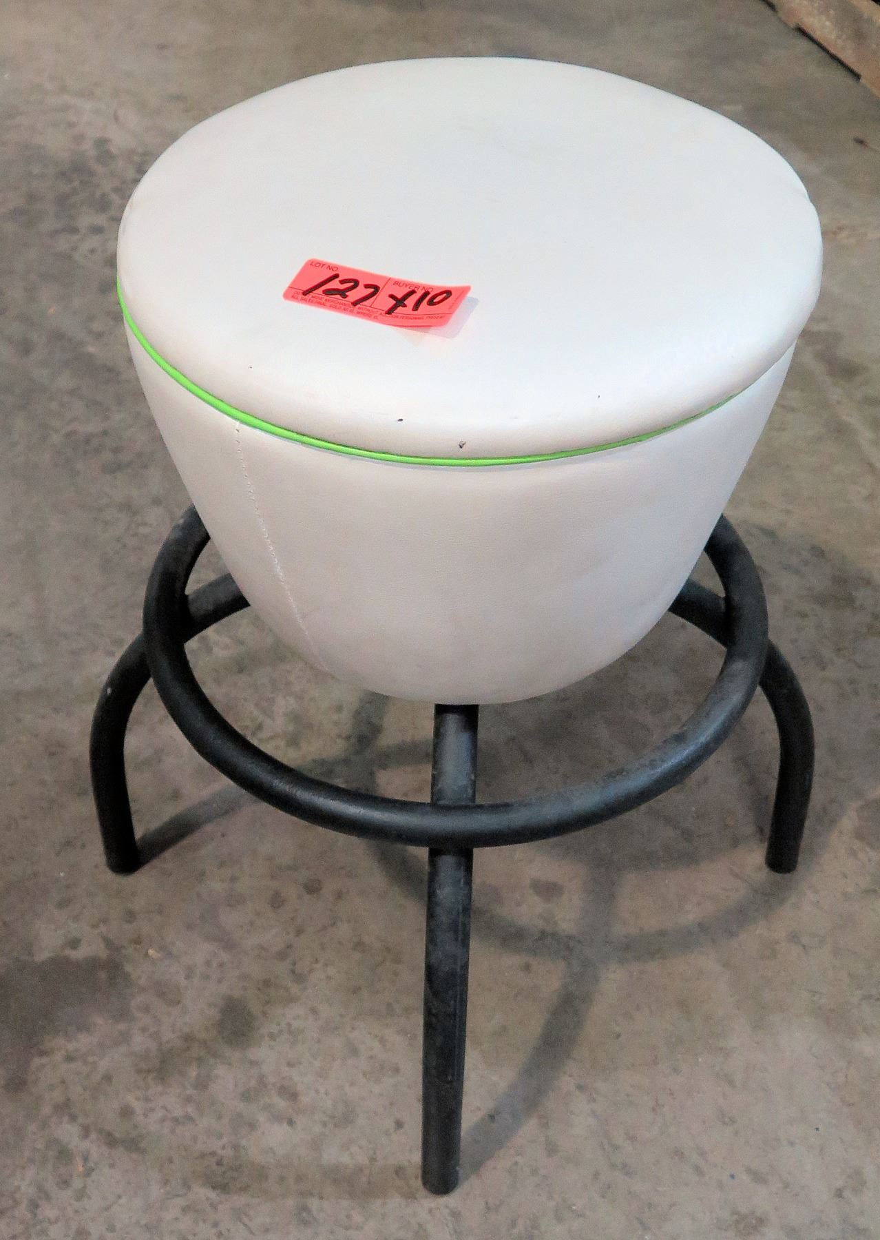 Qty 10 Modern Round White Upholstered Stools w/ Black Metal Base