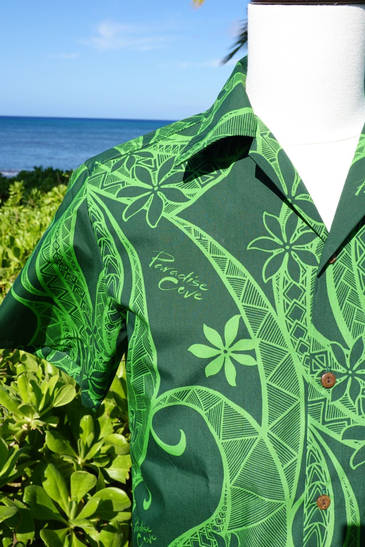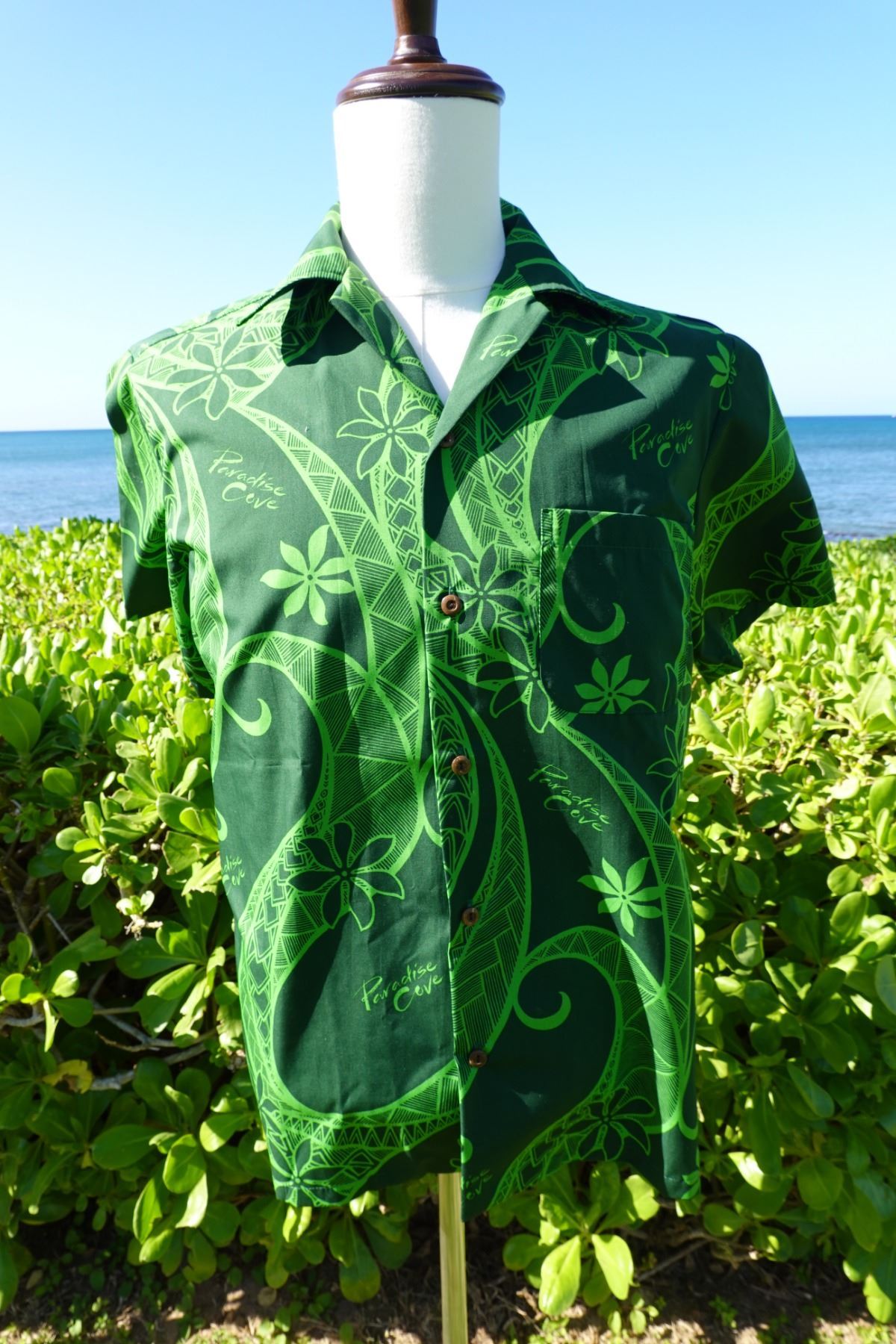 Qty 10 Malihini Hawaii Men's Green Aloha Shirts w/ Paradise Cove Hot/Cold Bag