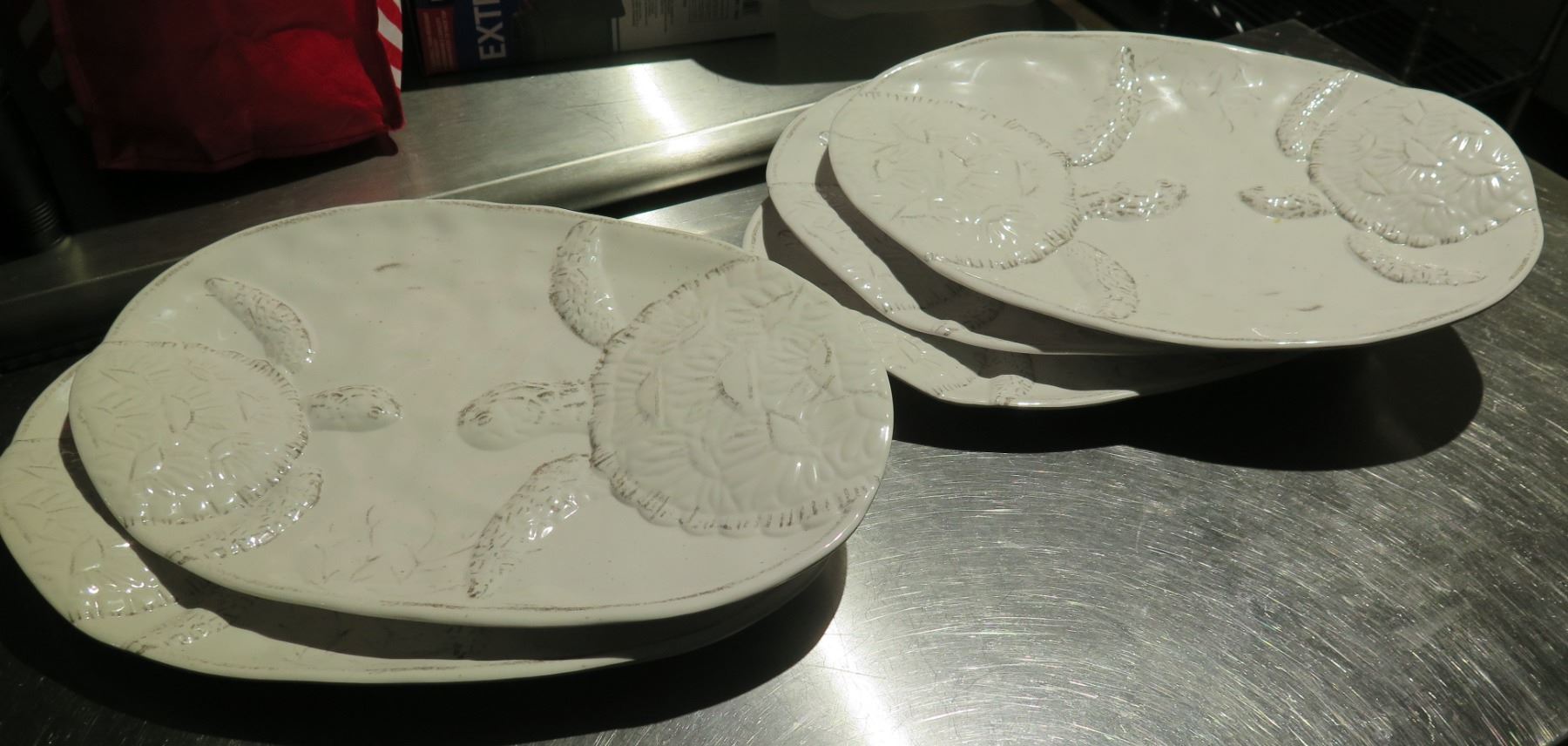 Qty 10 Oval Green Honu Turtle Serving Plates 18"x11"