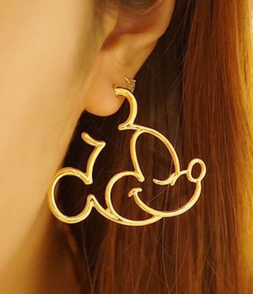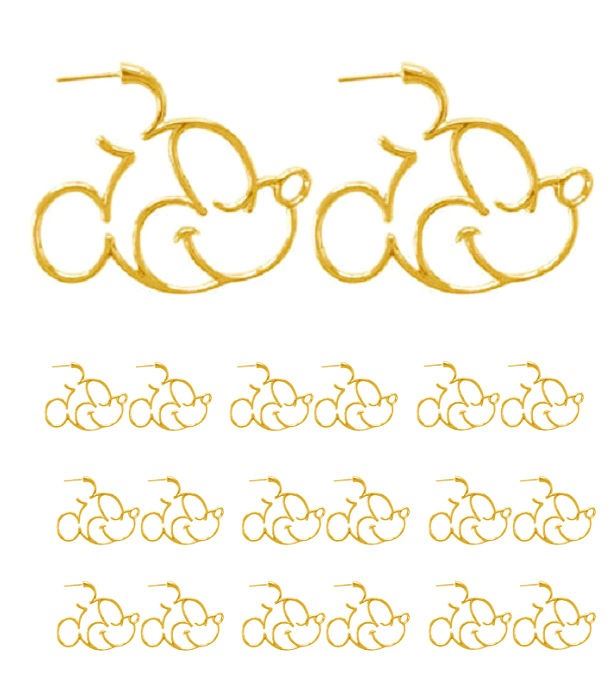 Qty 10 Pair New Fashion Mickey Mouse Gold-Tone Metal Pierced Earrings