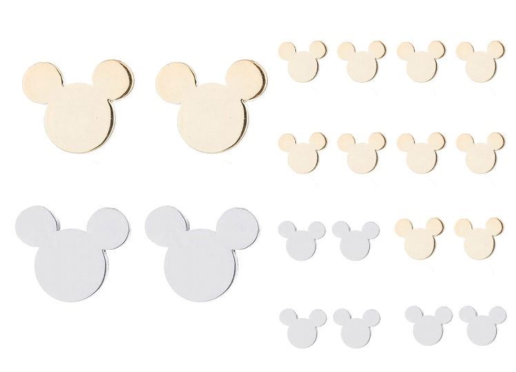 Qty 10 Pair Small Mickey Mouse Metal Stud Earrings (6 Gold-Tone/4 Silver-Tone)