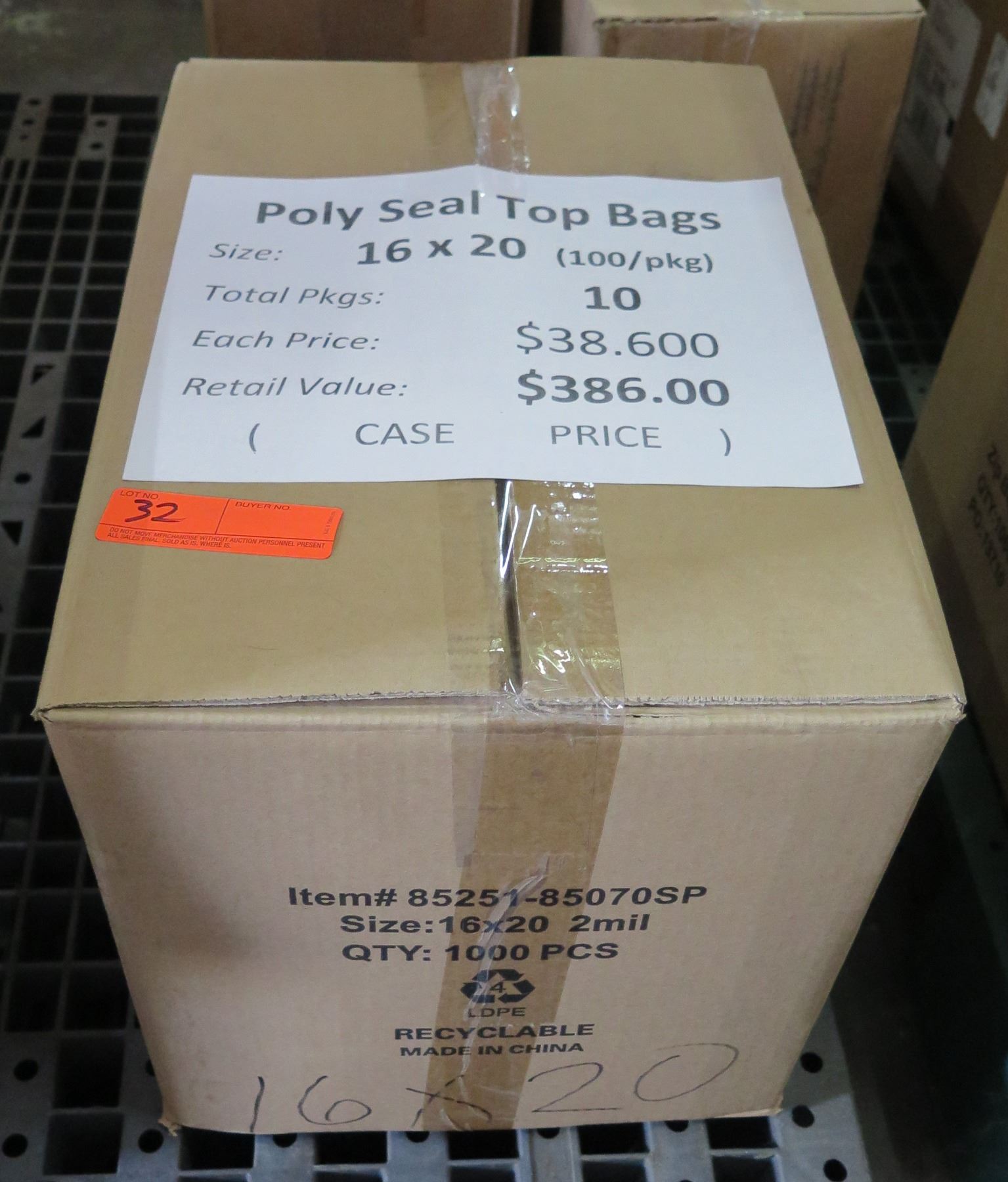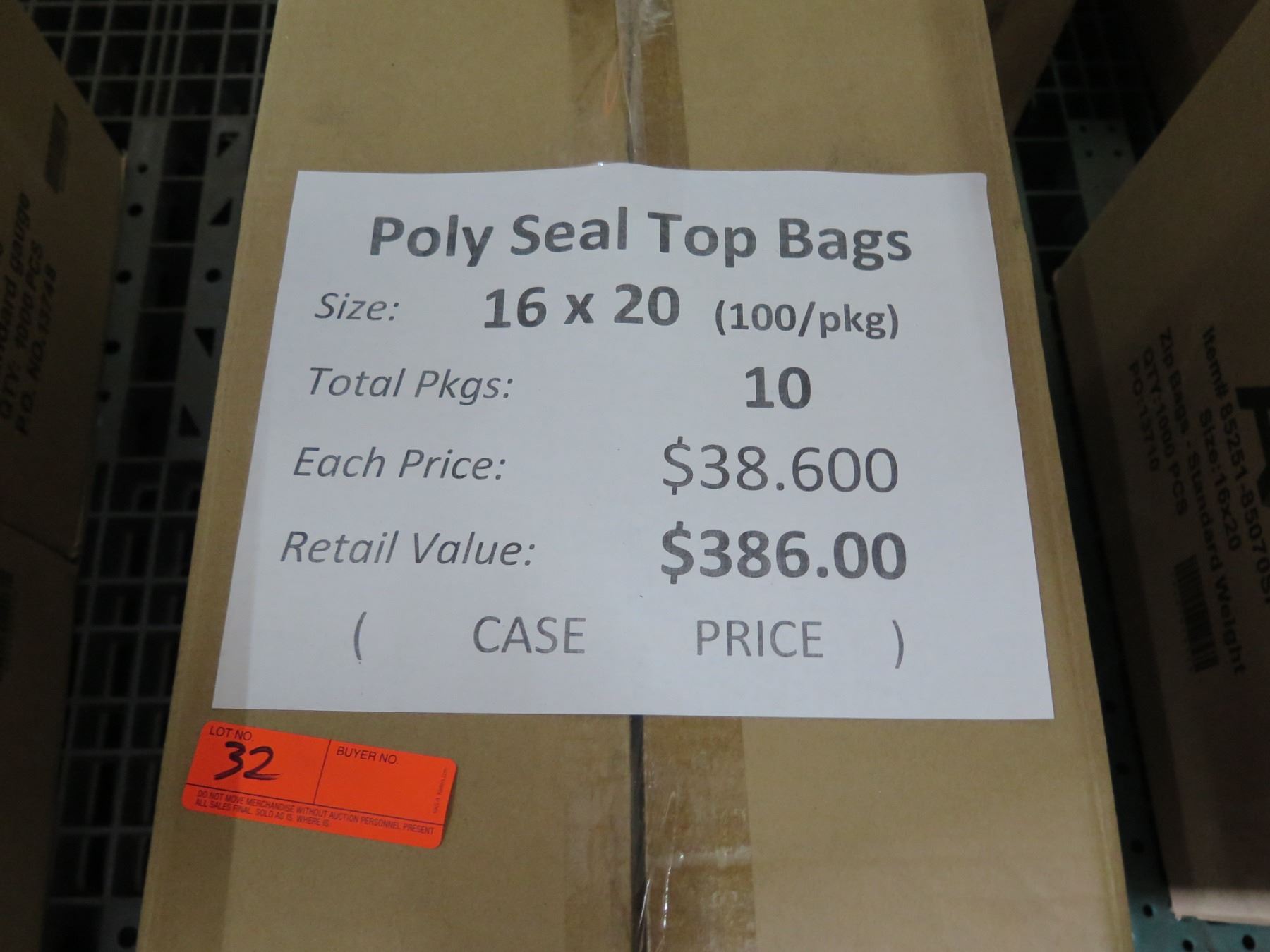 Qty 10 Pkgs (100 ea) Poly Seal Top Bags 16"x20" Retail $386