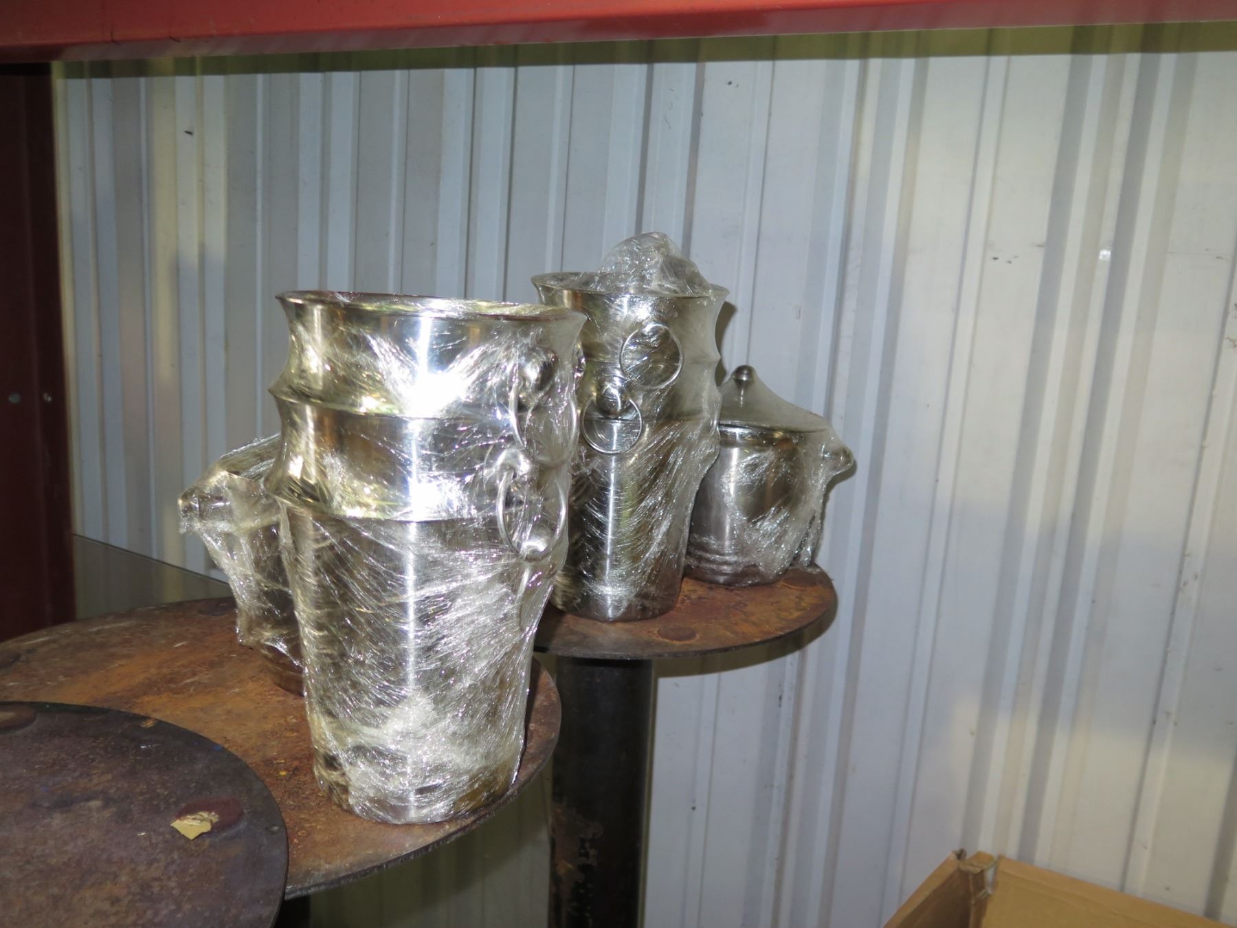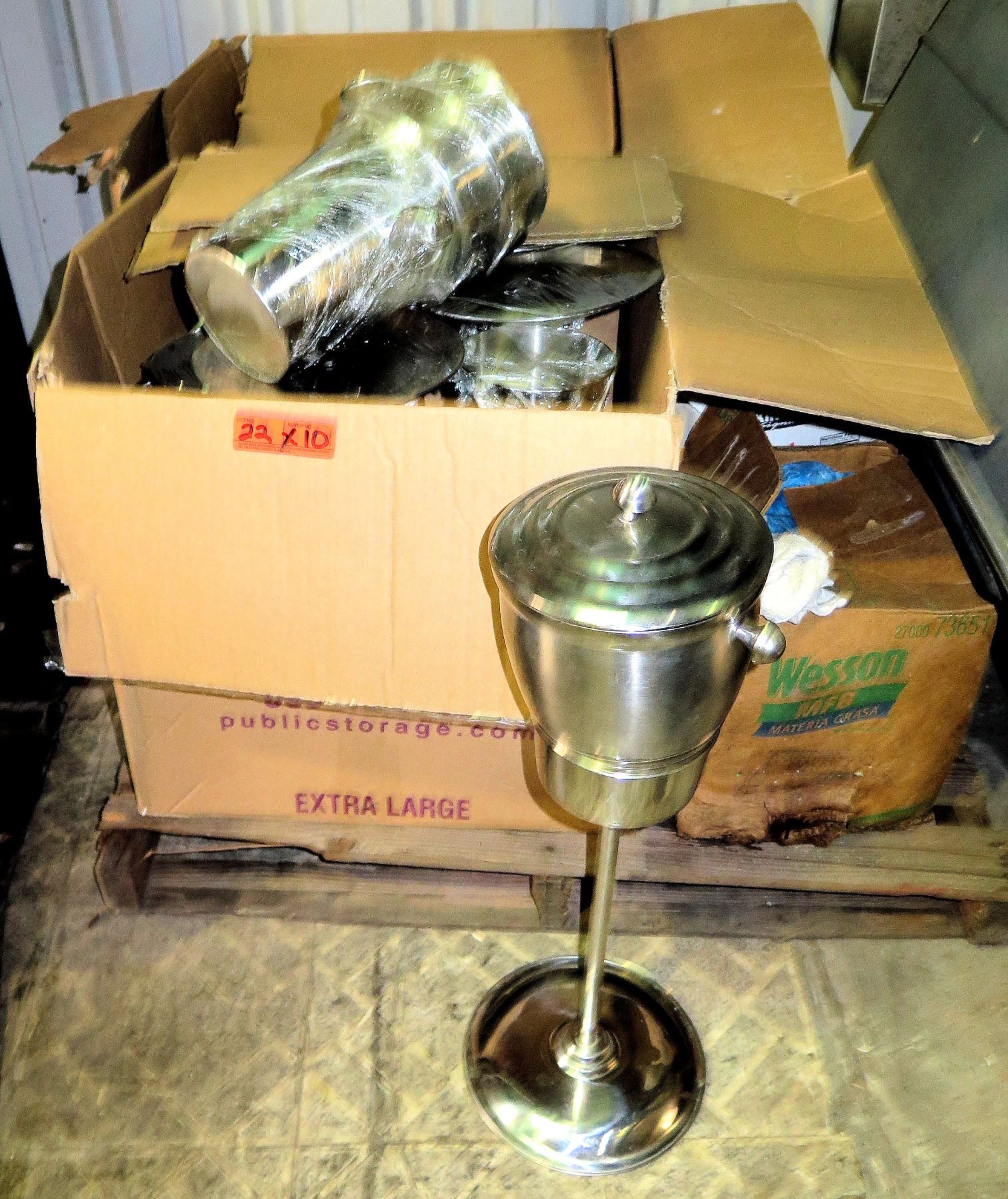 Qty 10 Stainless Steel Ice/Wine Buckets w/ Lids on Pole Base