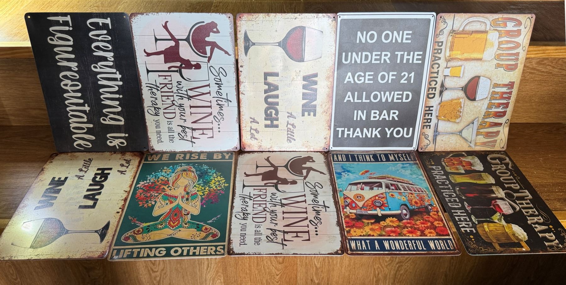 Qty 10 Wine & Business Signs Approx. 8" x 12"