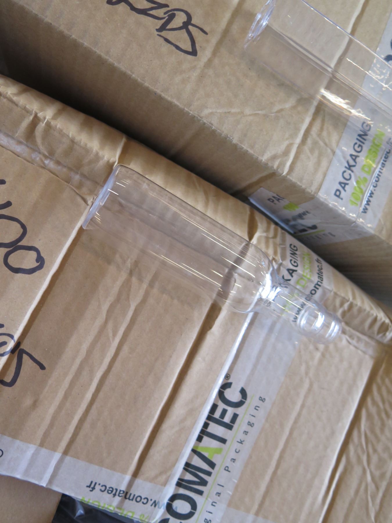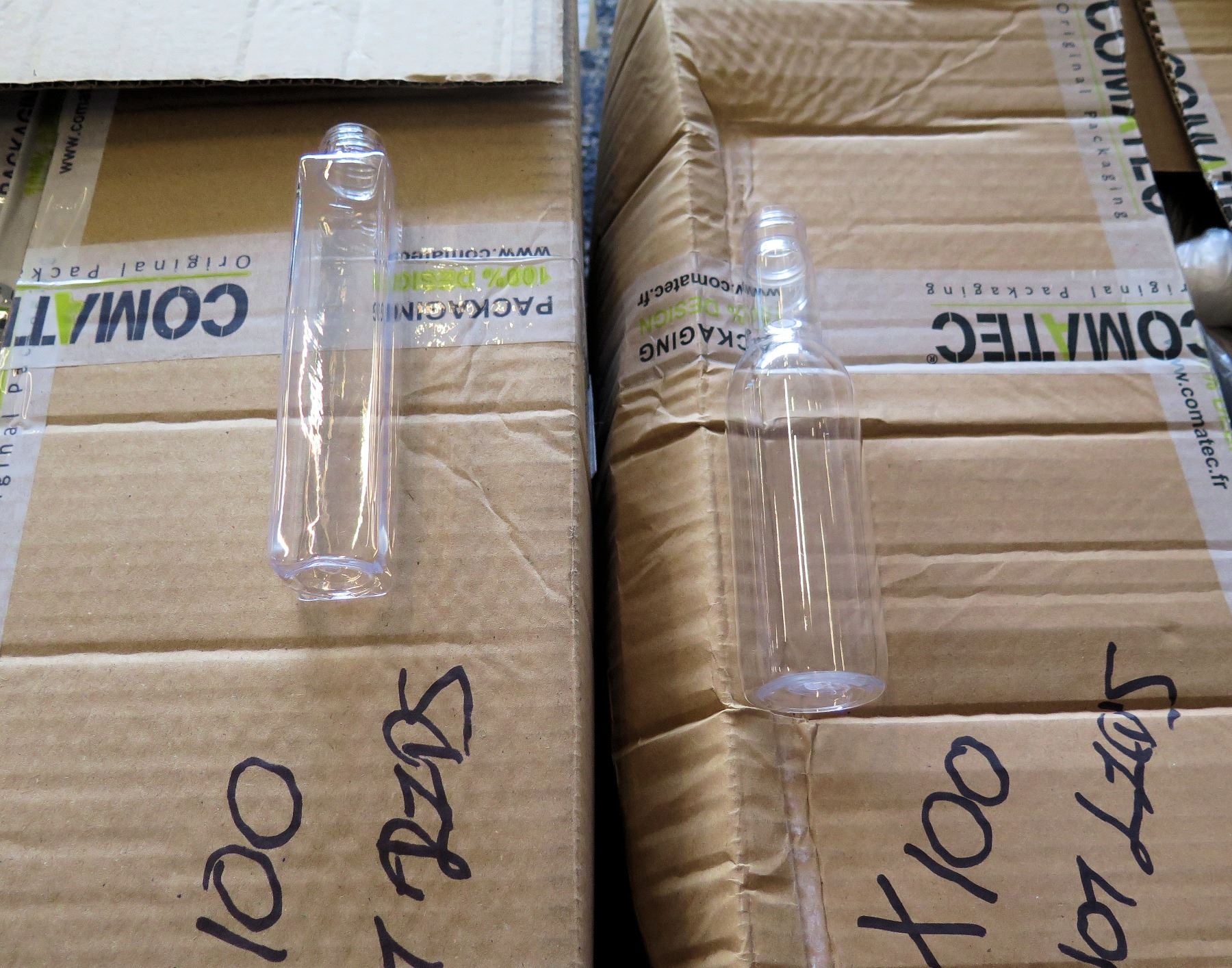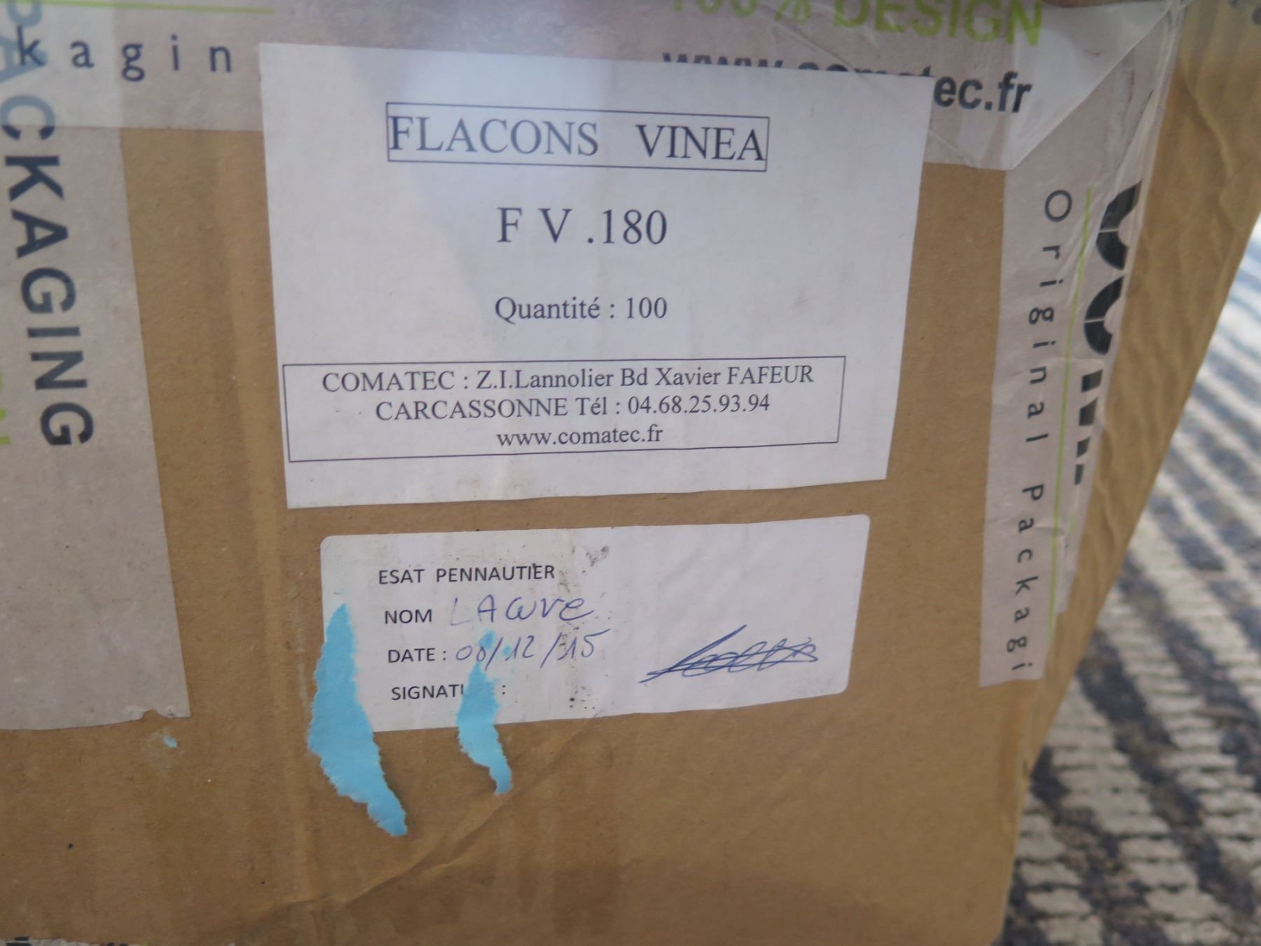 Qty 100 Comatec FV.180 Flacons Vinea Bottles w/ Lids 7"H New in Box
