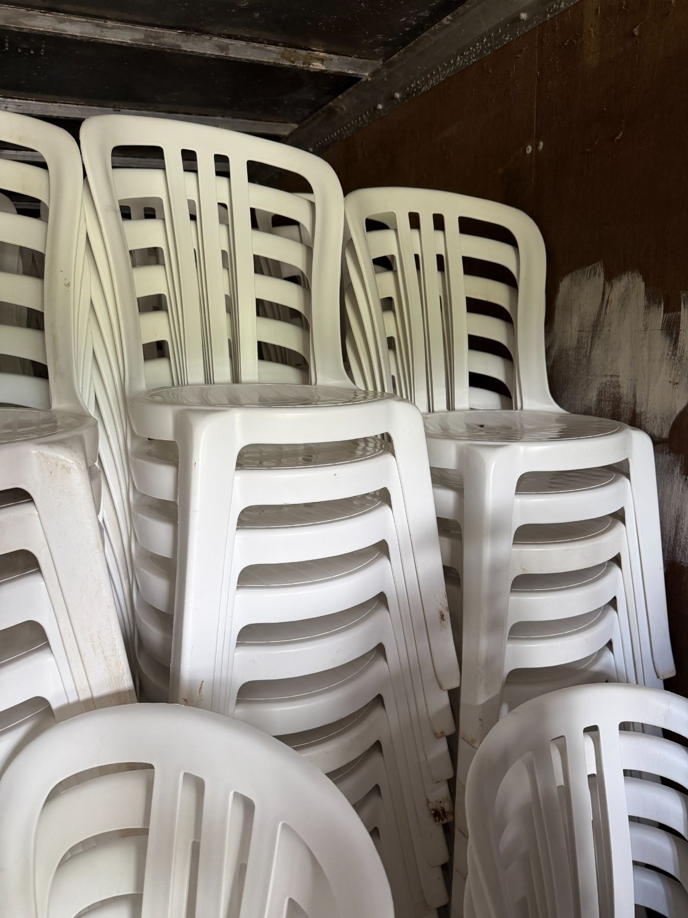 Qty 100 Grosfillex White Miami Bistro Stacking Side Chairs (retail $41/ea) 15" x 15" x 34"H