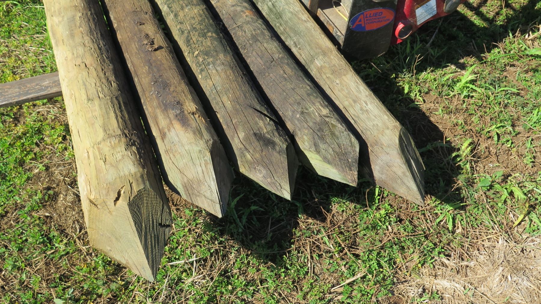 Qty 100 "Large" Pointed Wooden Fence Posts (8' L, 8" to 9" Dia.)