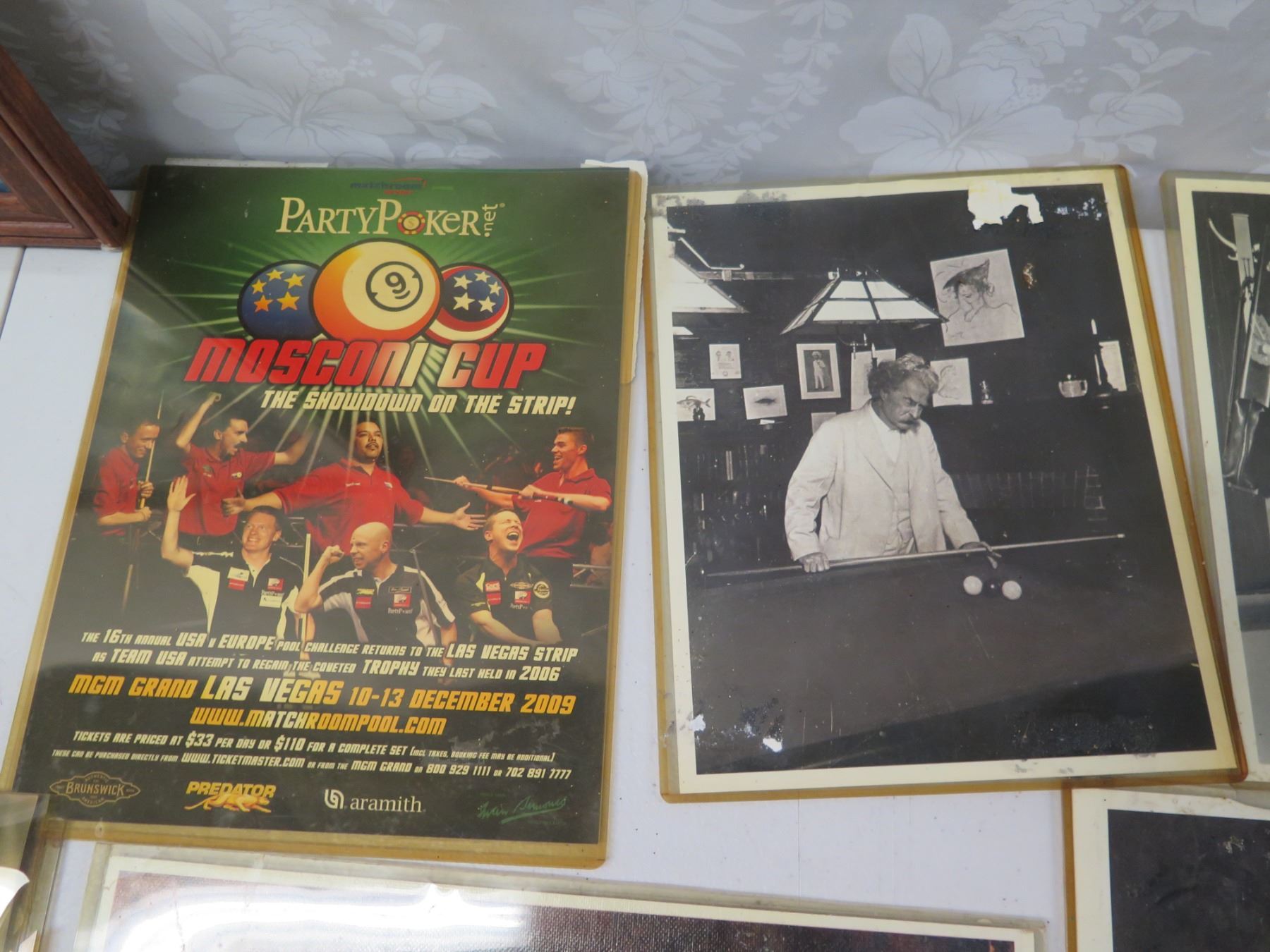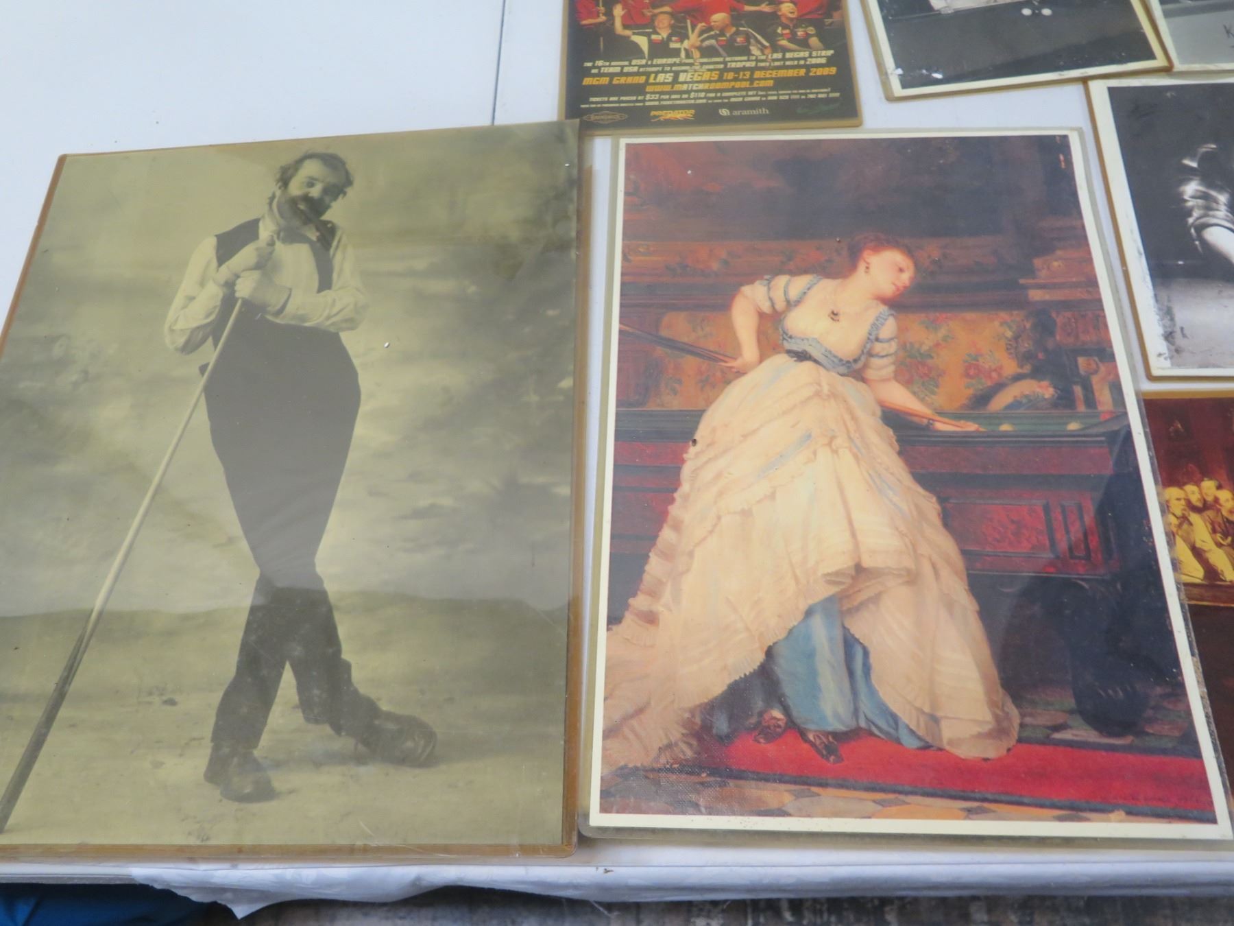 Qty 11 Billiards Artwork & Photos, 1 Framed, Misc Sizes