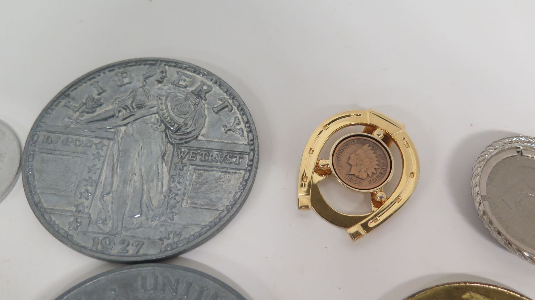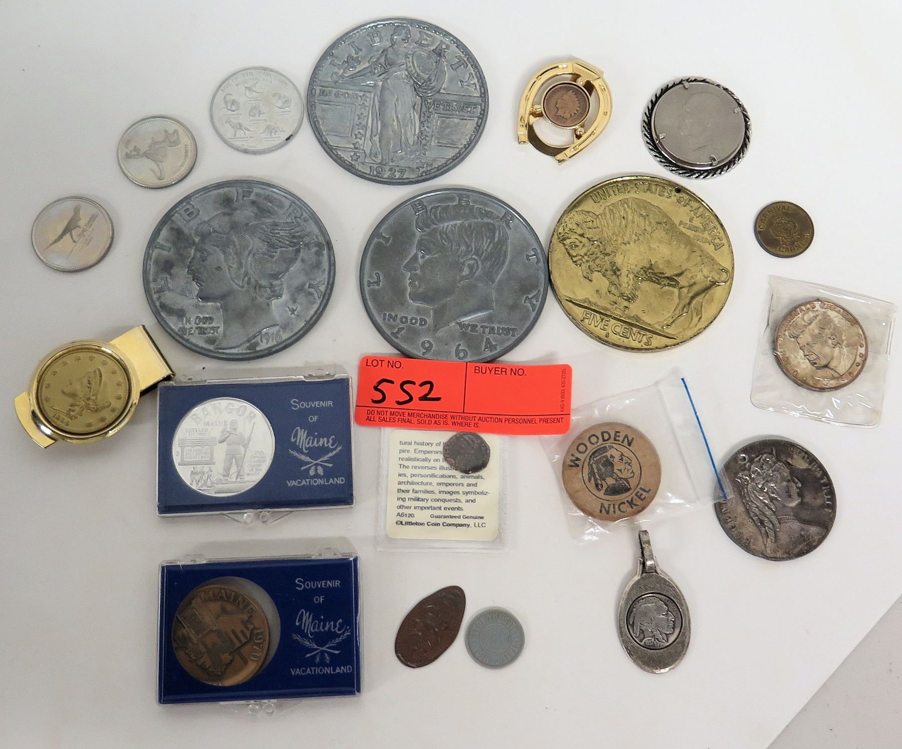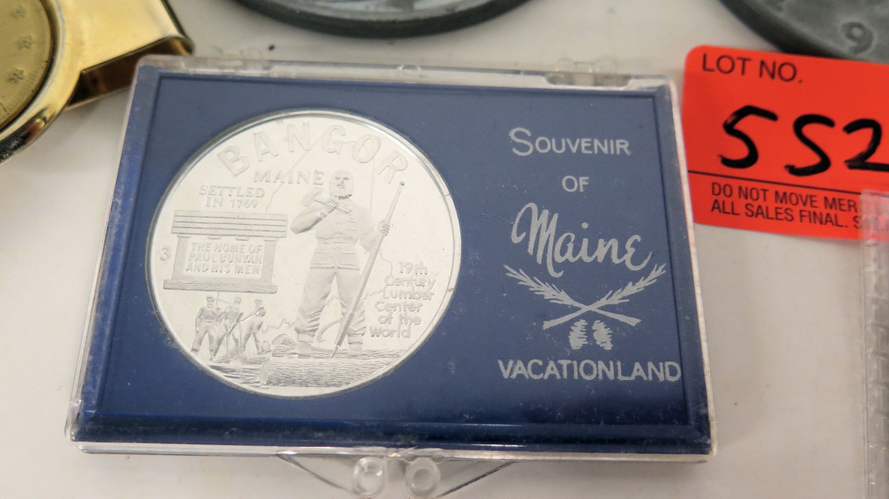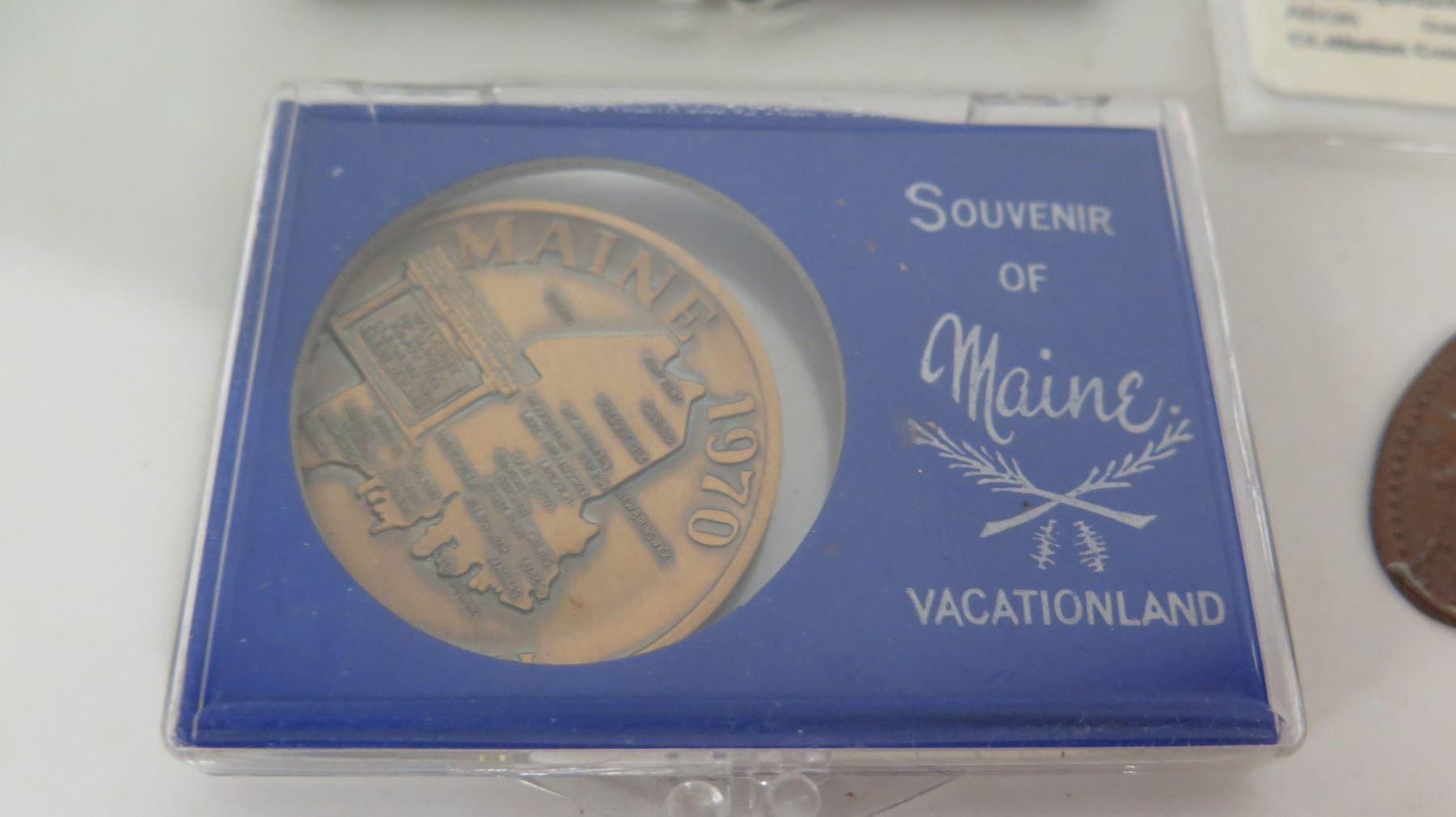 Qty 11 Coins, Money Clip, Tie Tack, Boxed Maine Souvenir Coins