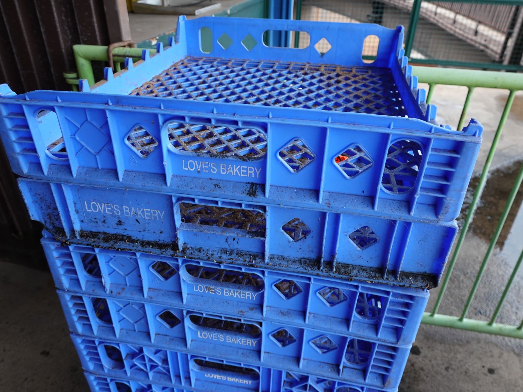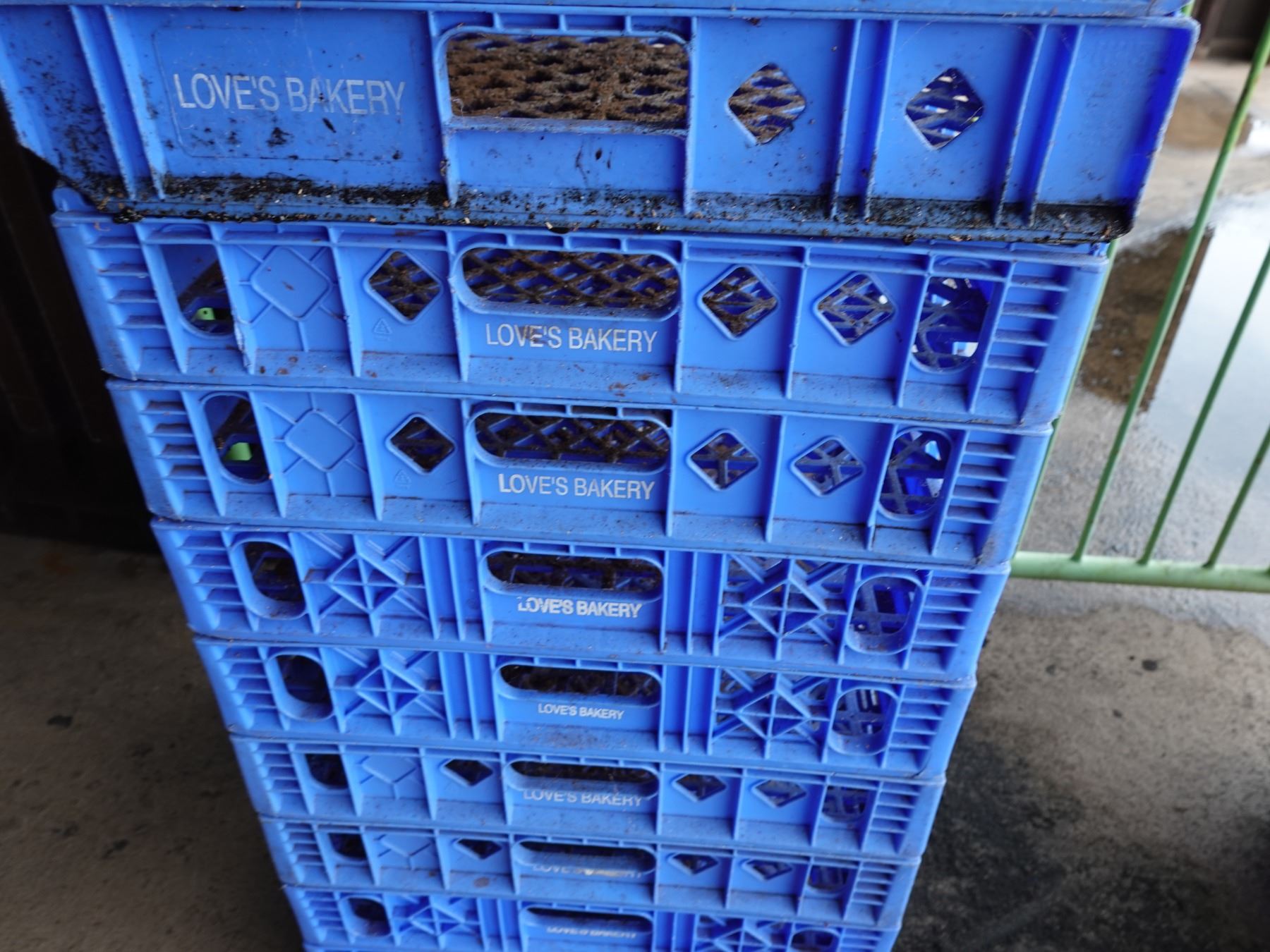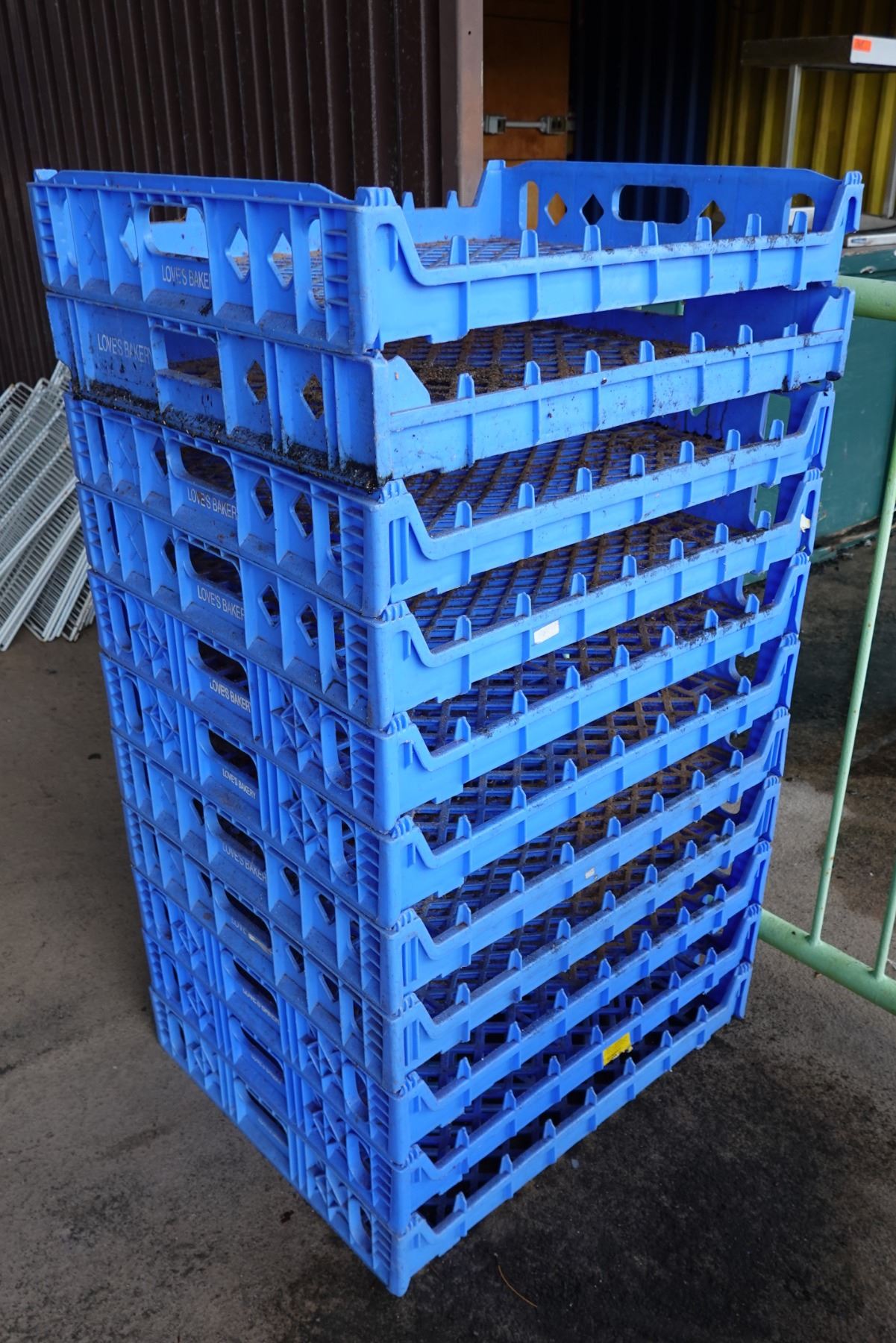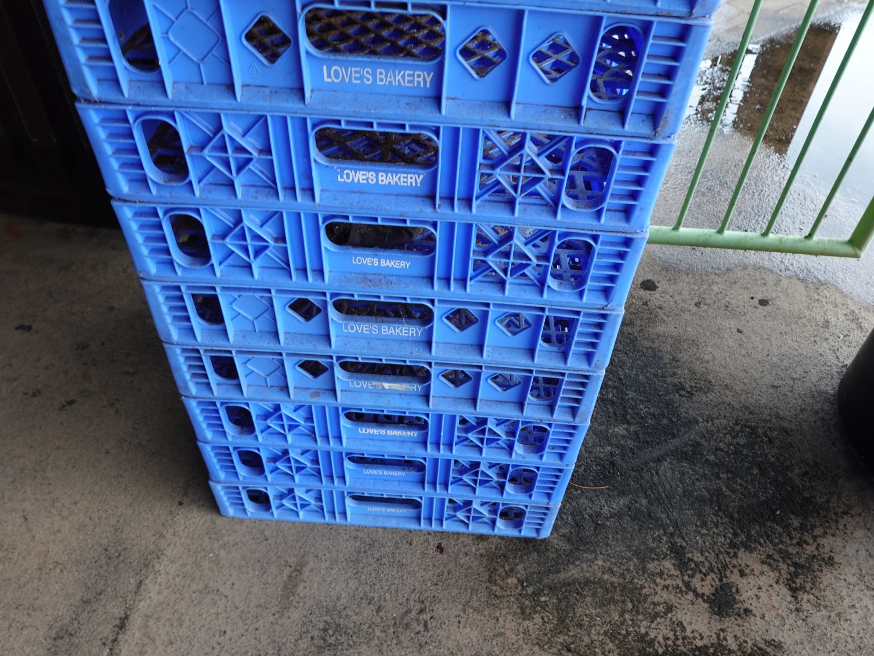 Qty 11 Love's Bakery Blue Plastic Stacking Bread Trays 22" x 25".