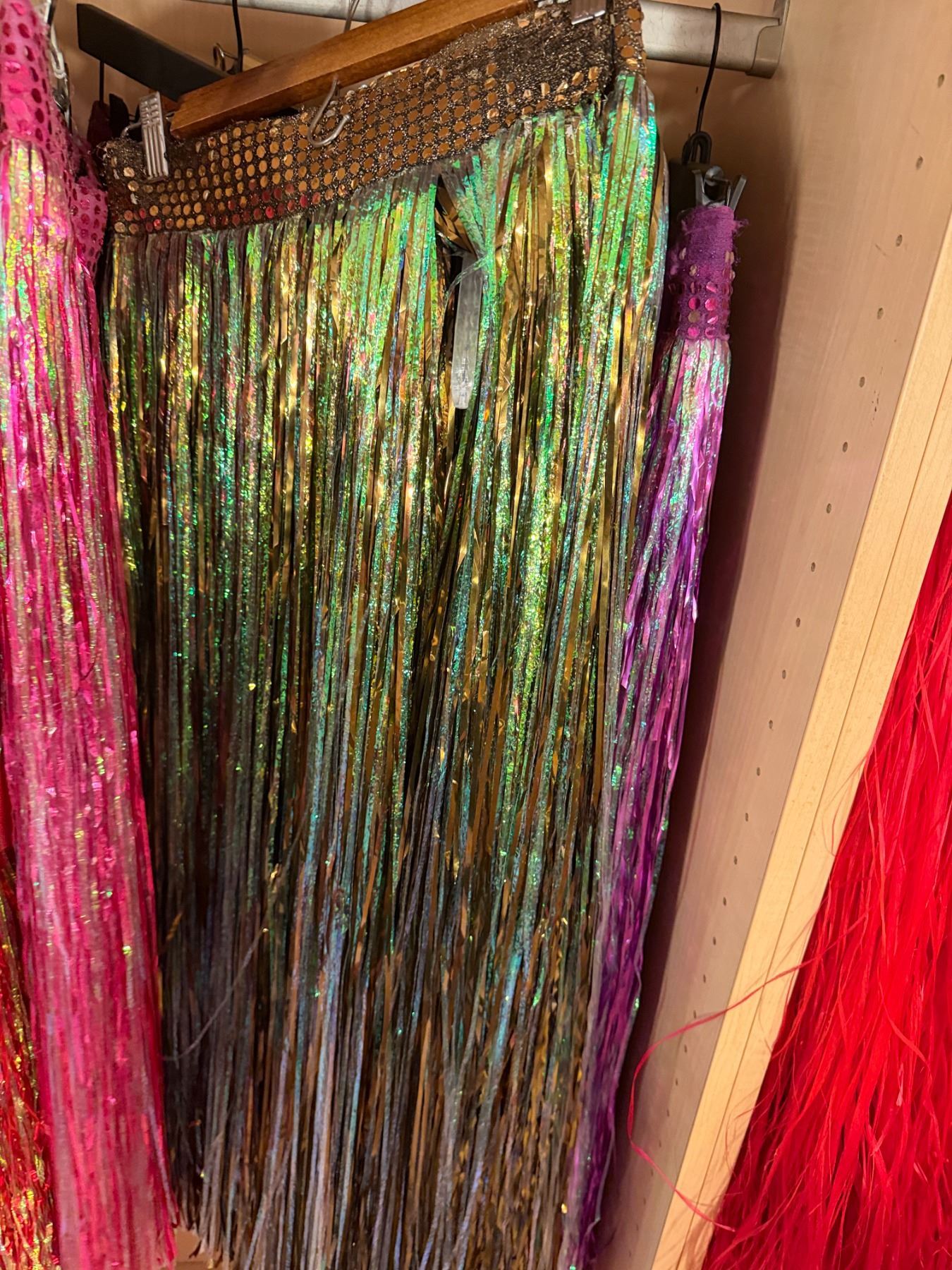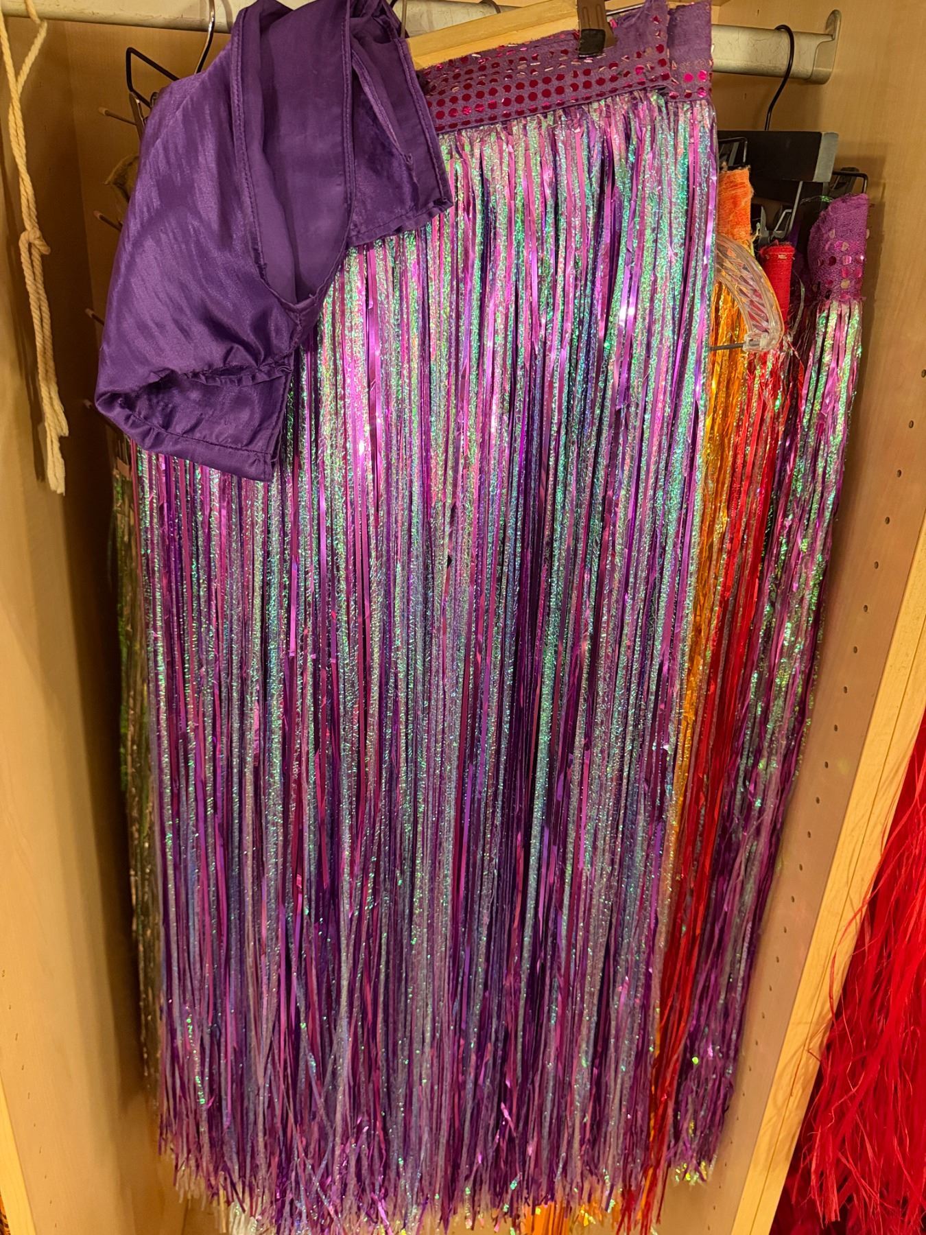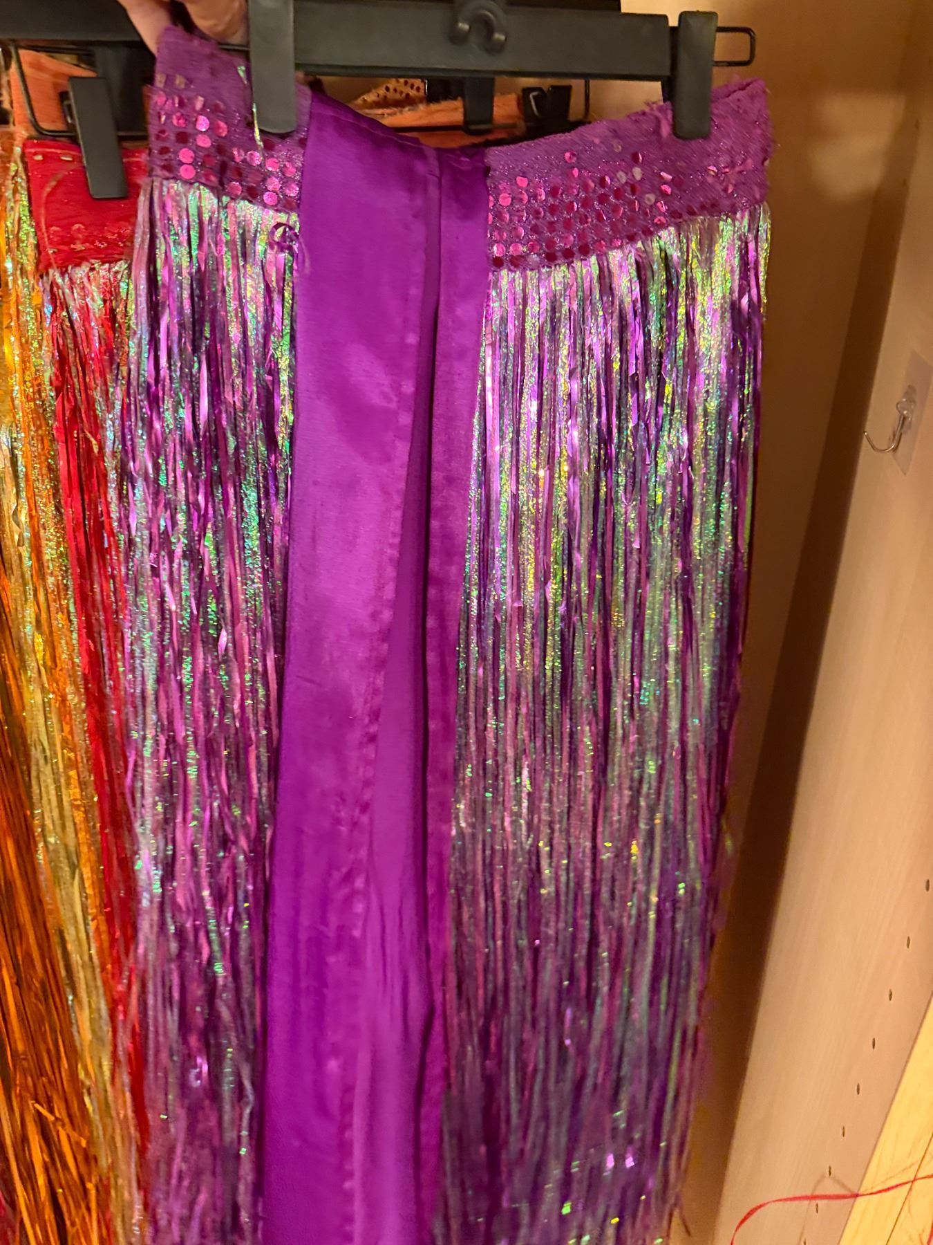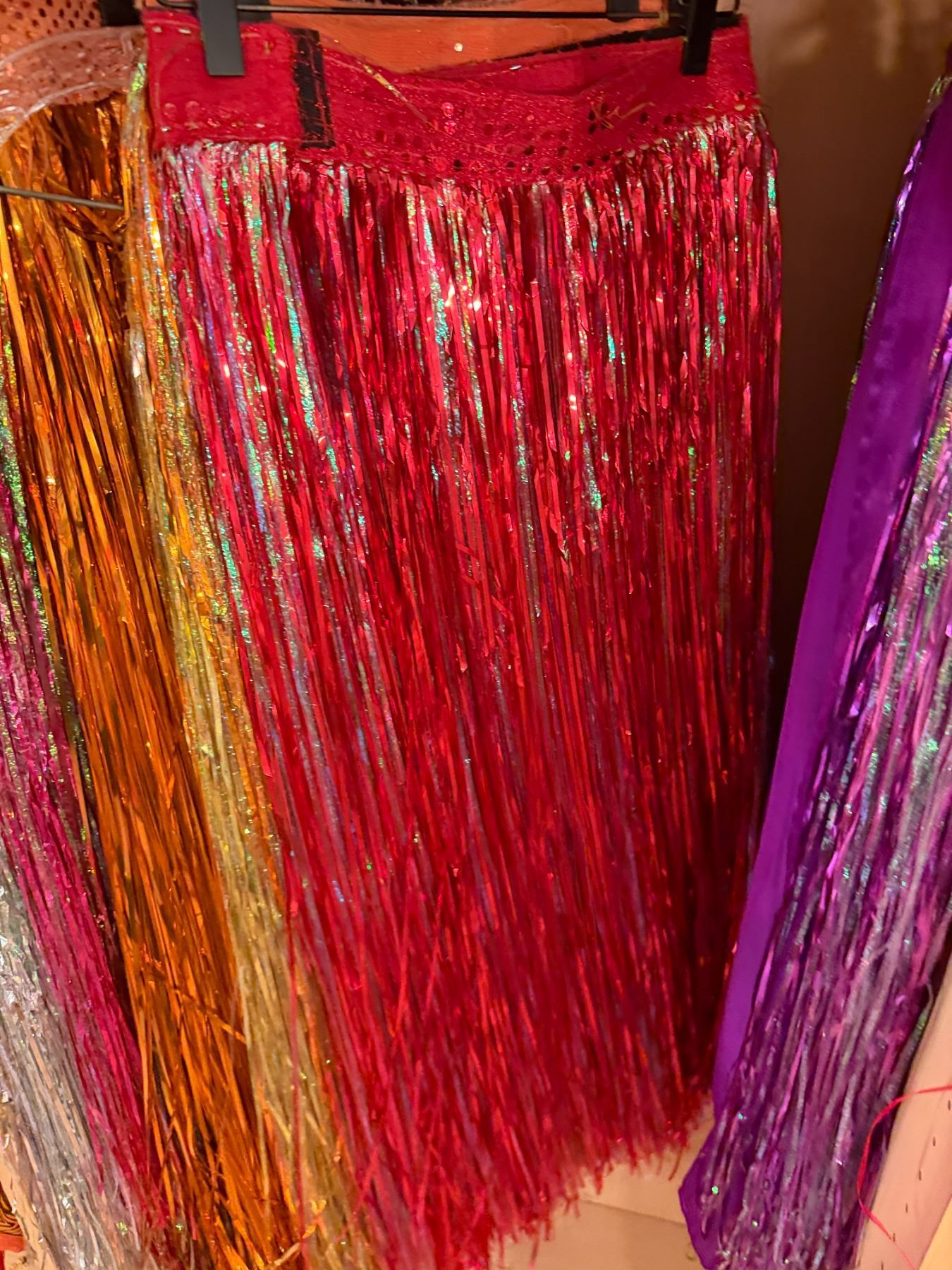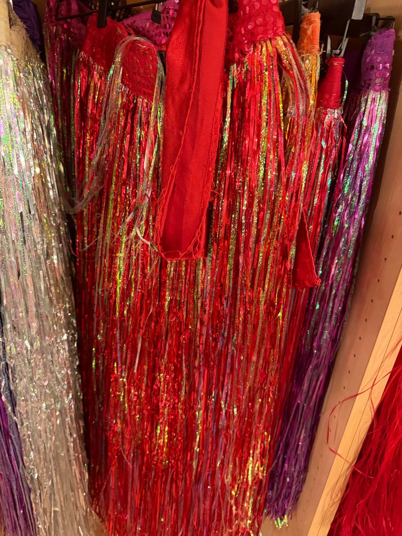 Qty 11 Metallic Fringe Artificial Hula Dance Skirts, Misc Colors