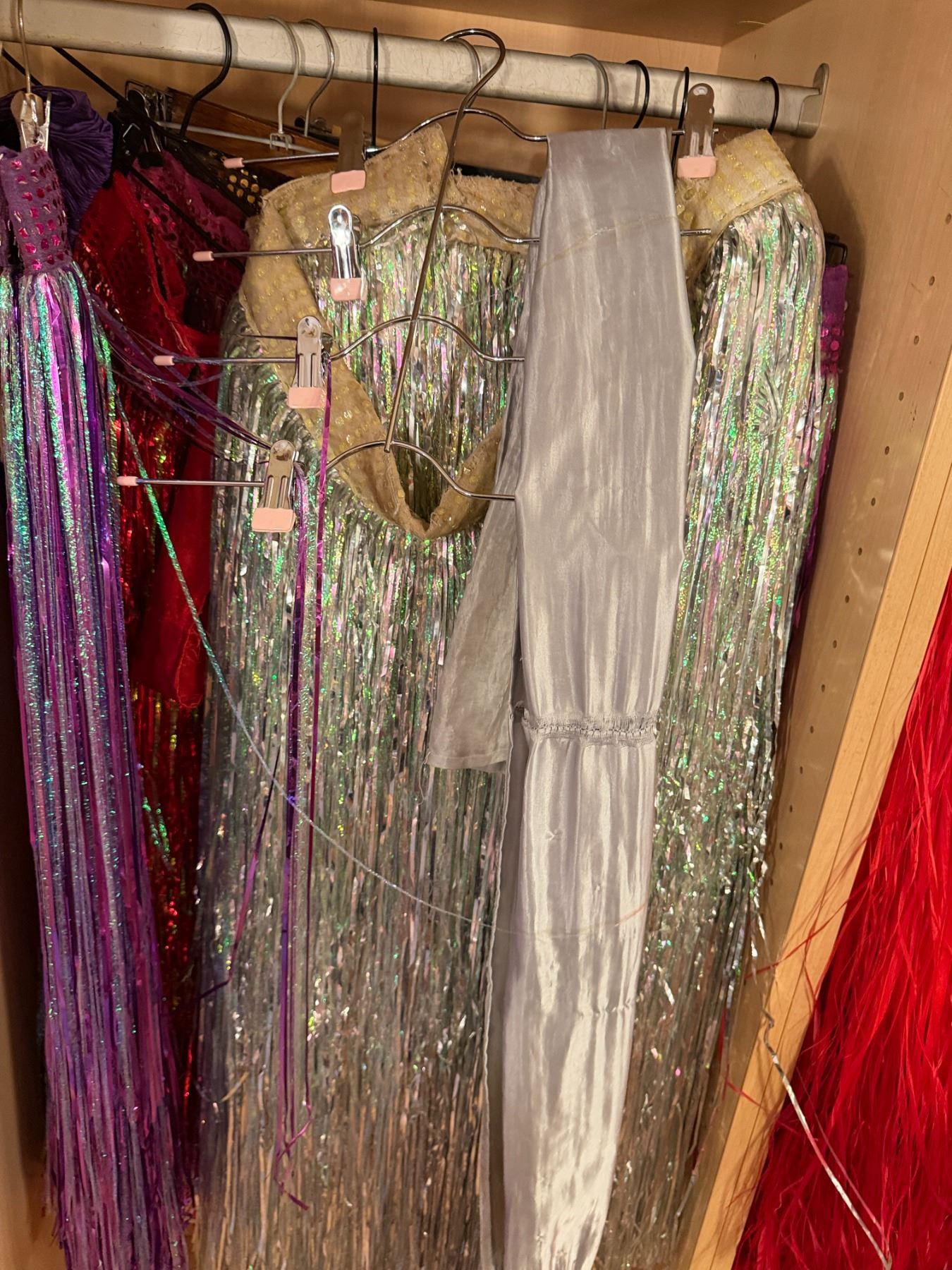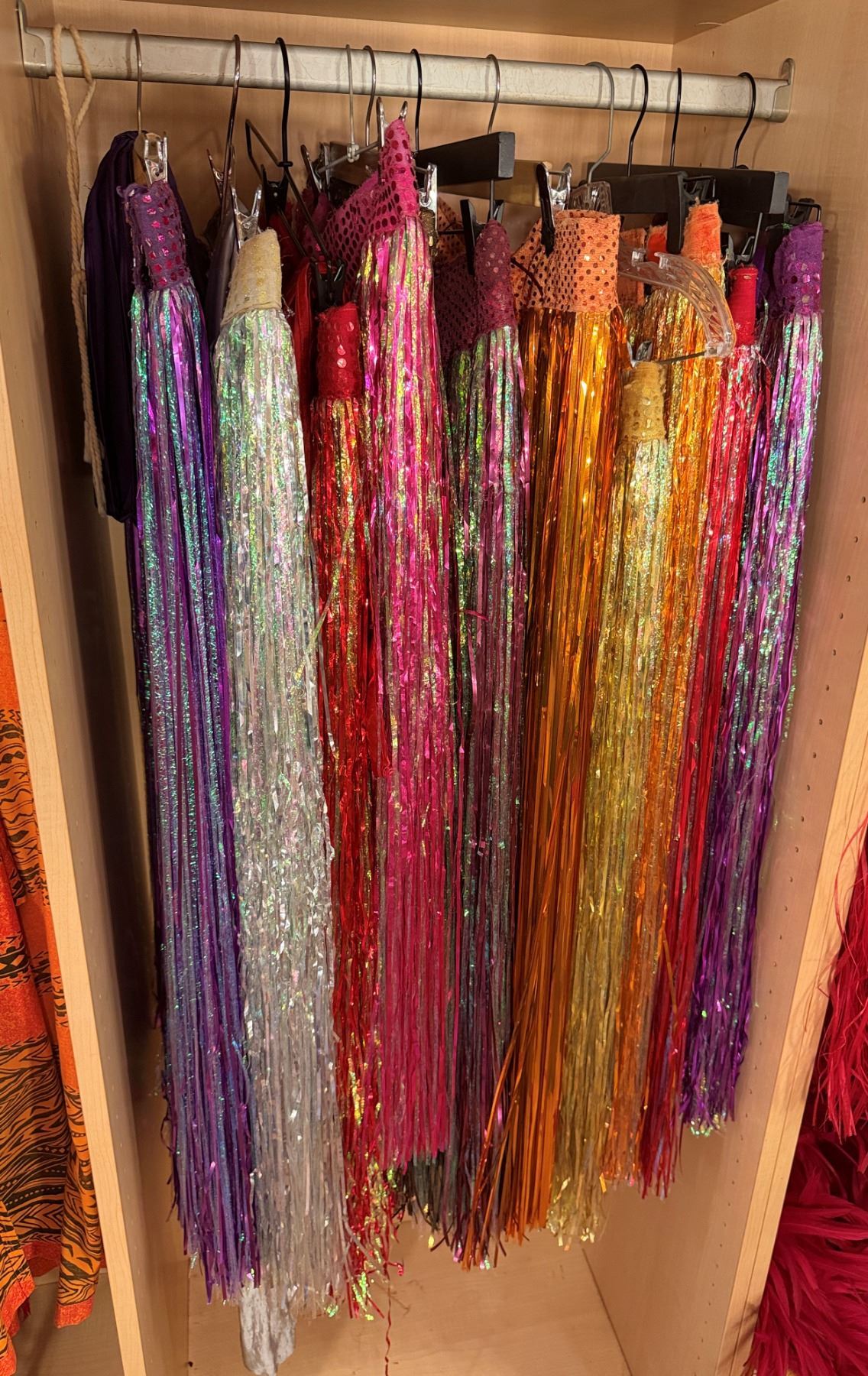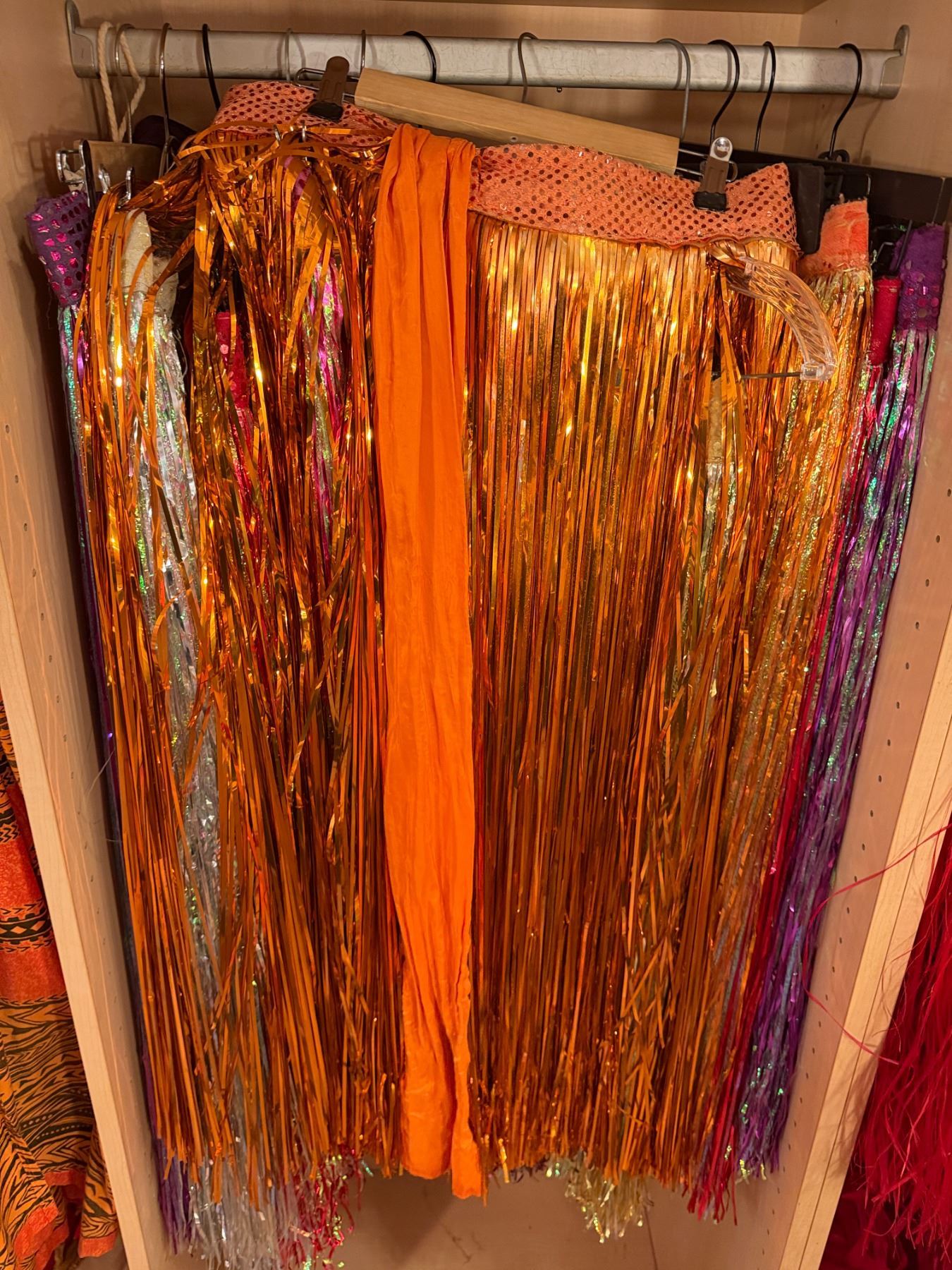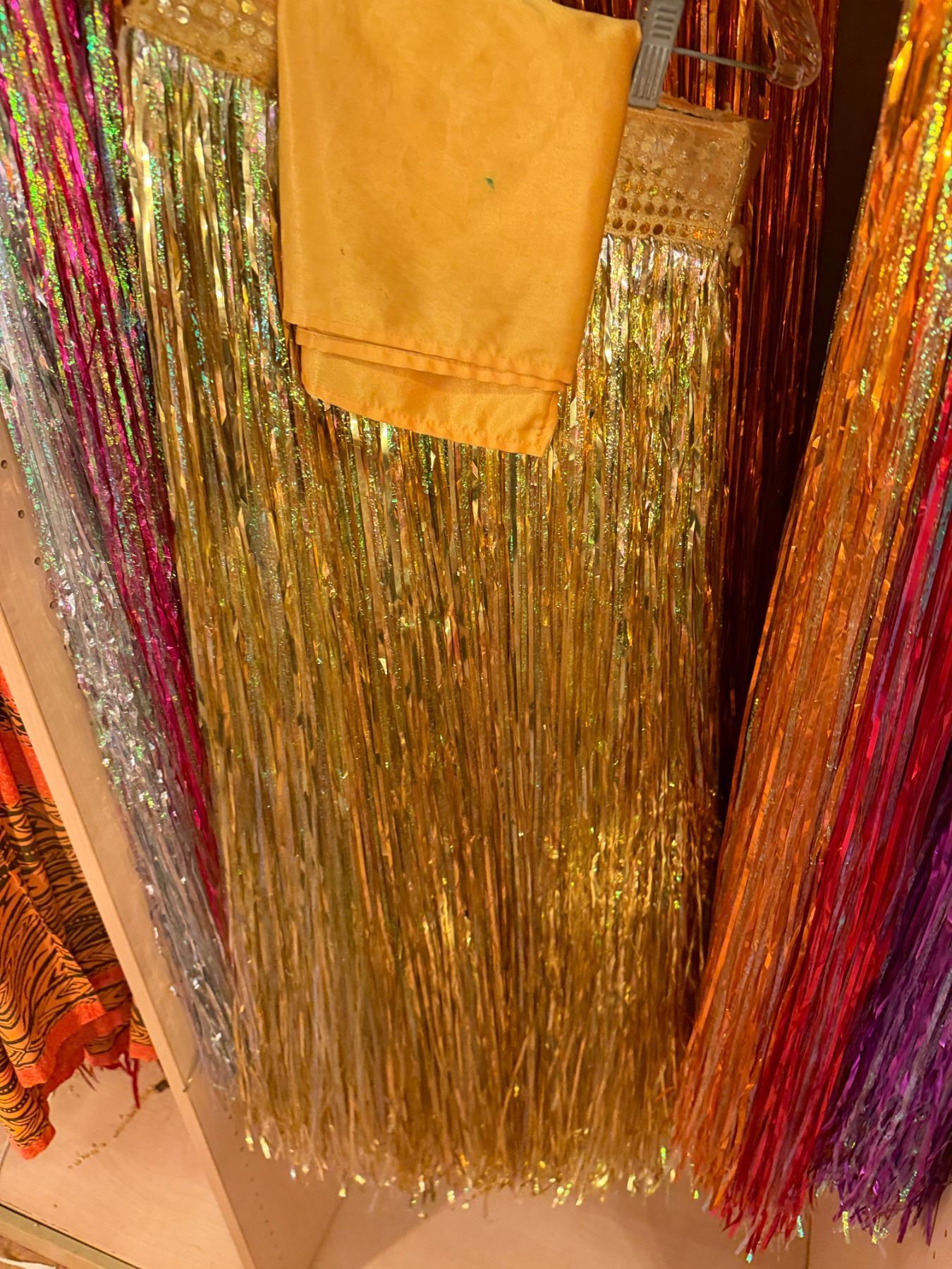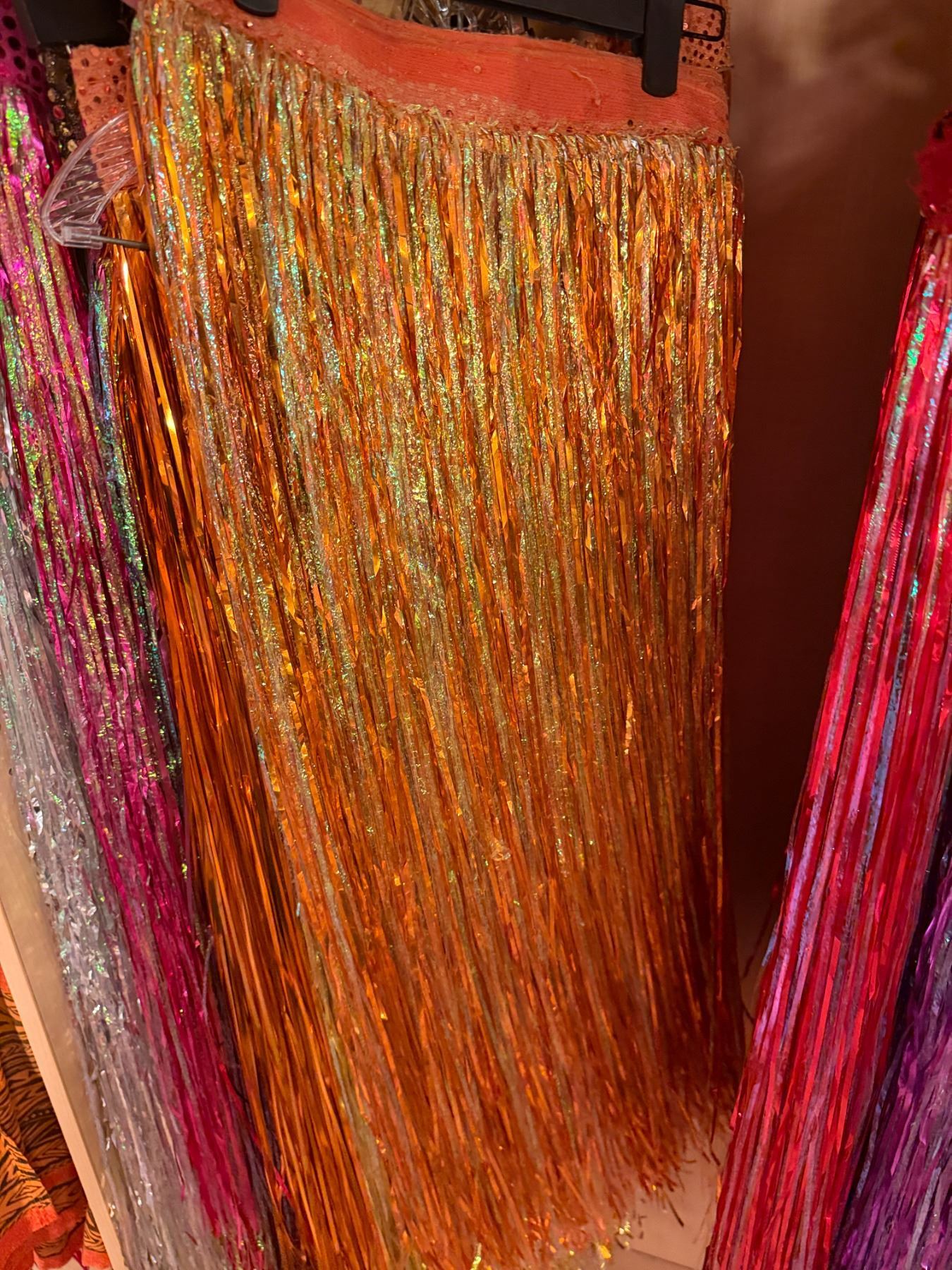 Qty 11 Metallic Fringe Artificial Hula Dance Skirts, Misc Colors