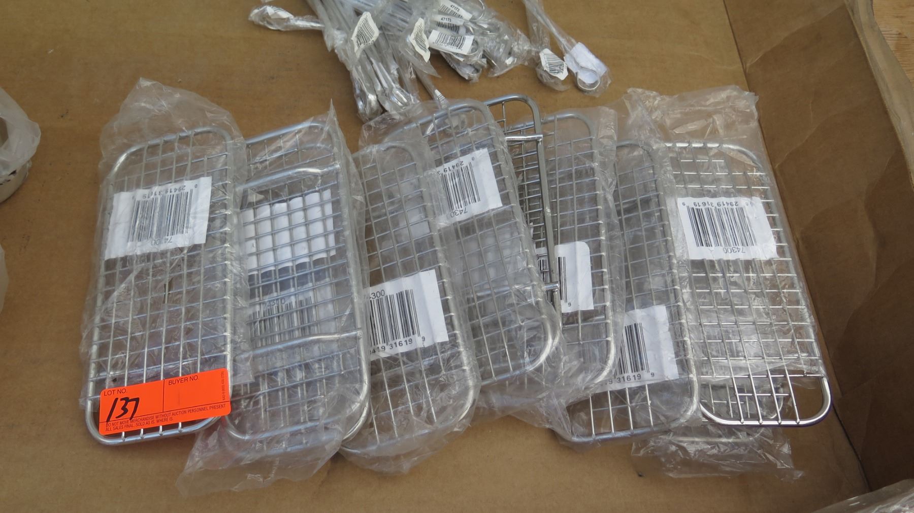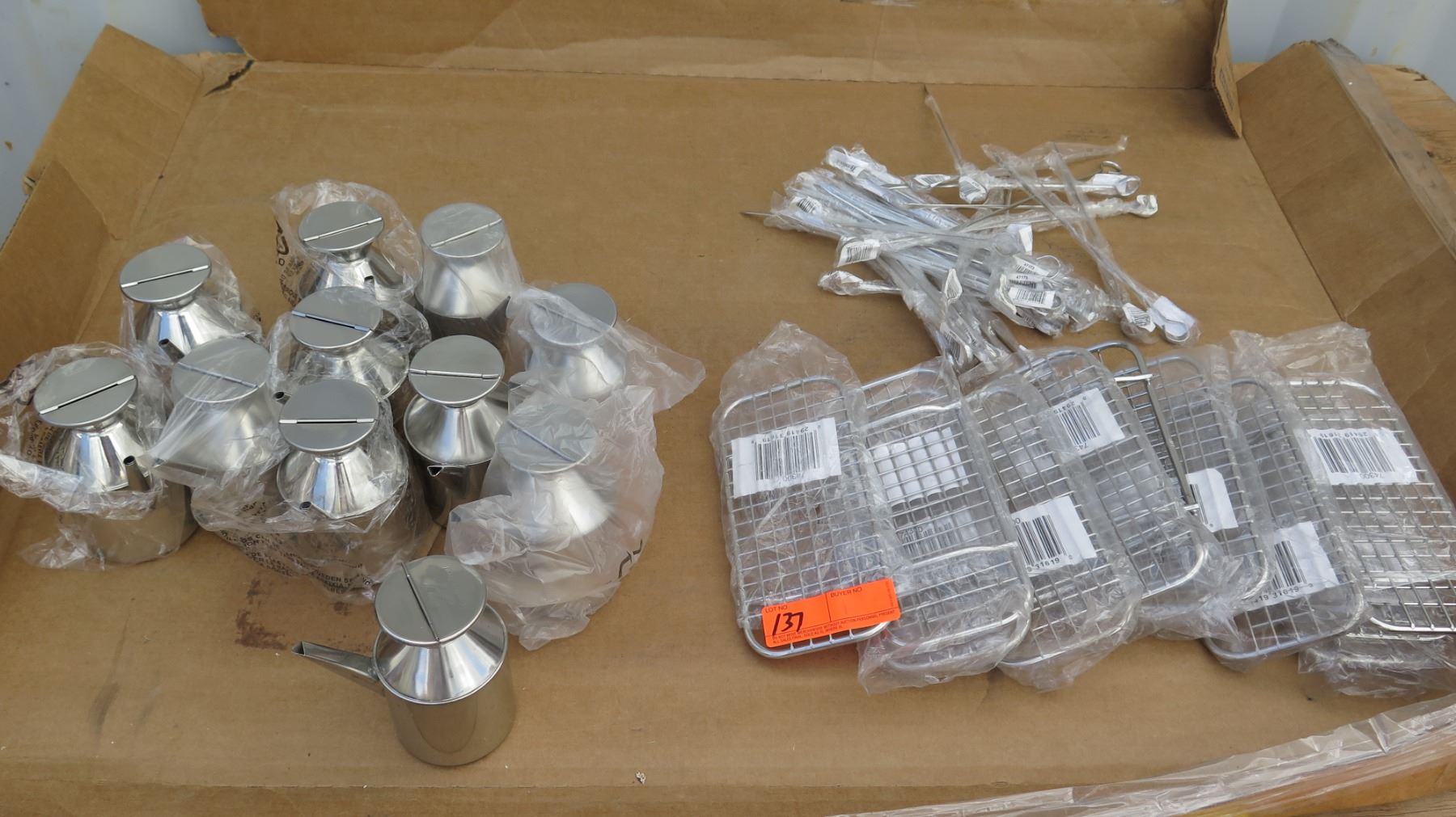 Qty 11 Thunder Group Sauce Dispenser, Qty Approx 11 Vollrath Wire Grate 1/3 size, Qty Approx 20 Vollrath Skewers