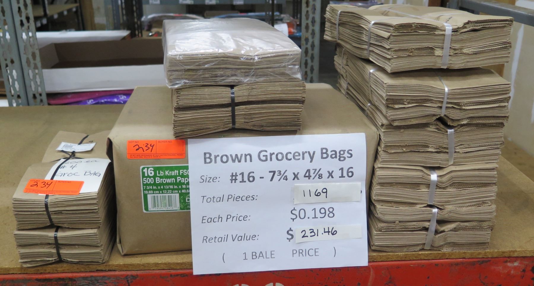Qty 1169 Brown Grocery Bags 7.75"x4.75"x16" Retail $231