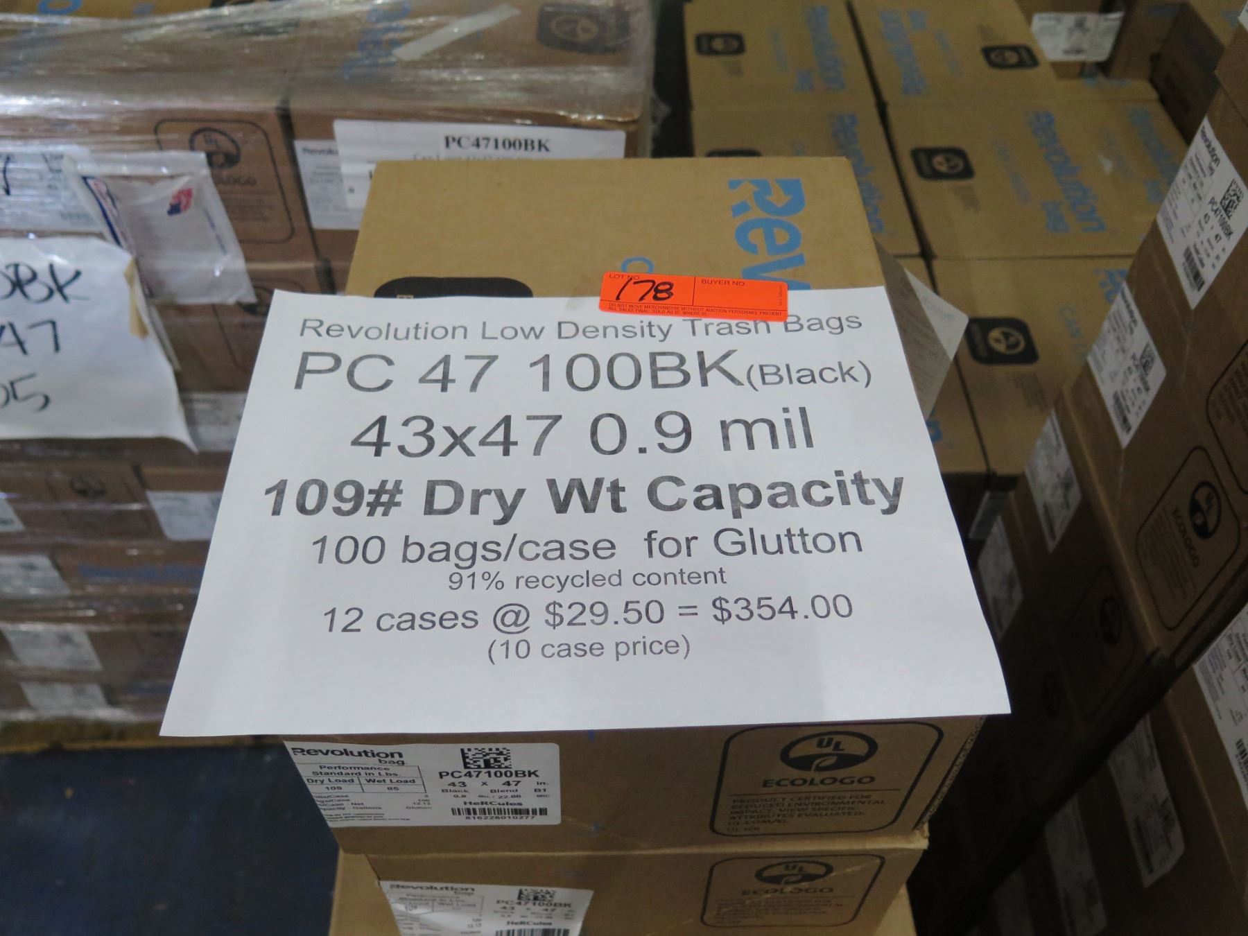 Qty 12 Boxes (100 ea) Revolution Low Density Trash Bags Black Retail $354