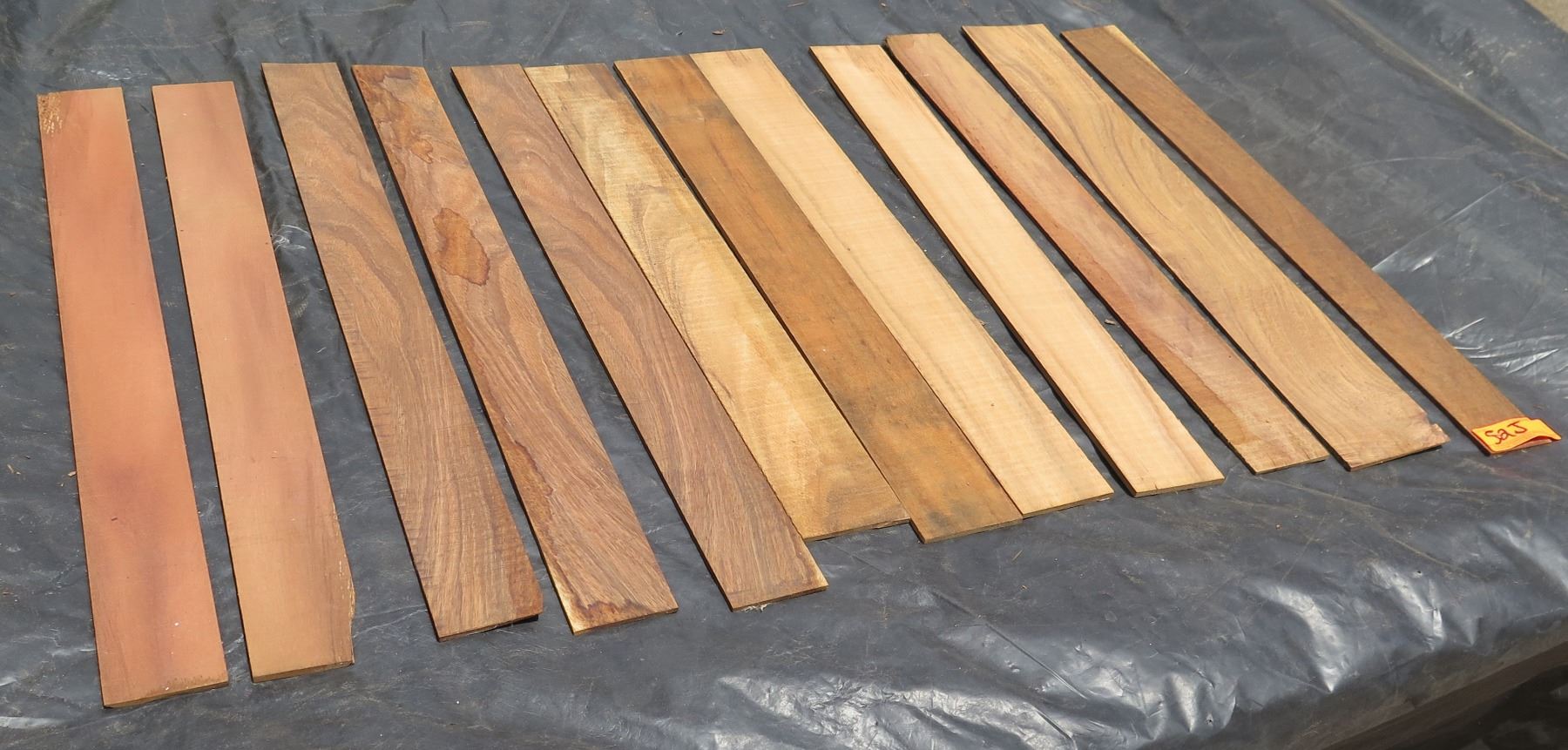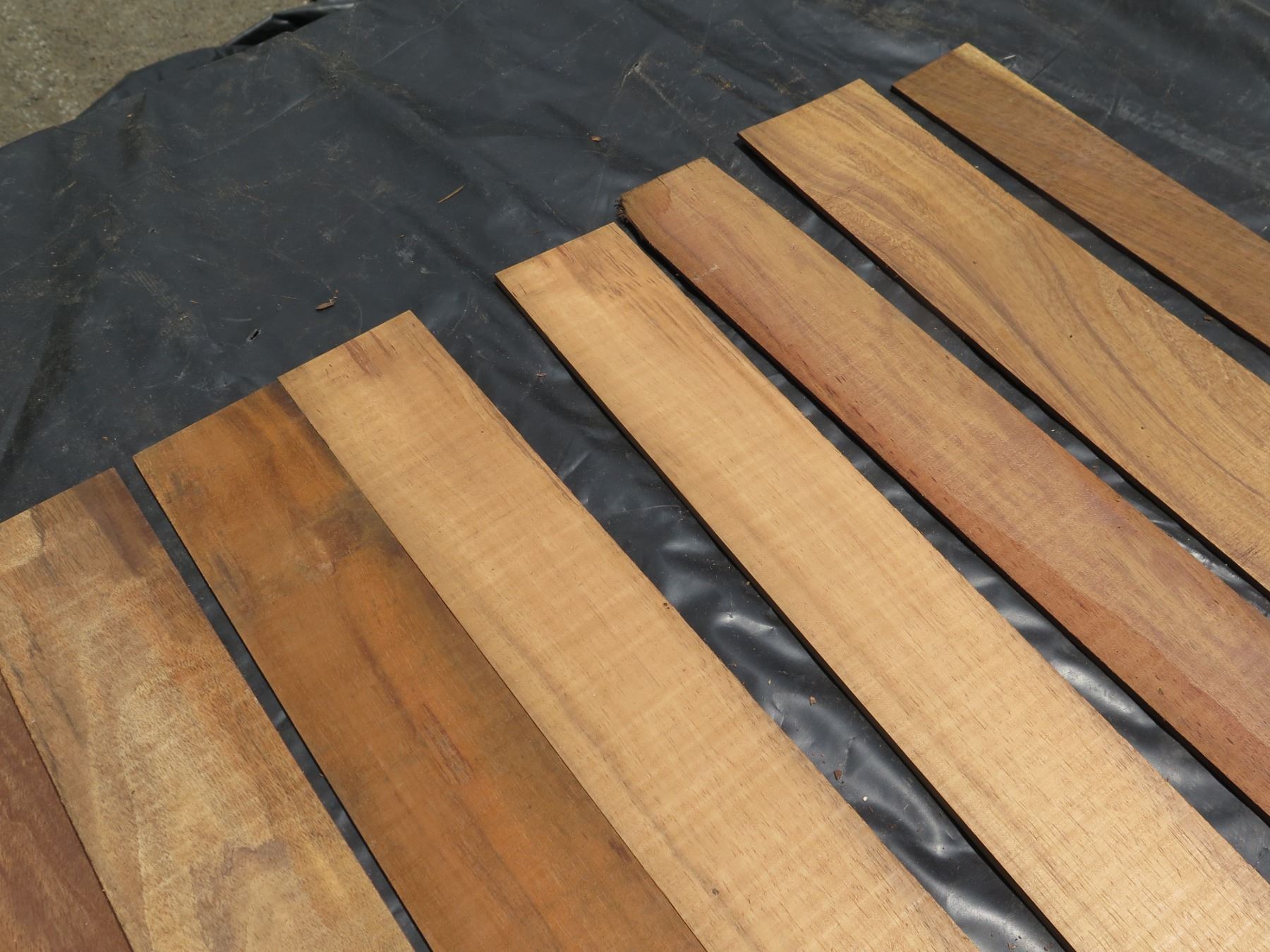 Qty 12 Lengths Hawaiian Koa - Resawn Hawaiian Koa Veneers To ~1/4” Thick – Great For Crafts, Jewelry, Laser Projects, Scroll Saw, Etc. to 34"L. Beautiful old-growth Koa, salvaged from the upper slopes of Mauna Loa. Rare opportunity to buy koa lumber that has been air dried for years