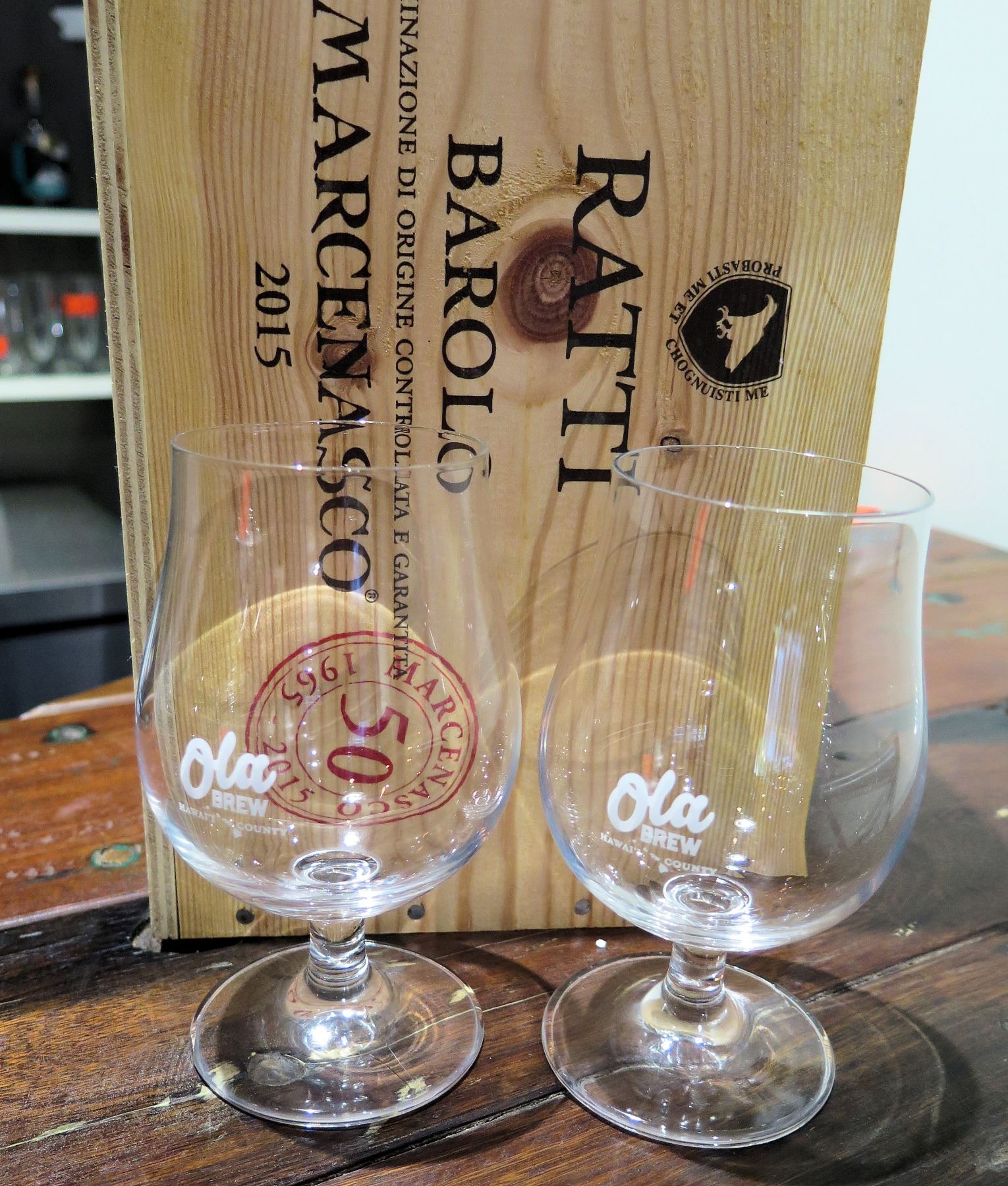 Qty 12 'Ola Brew' Stemmed Beer Glasses Please bring your own packaging materials, boxes, bags, tape, etc.