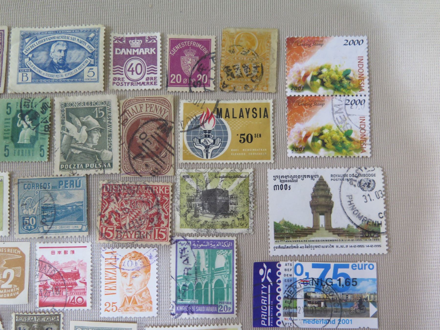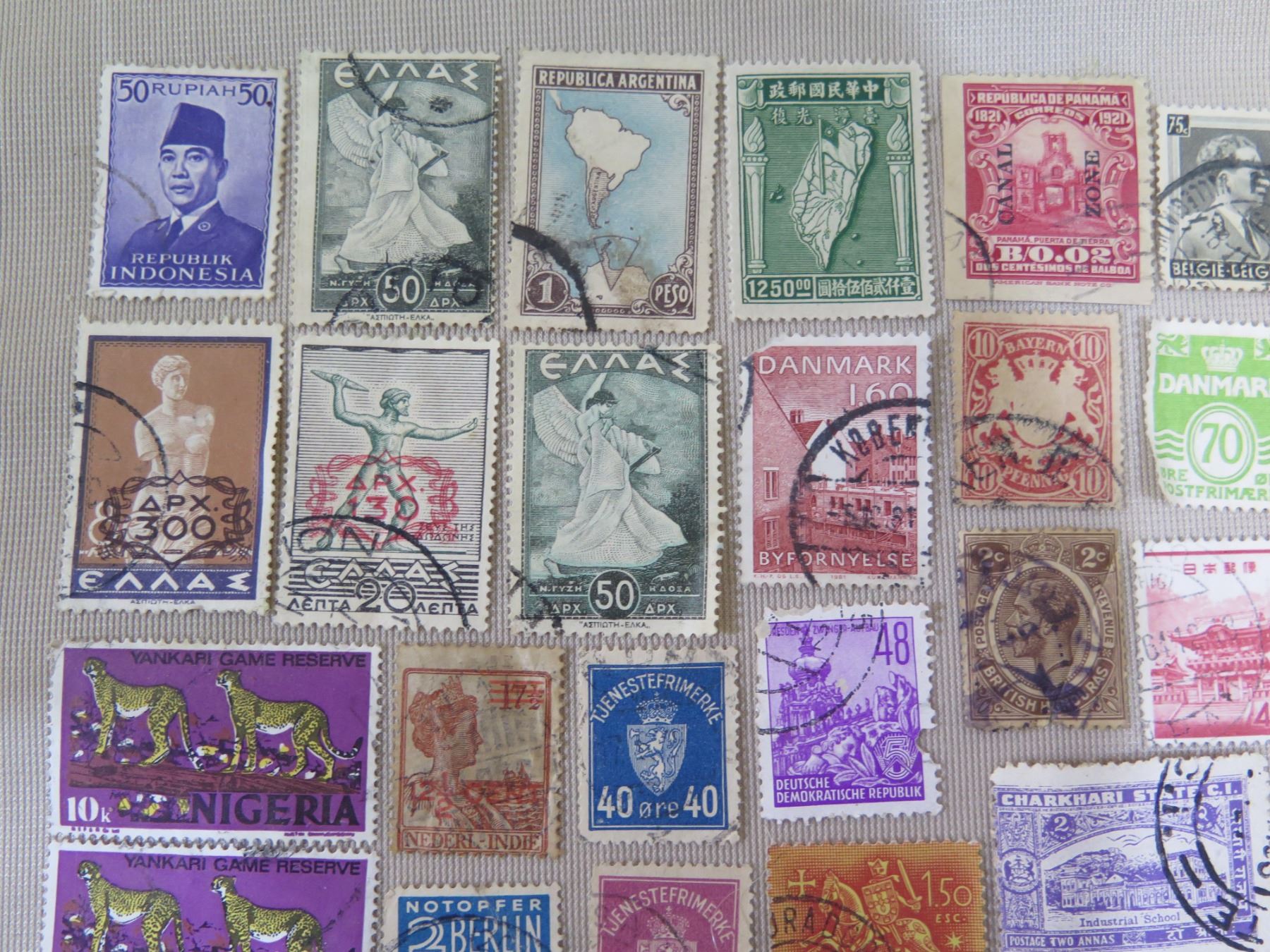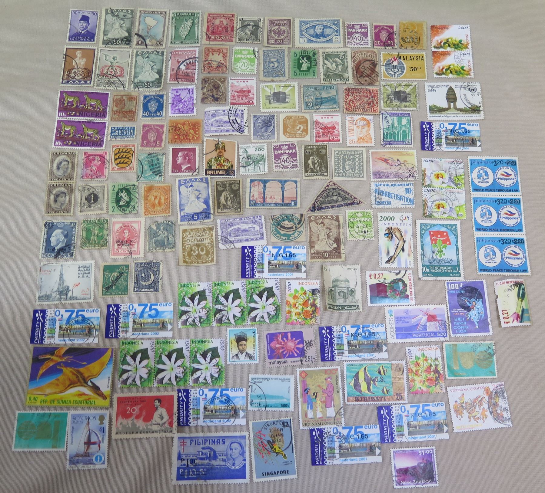 Qty 120+ Stamps Misc Countries: Indonesia, Nigeria, Danmark, Peru, etc
