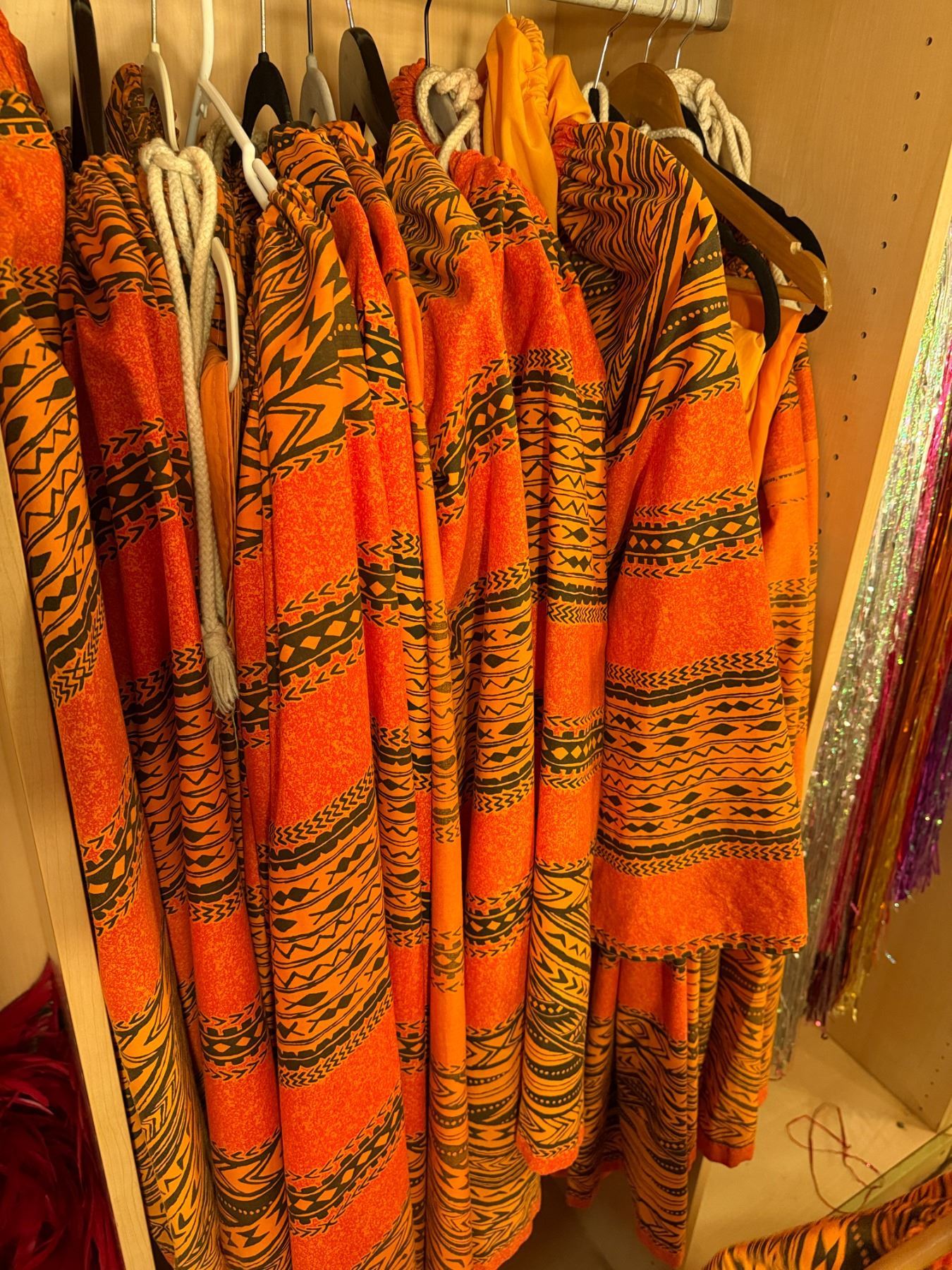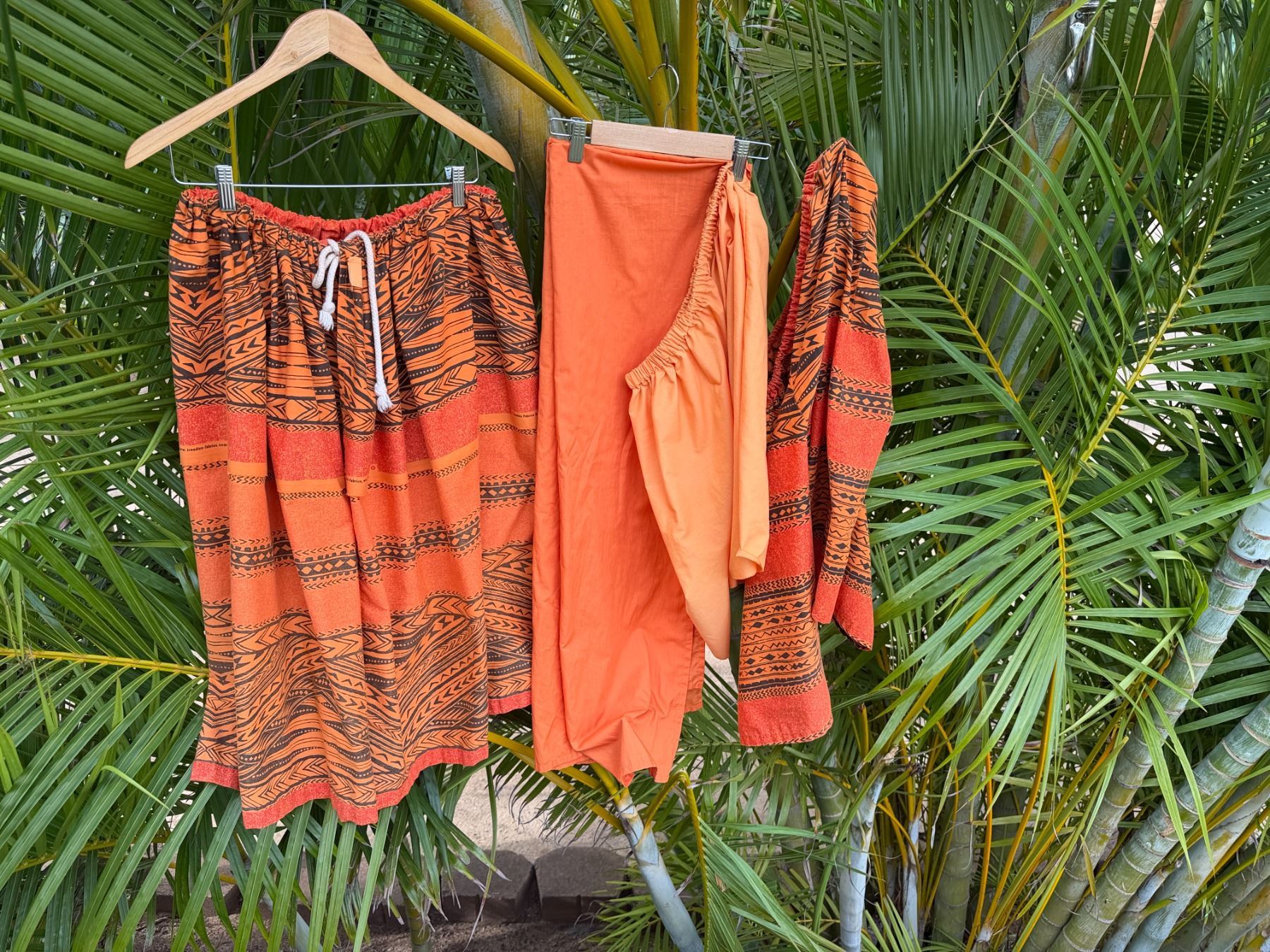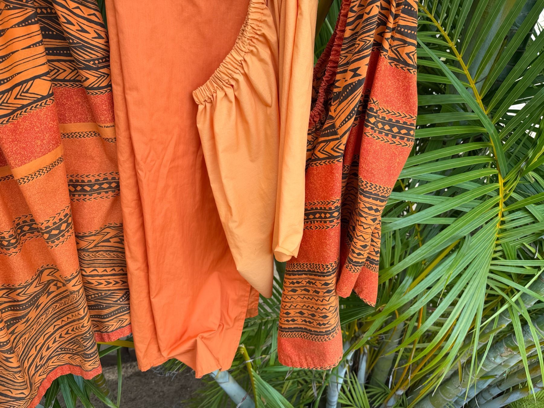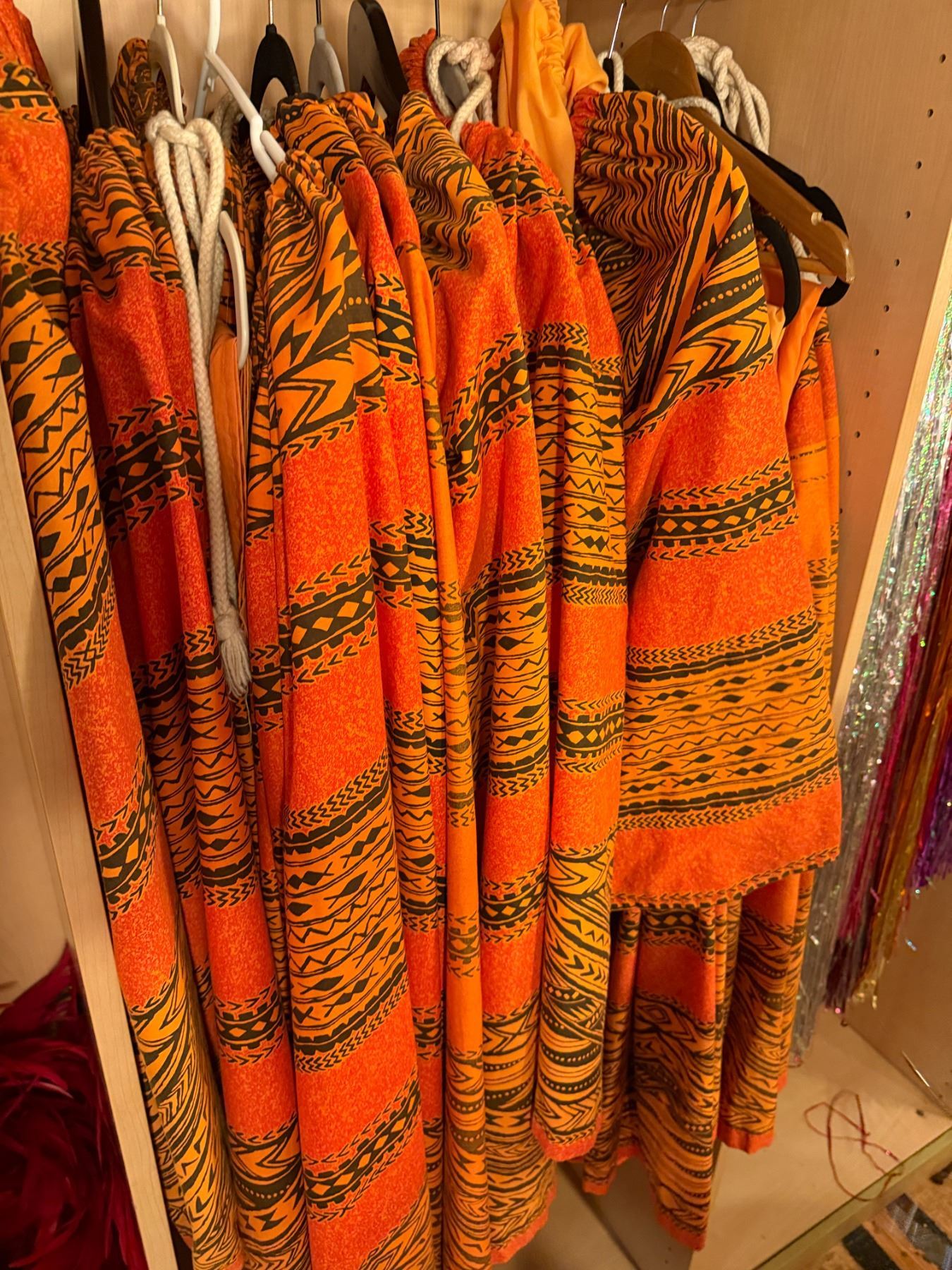 Qty 13 Orange Patterned Costume Pieces: Skirts, Slips & Tops