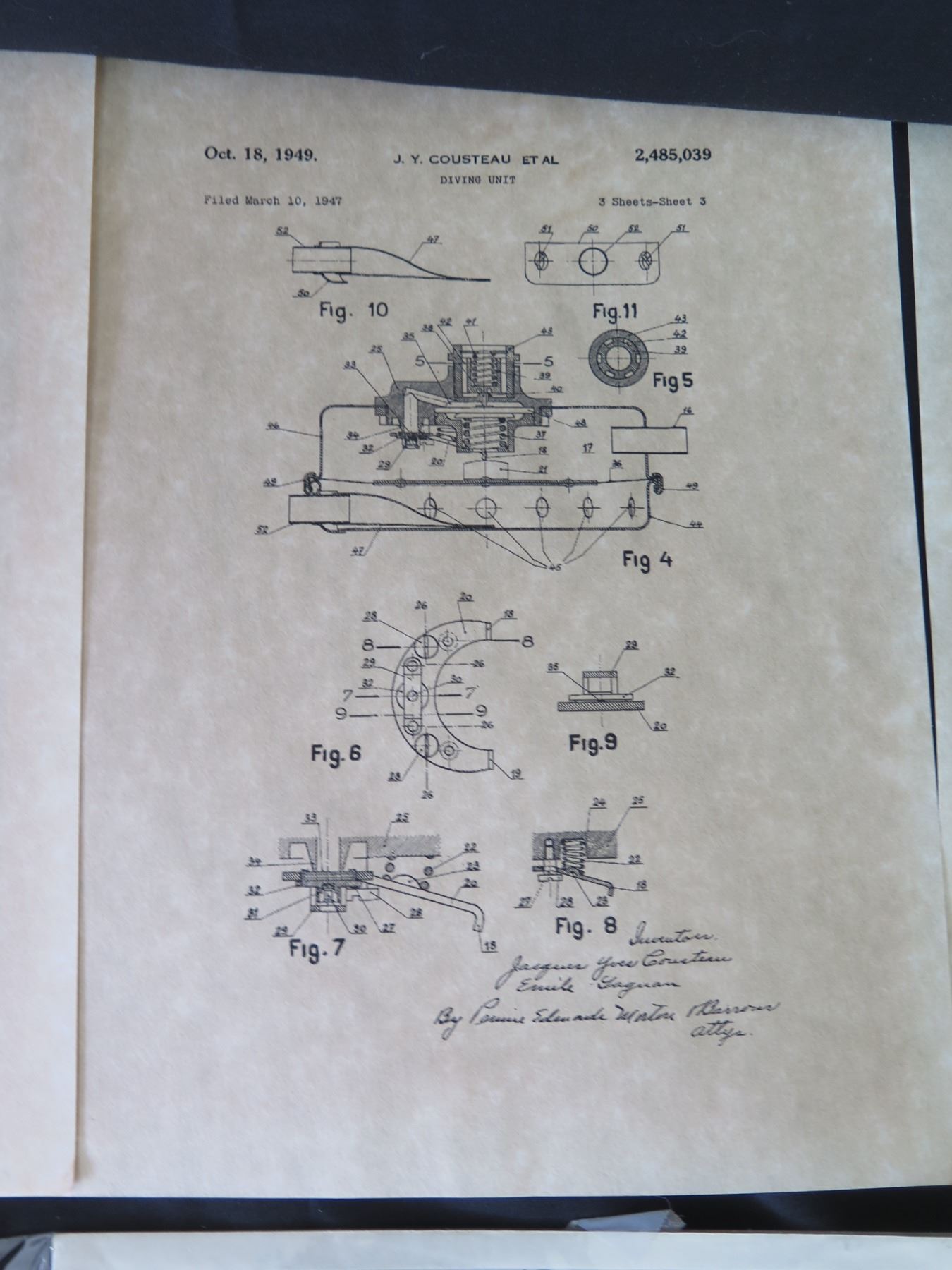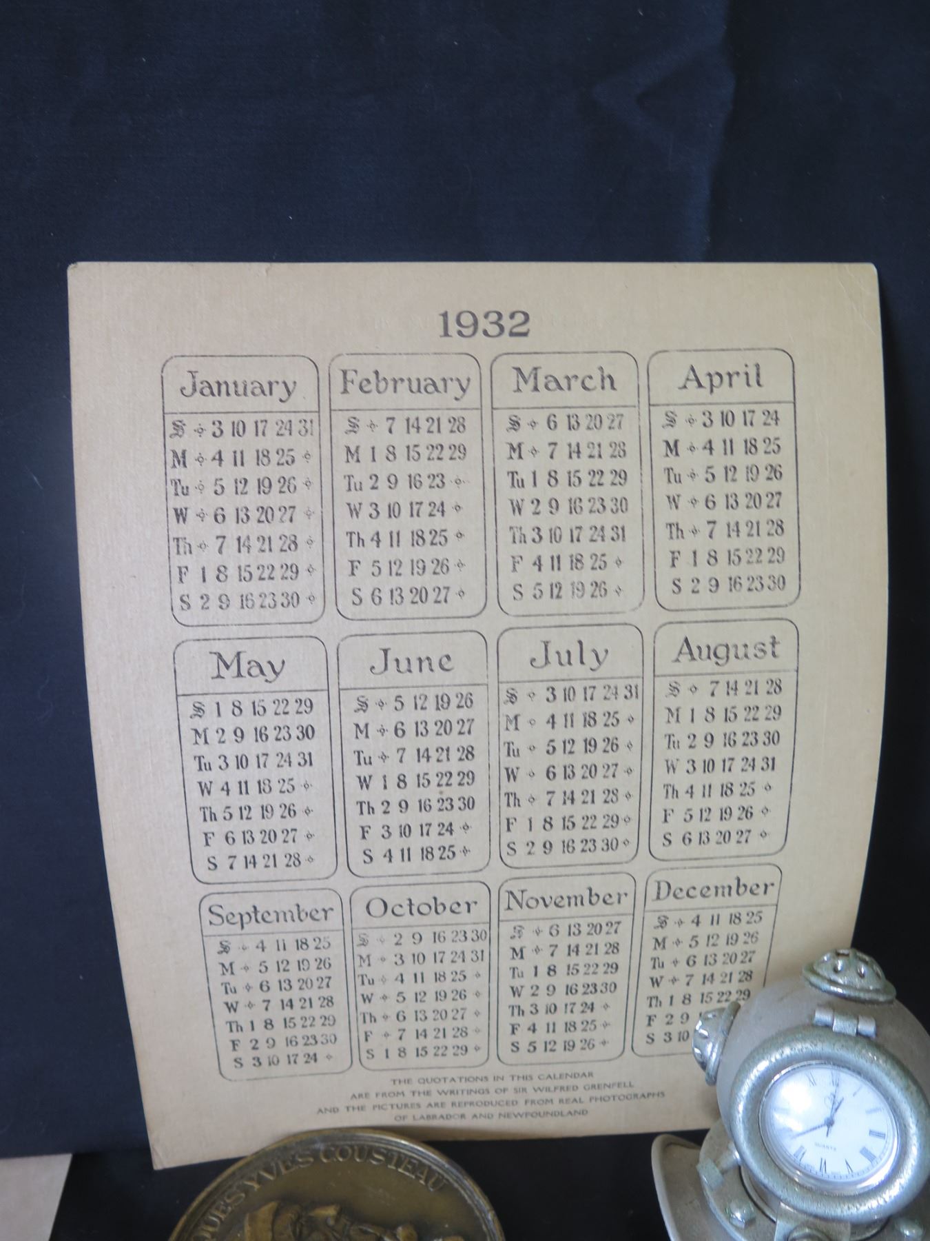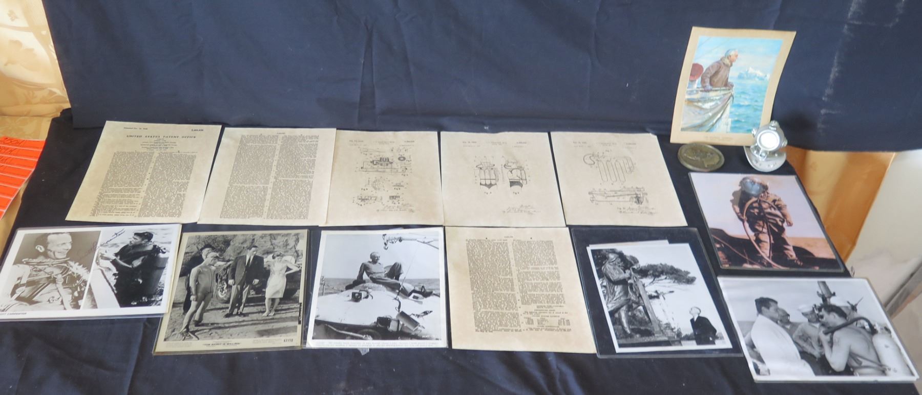 Qty 13 Vintage Documents: 1932 Calendar, Jacques Cousteau, Diving Unit Patent 1949, etc