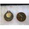 Qty 14 Medals & Coins: Athletes, Key Chain, Le Petit Marseillais, etc in Display Case 16"L