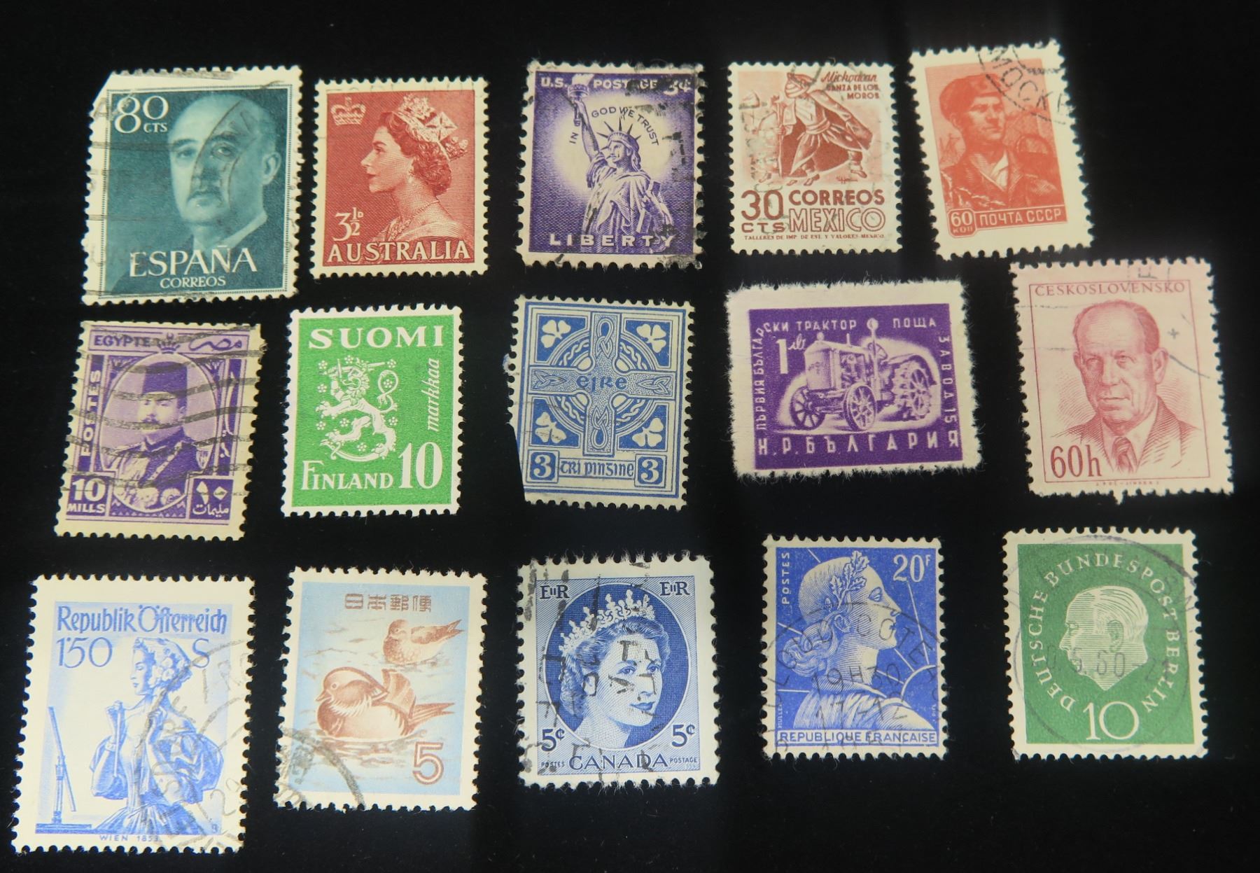 Qty 15 Collectible Stamps: Queen Elizabeth, Espana, Finland, Republic Ofterreich, Eire etc