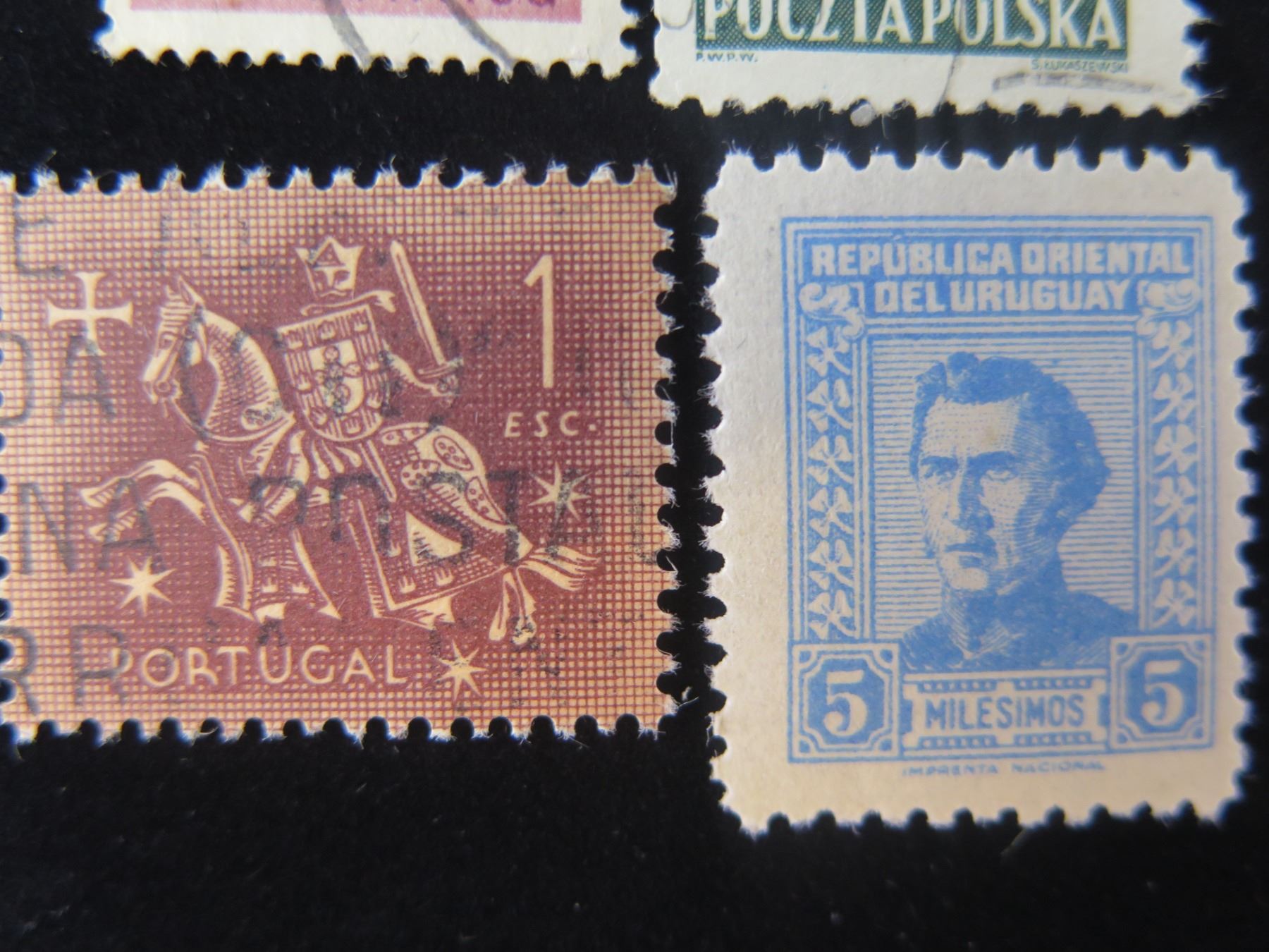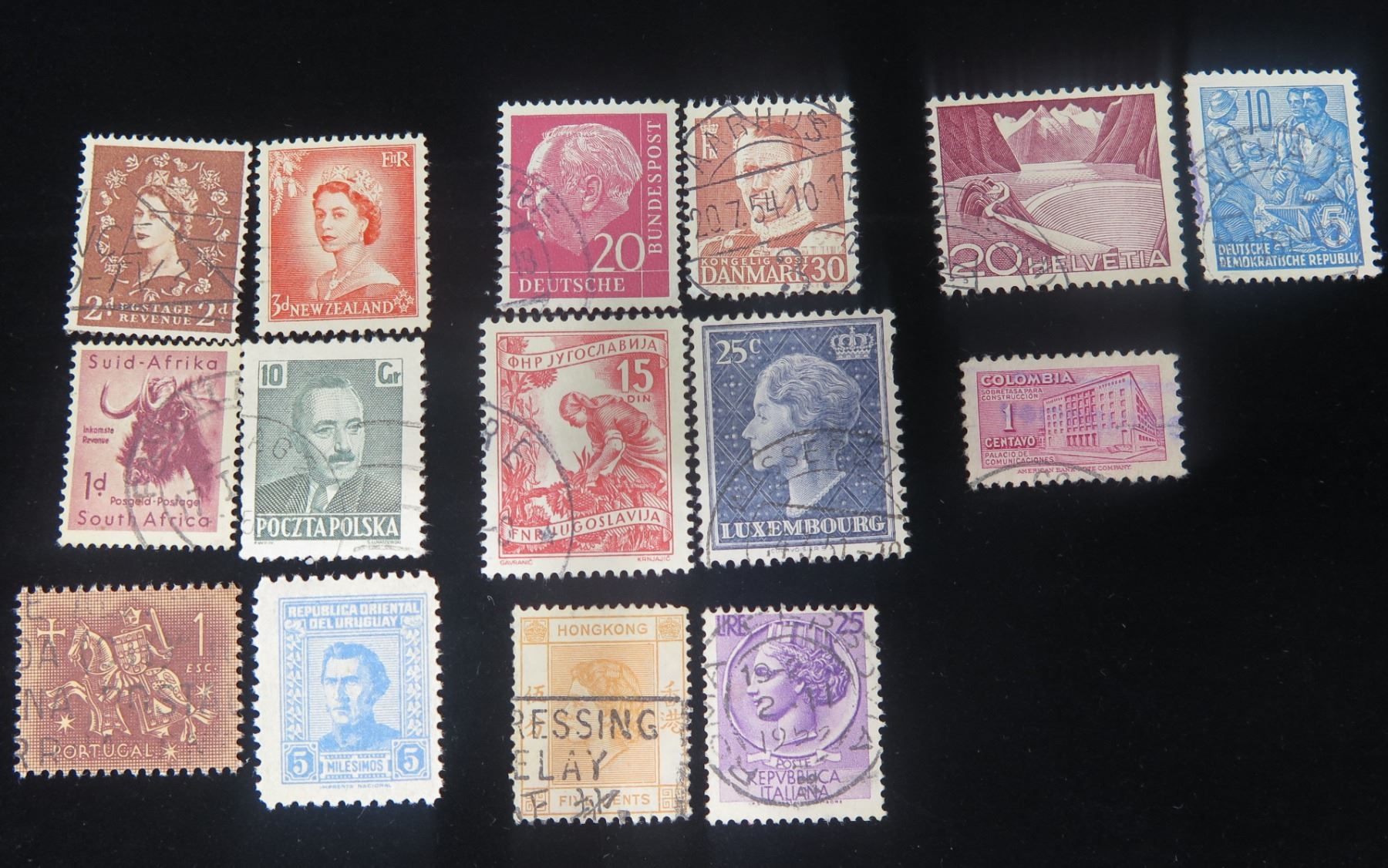 Qty 15 Collectible Stamps: Queen Elizabeth, South Africa, Polska, Portugal, Uruguay, Hong Kong, etc
