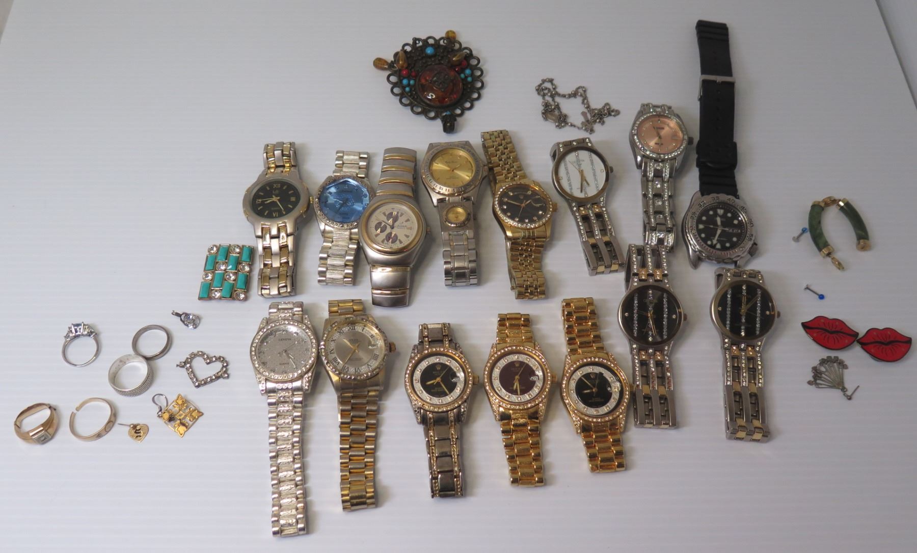 Qty 15 Replica Watches - Seiko, Geneva, Jaivinchi, Philip Persio & Misc Rings, etc