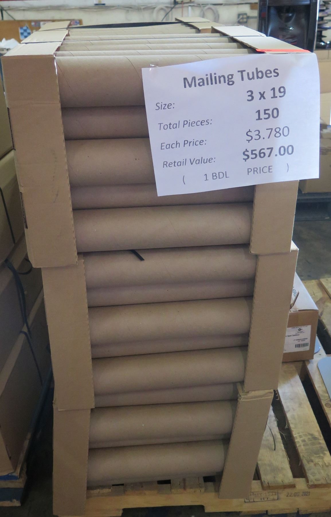 Qty 150 Mailing Tubes w/ Caps 3"x19" Retail $567