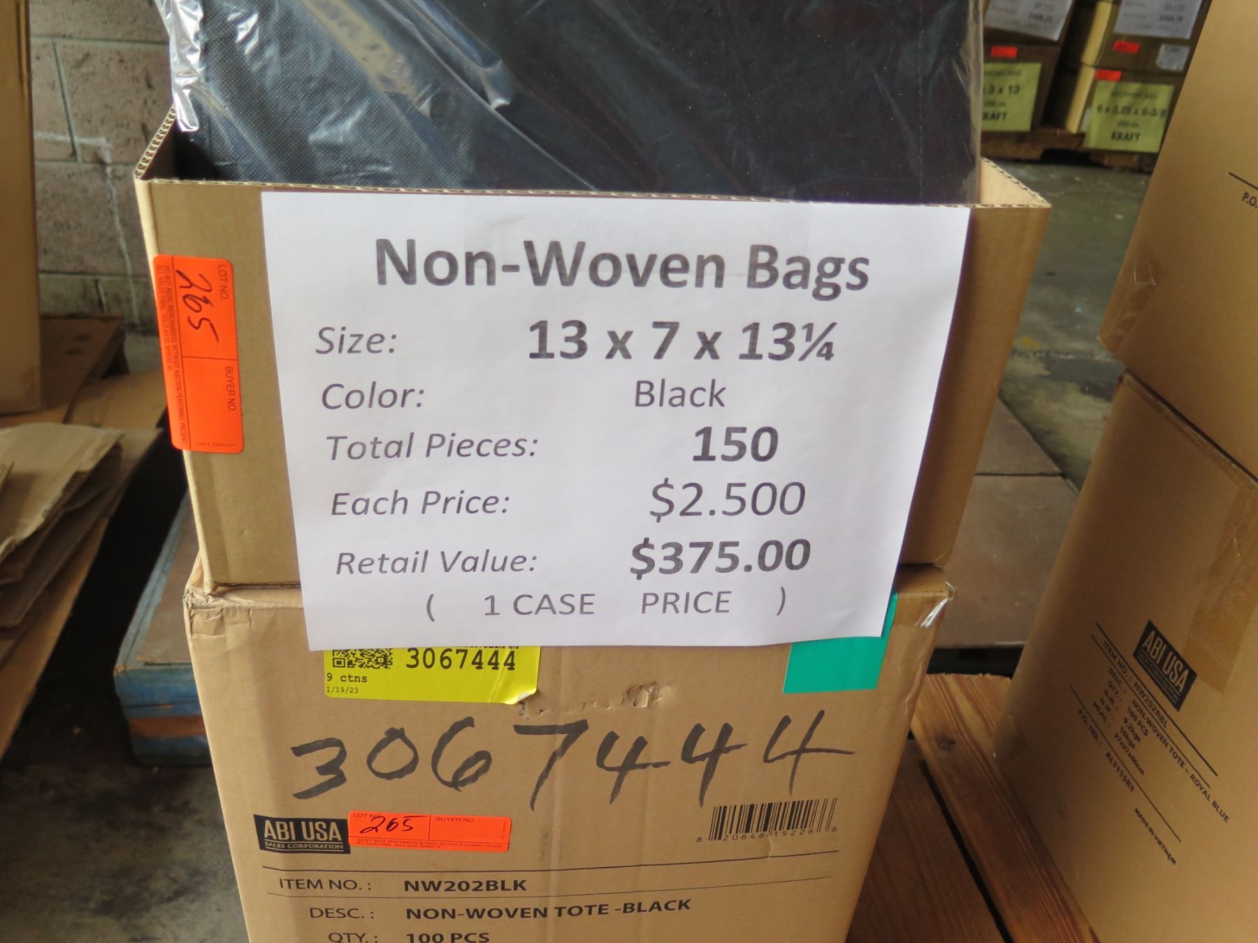 Qty 150 Non-Woven Bags Black 13"x7"x13.25" Retail $375