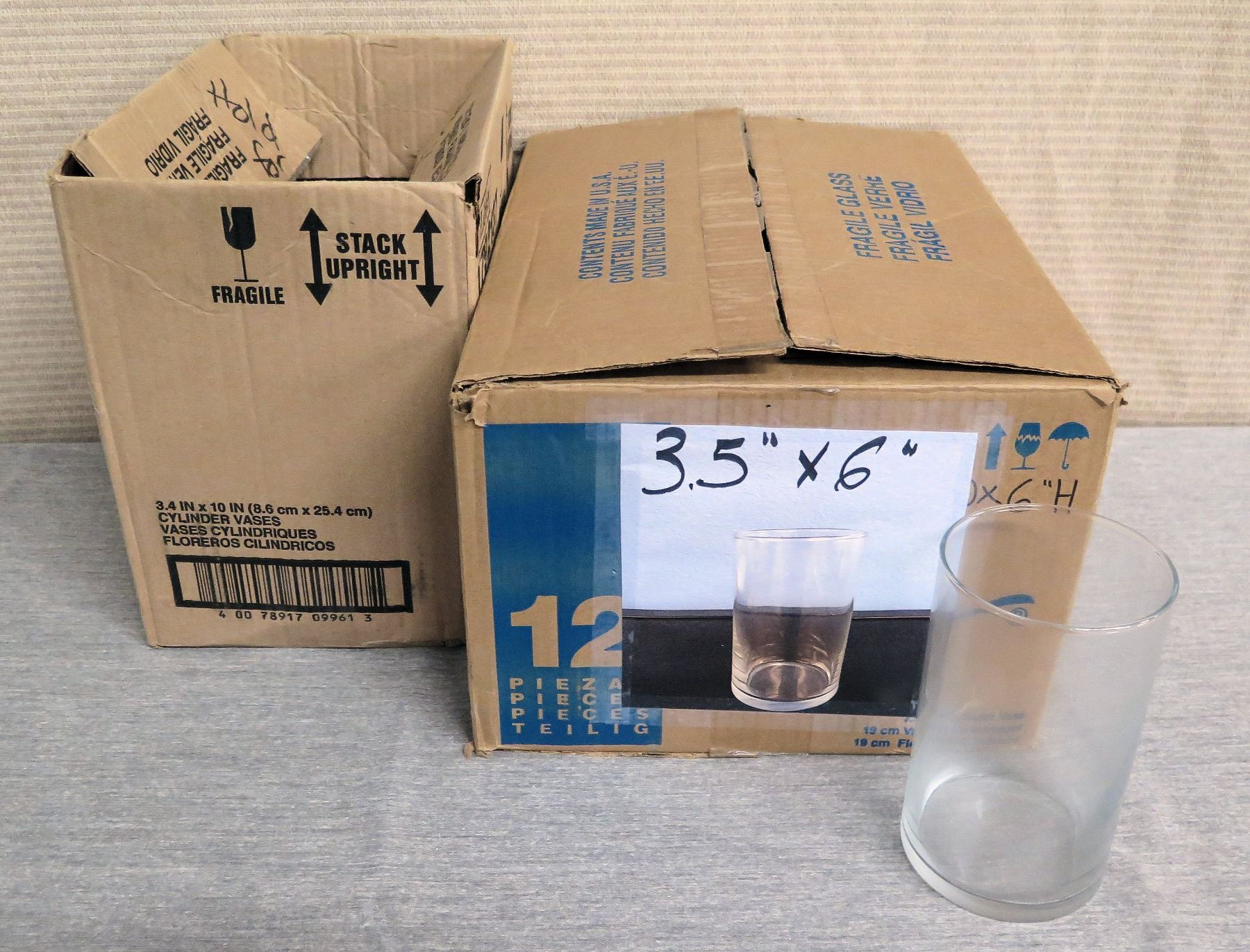 Qty 16 Crisa Glass Cylinder Vases 3.5" Dia, 6"H