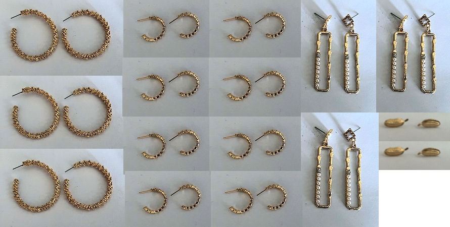 Qty 16 Pair Gold-Tone Earrings: 3 Large Hoops, 8 Small Hoops, 3 Pearl Dangles & 2 Leaves