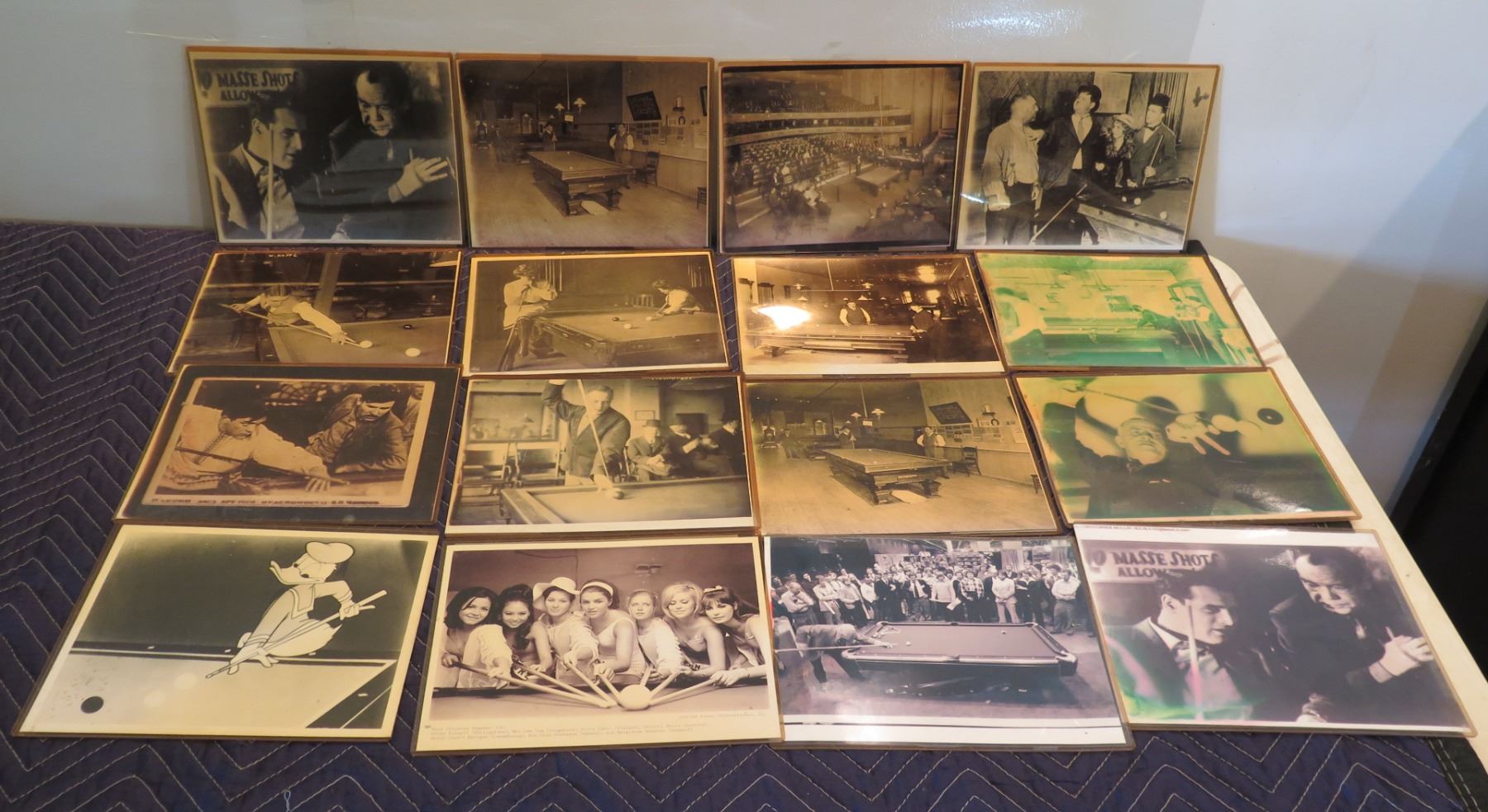 Qty 16 Unframed Photos Billiards Pool Themed: Players, Ladies, Donald Duck, etc