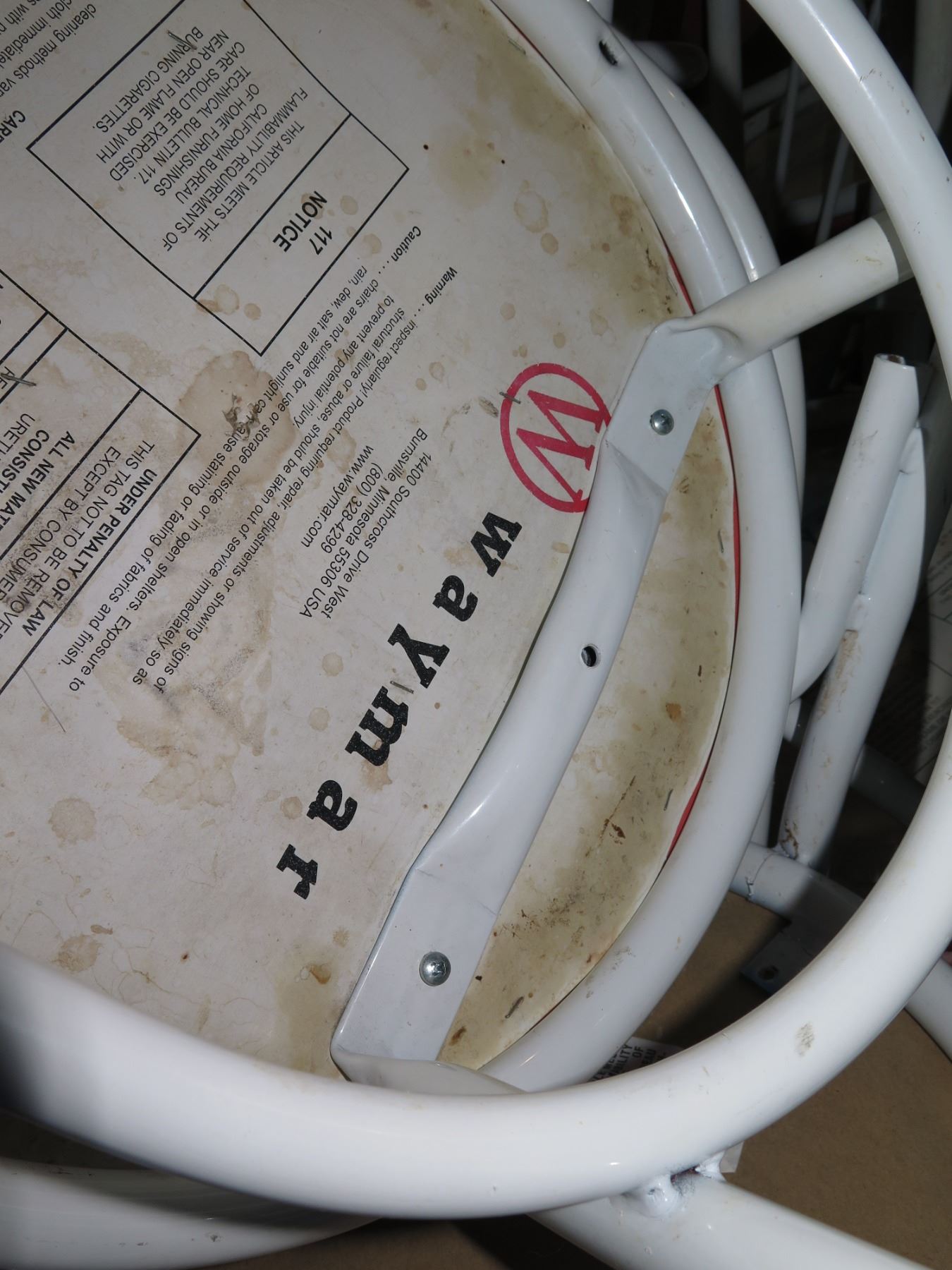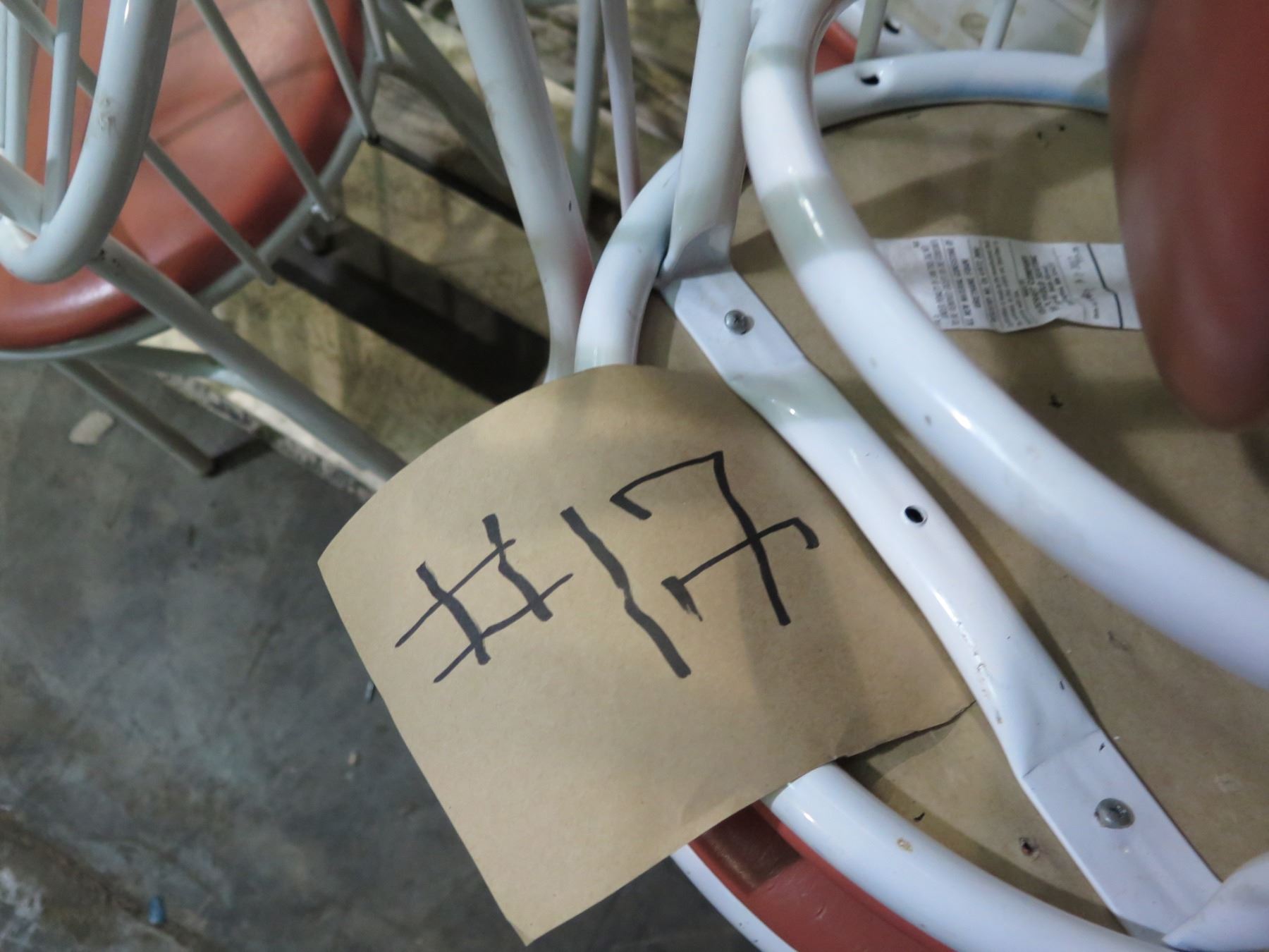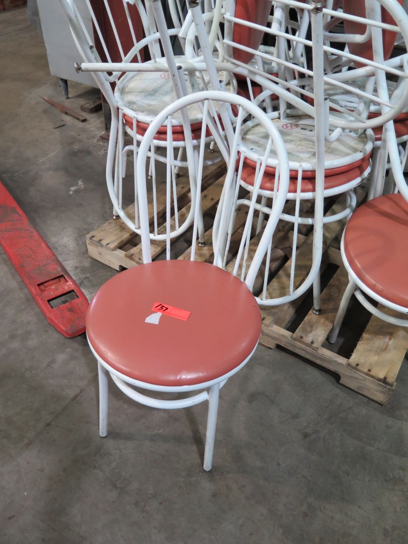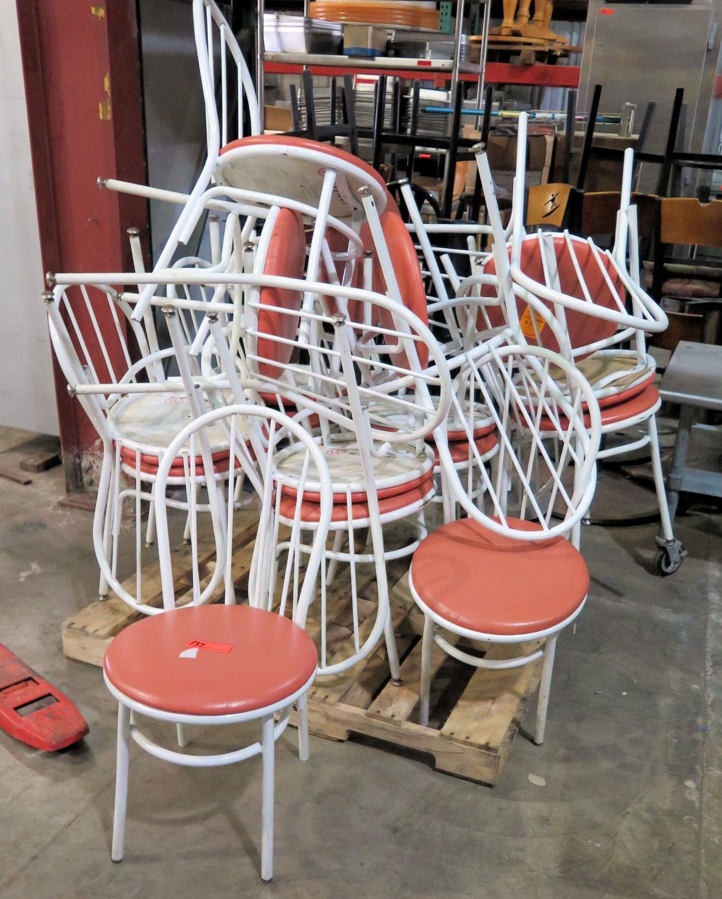 Qty 17 Waymar Round Bistro Chairs w/ White Metal Framer & Upholstered Seat