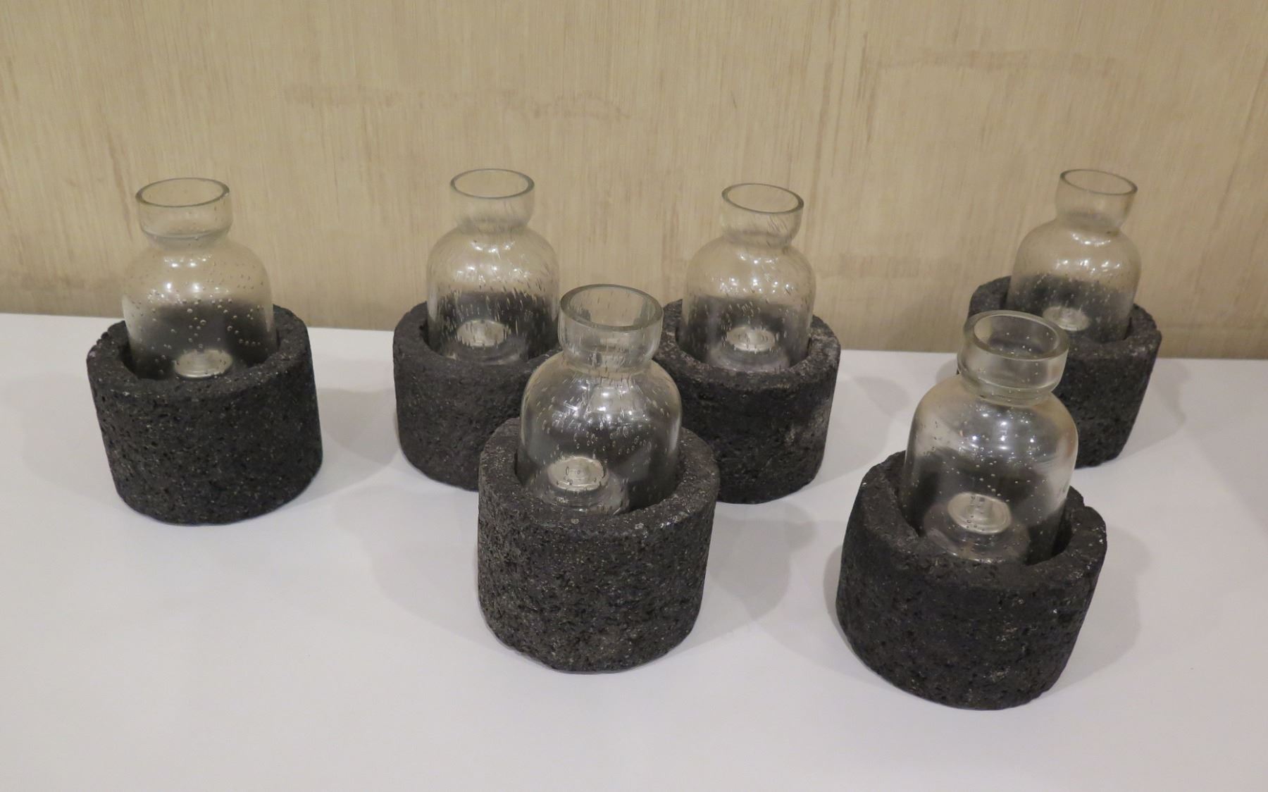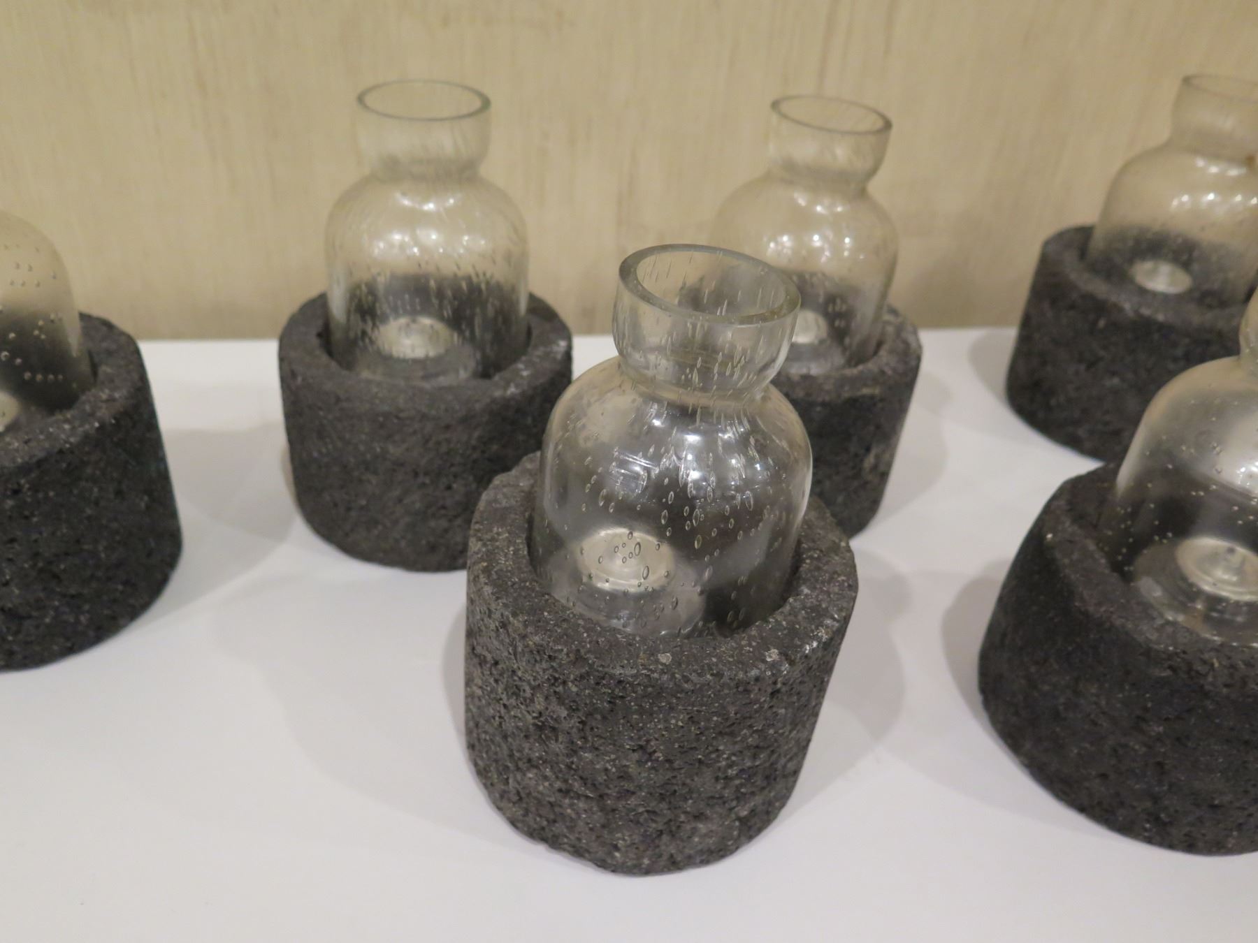 Qty 18 Seeded Glass w/ Black Base Fuel Cell Holders