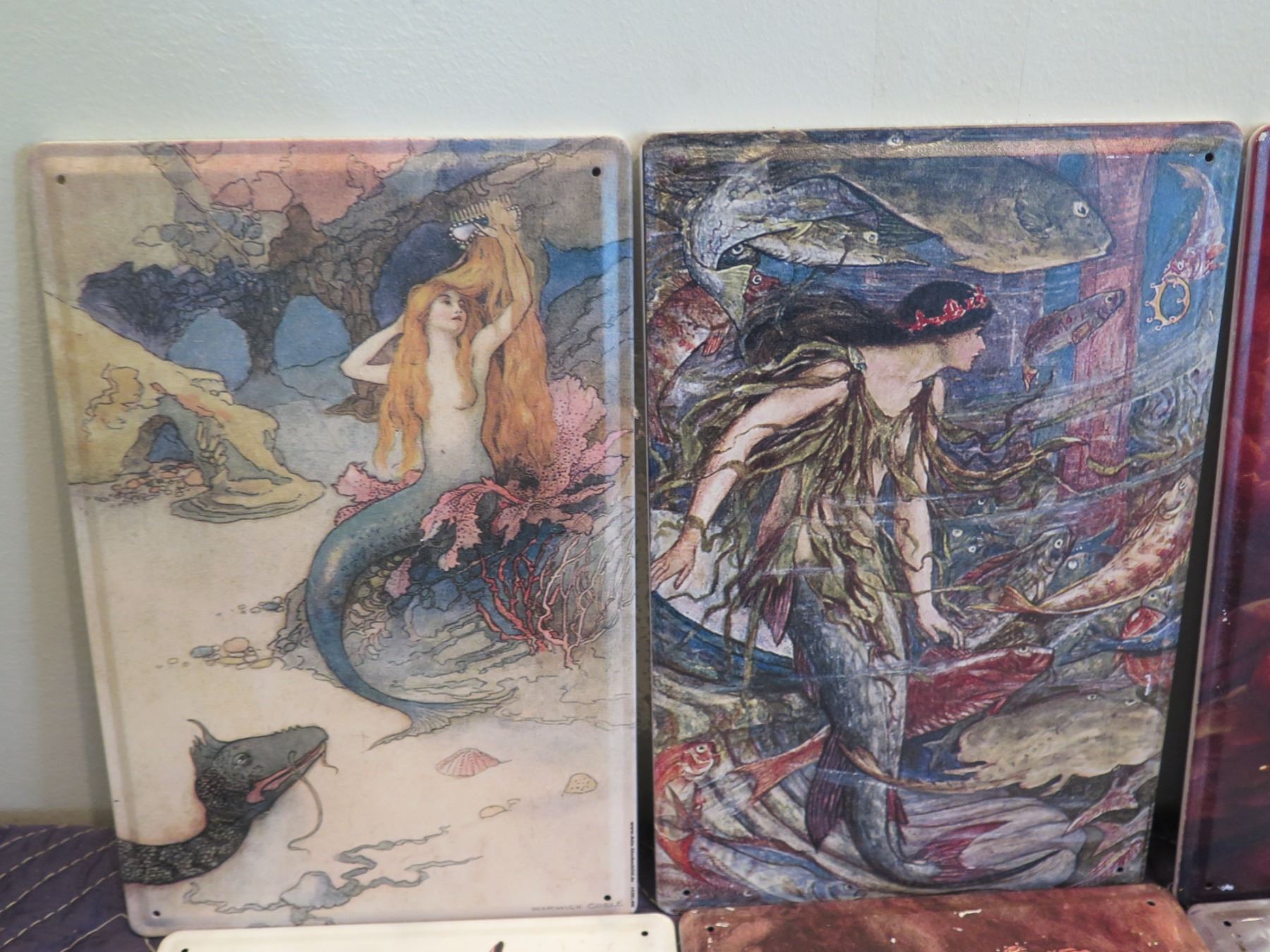 Qty 18 Unframed Metal Painted Artwork Mermaids & Fairies Themed, 12"x8"
