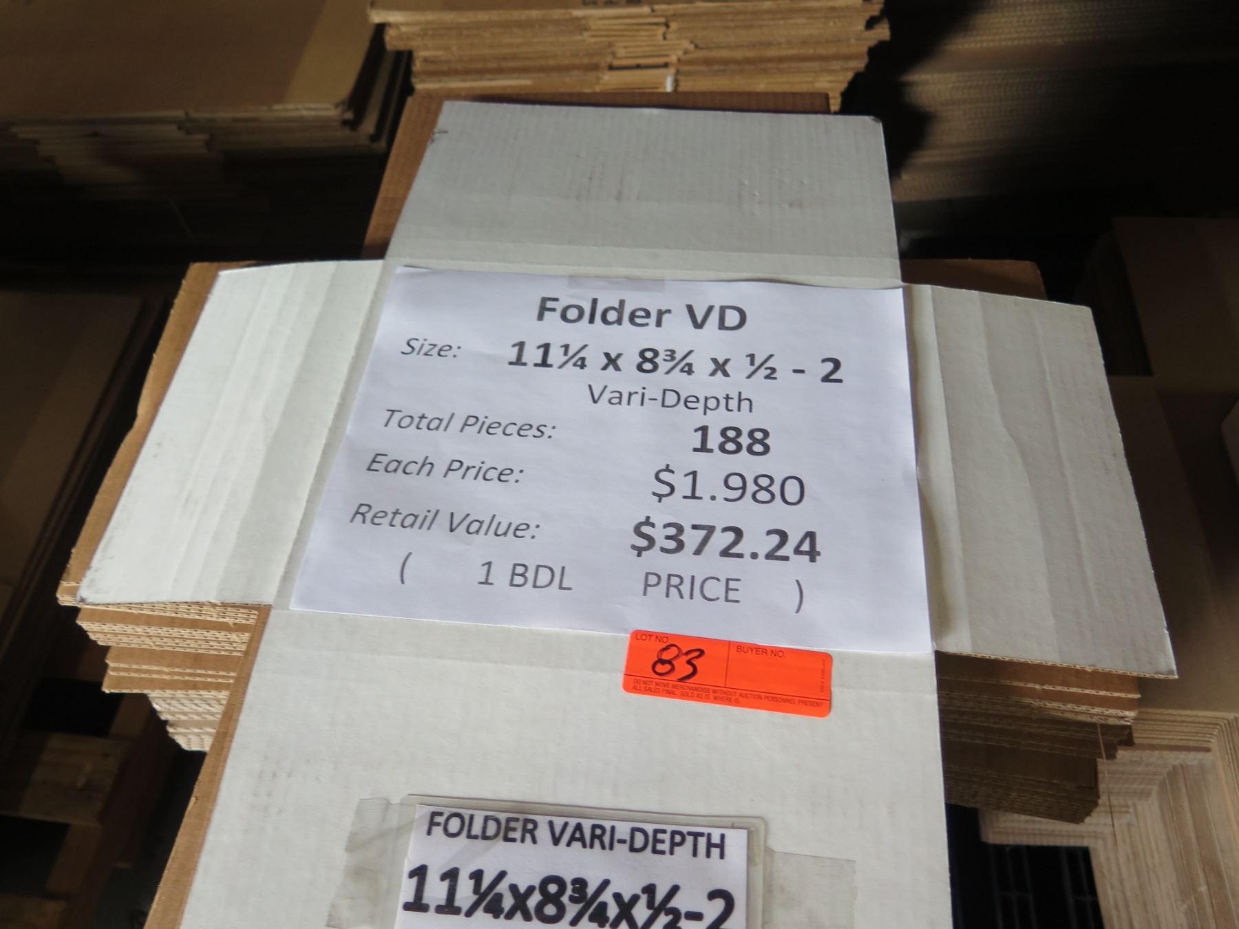 Qty 188 Folder VD 11.25"x8.75" Misc Depth Retail $372