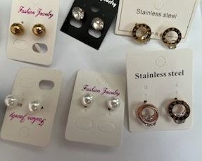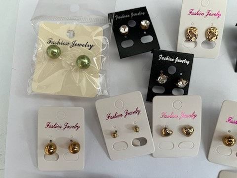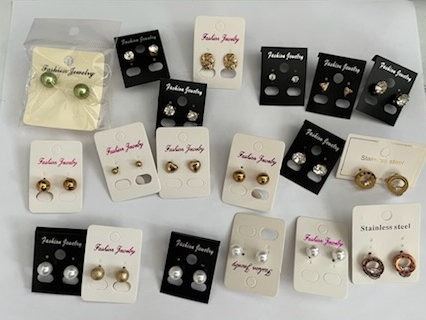 Qty 19 Pair Misc Earrings: Pearl Beads, Clear Stones, Stainless Steel, etc