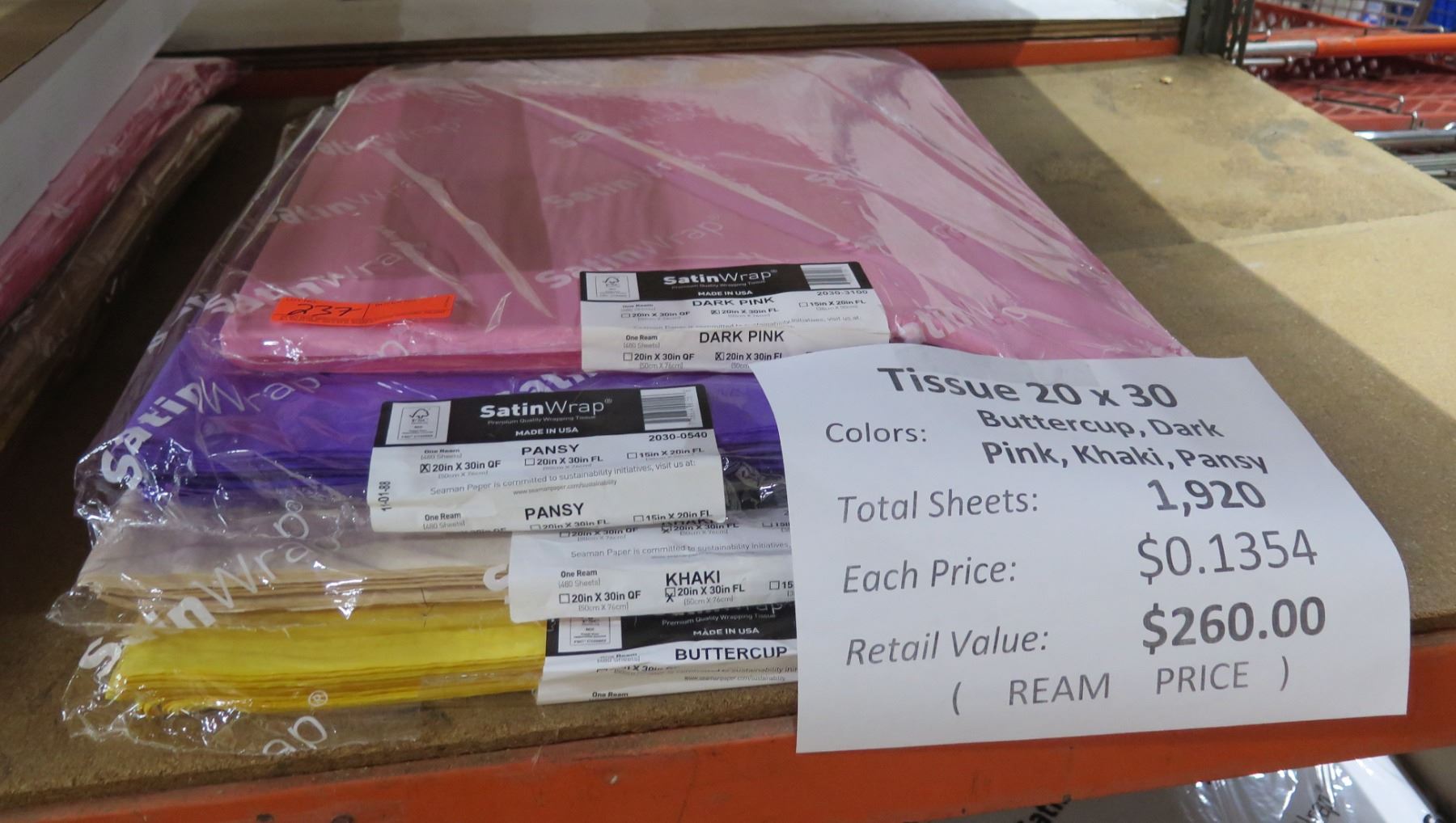 Qty 1920 Multi-Colored Tissue Sheets 20"x30" Retail $260
