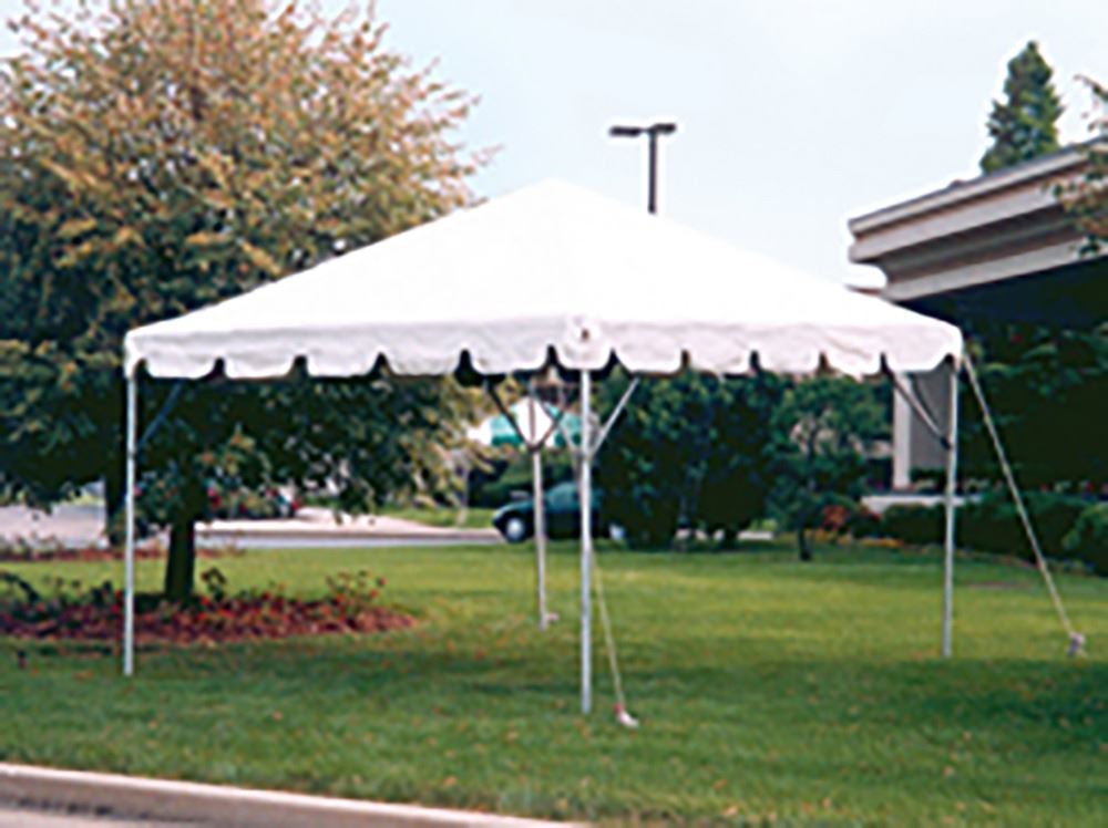 Qty 2- 10x10 frame tents. Two sets of tents. Missing one stablizer arm. Tents tops are worn and dirty.